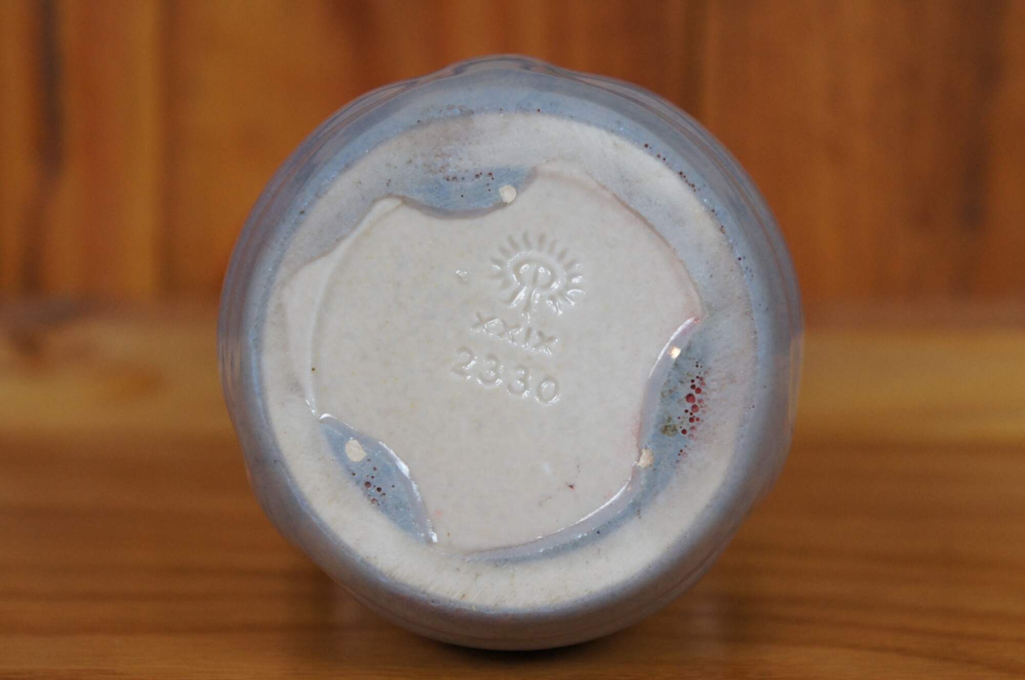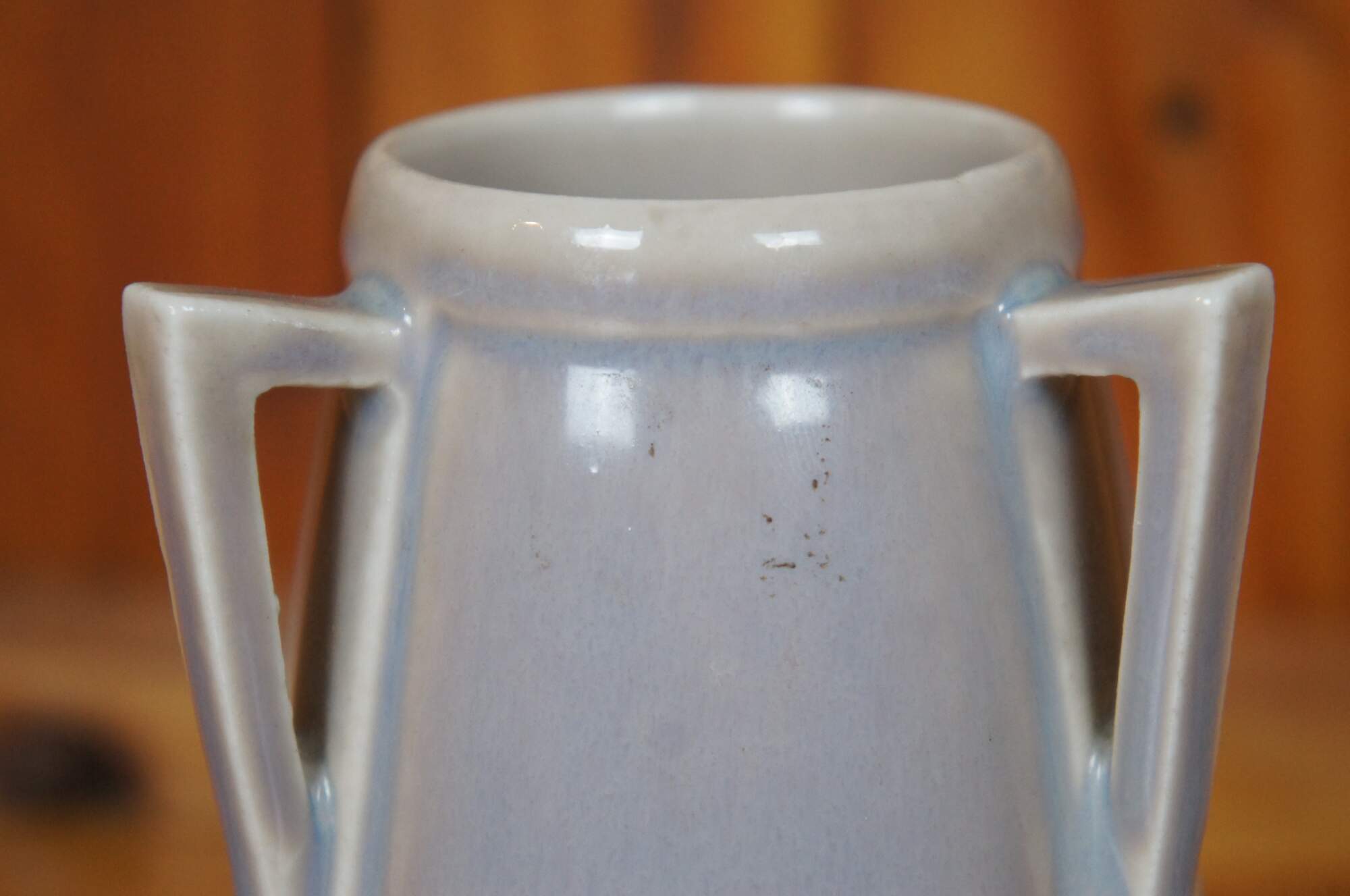 Antique Rookwood bud vase featuring Art Deco styling with three handles, finished in a soft lavender glaze