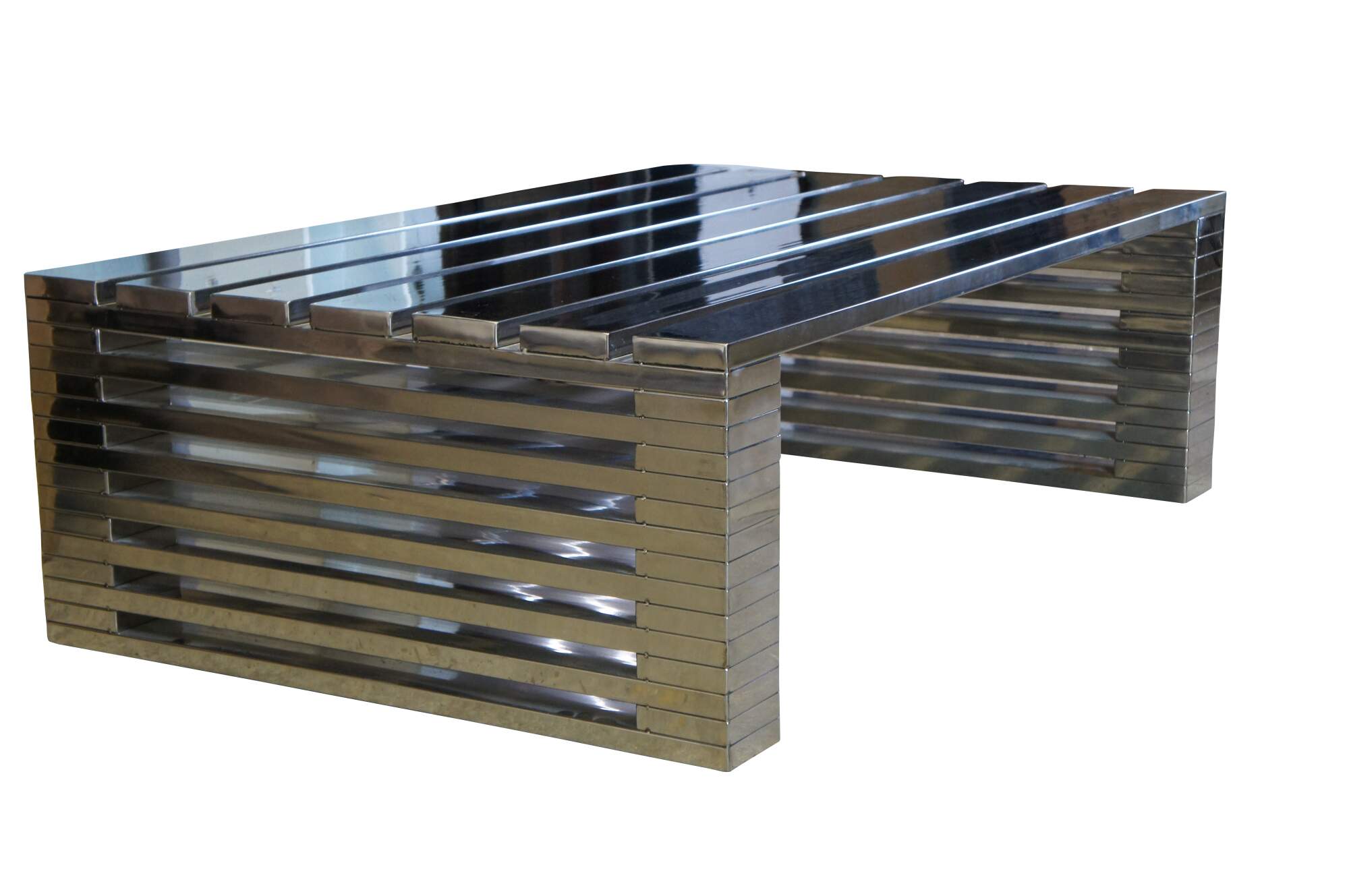Vintage Timothy Oulton Zazenne coffee or cocktail table. Made of chrome / steel featuring rectangular form and mid century modern styling. Very heavy.