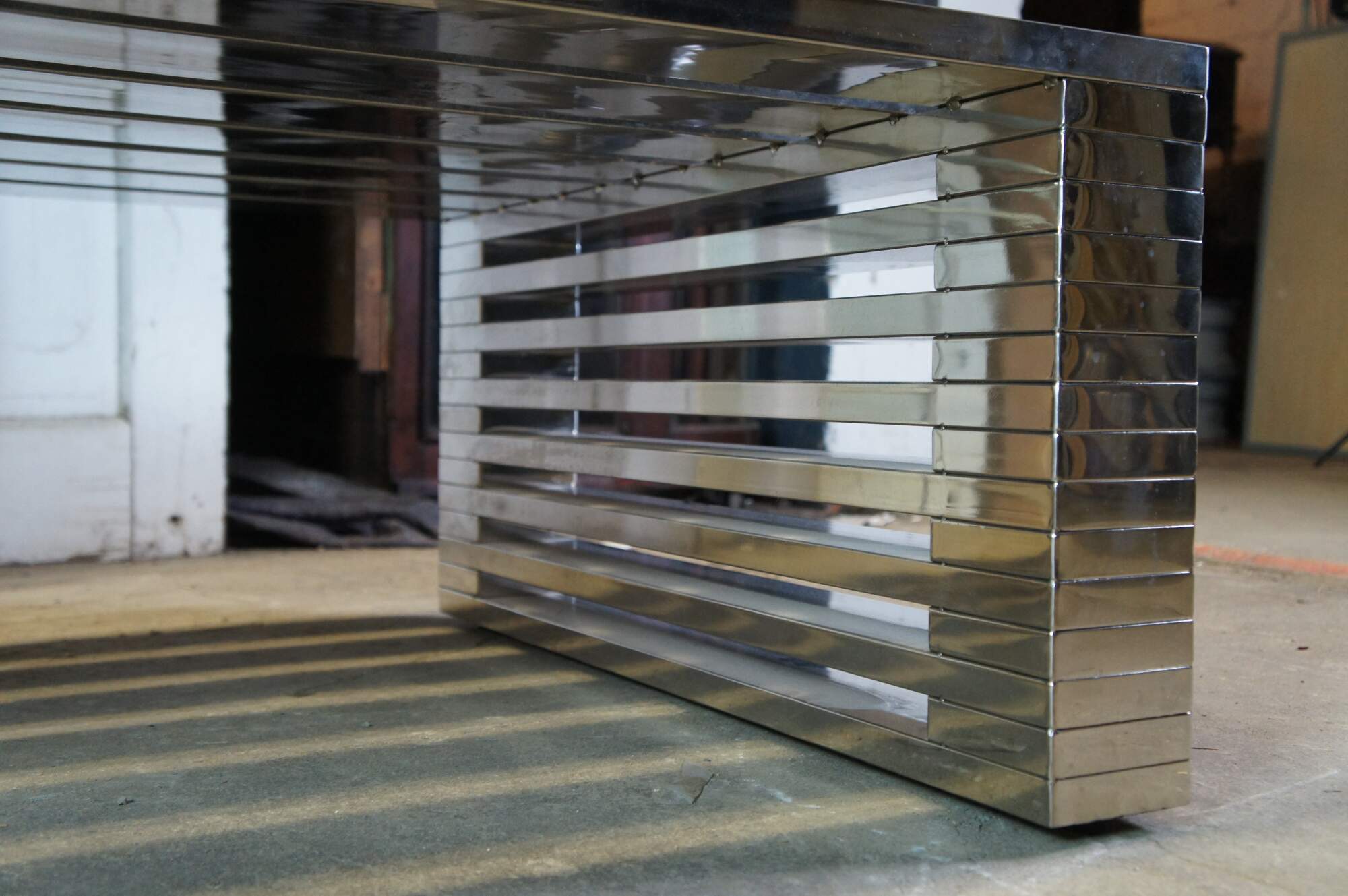 Sit and meditate on Zazenne. Finished in sleek shiny steel, this architectural collection embodies a truly modern aesthetic. Zazenne takes its inspiration from the clean lines of Japanese architecture, and translates it into a highly sculptural range of furniture. Painstakingly handcrafted and assembled, the Zazenne coffee table requires hours of labour to complete, demanding maximum levels of precision and finesse.