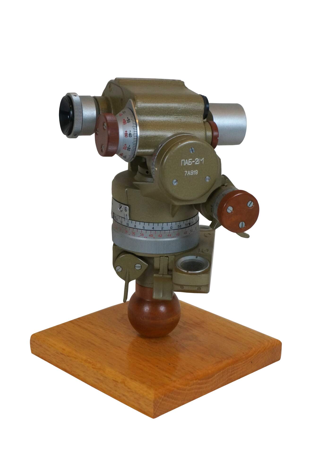 "Designed to determine the azimuth, to provide orientation according to the stars location, to measure the horizontal and vertical terrain angles as well as for determining distances up to 400 m. based to a certain outer base. The periscopic artillery aiming circle can be used at the observation point of the fire position, as well as for topographic works at daytime and under low visibility conditions (dusk), using illumination for the scales of aiming circle, the monocular and the long range measuring rod.