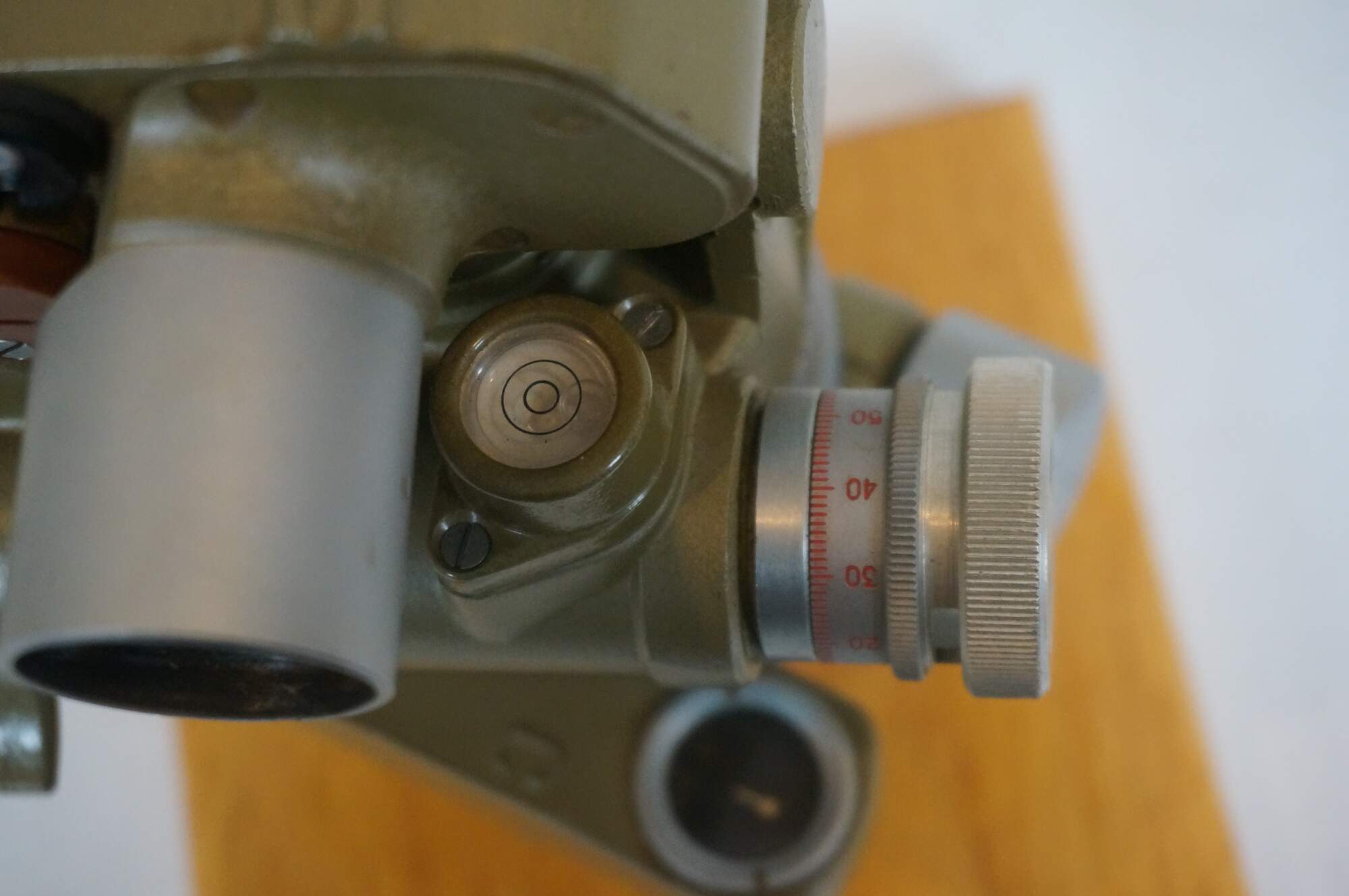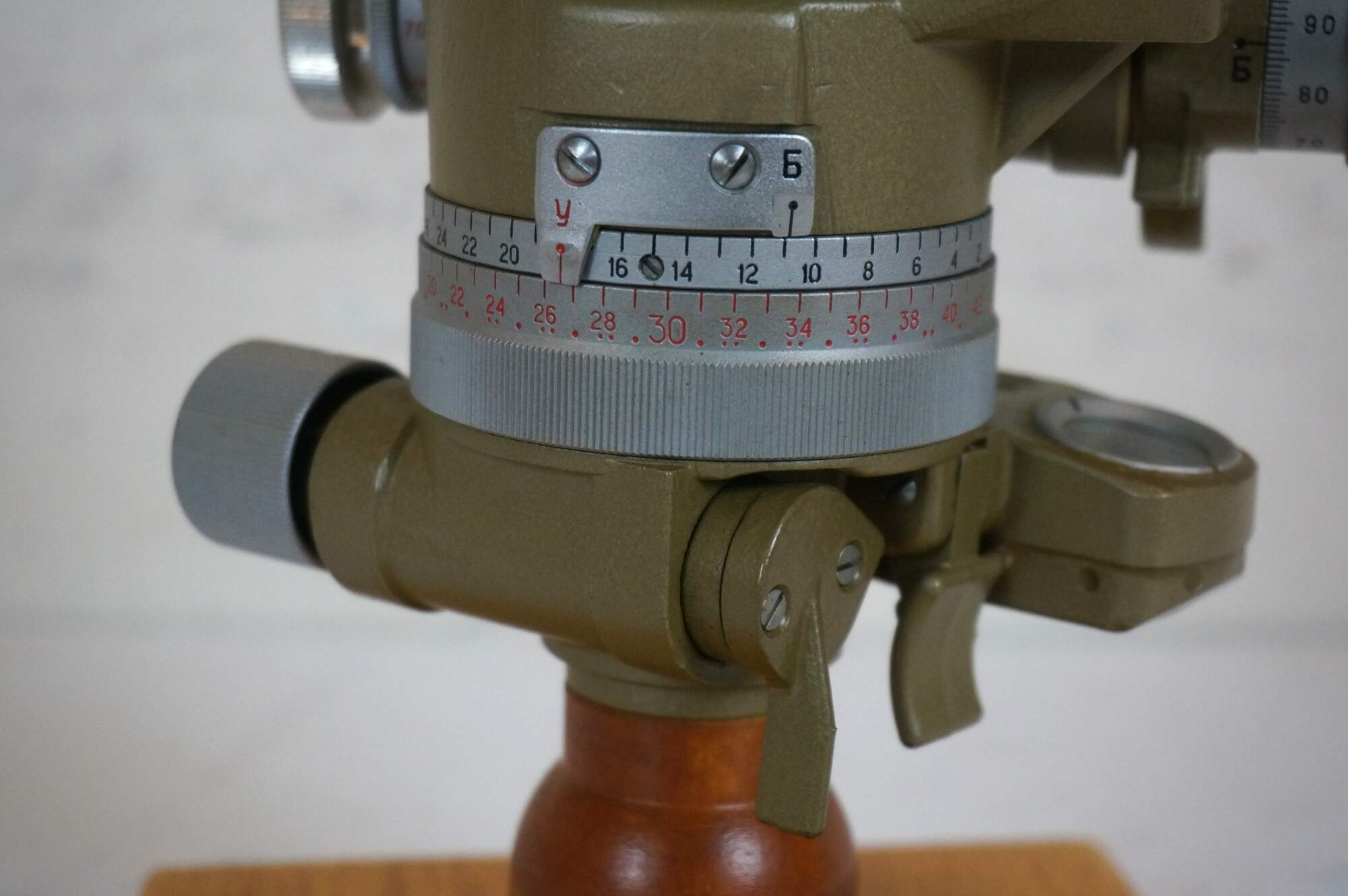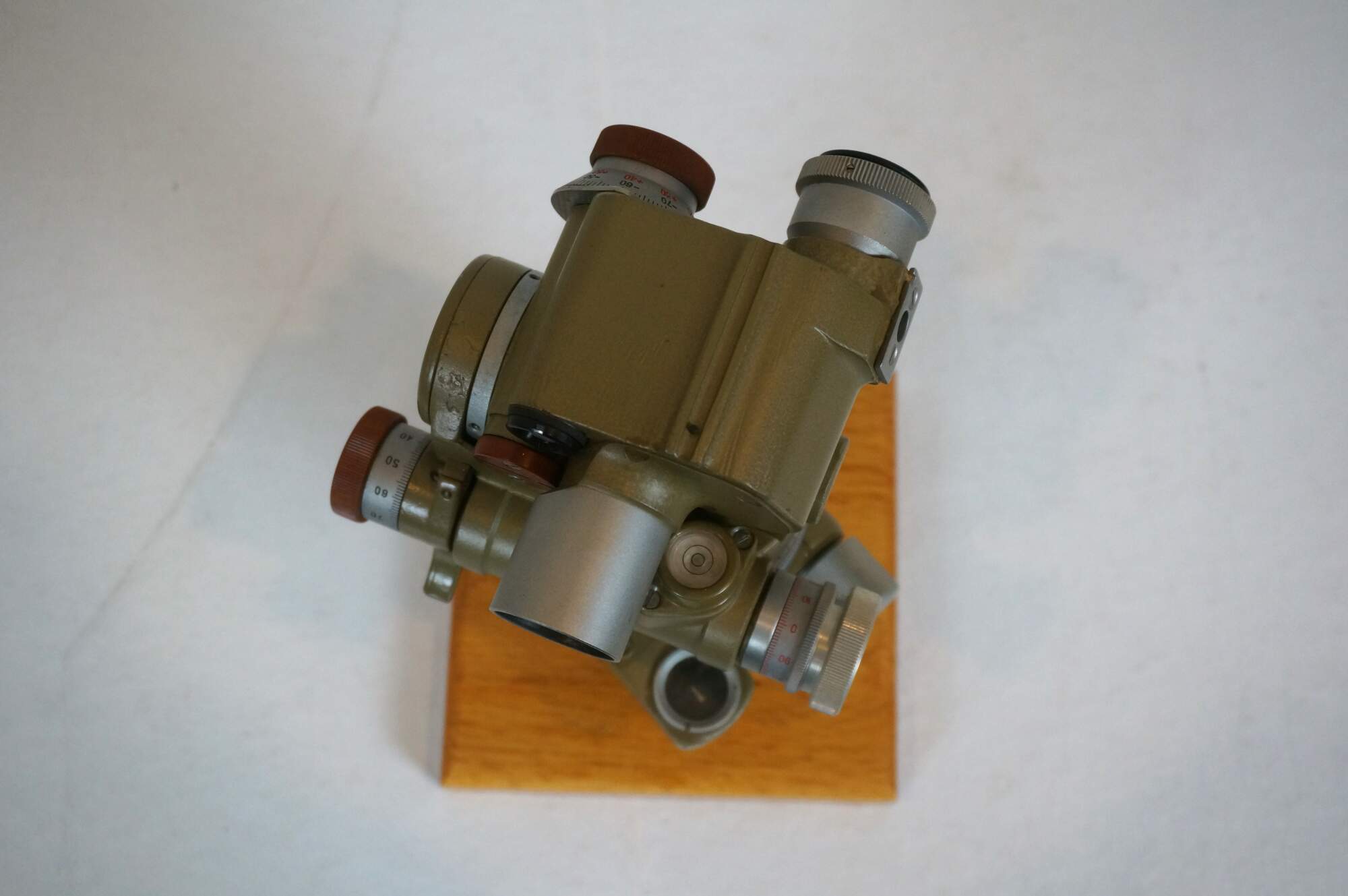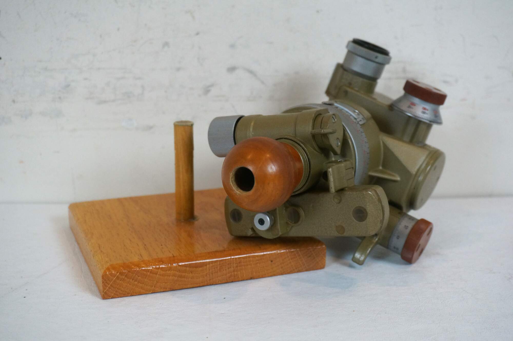 Vintage circa 1950s Russian military periscope artillery aiming circle - PAB-2M / 7A919. Includes hardwood base for sculpture mount display.