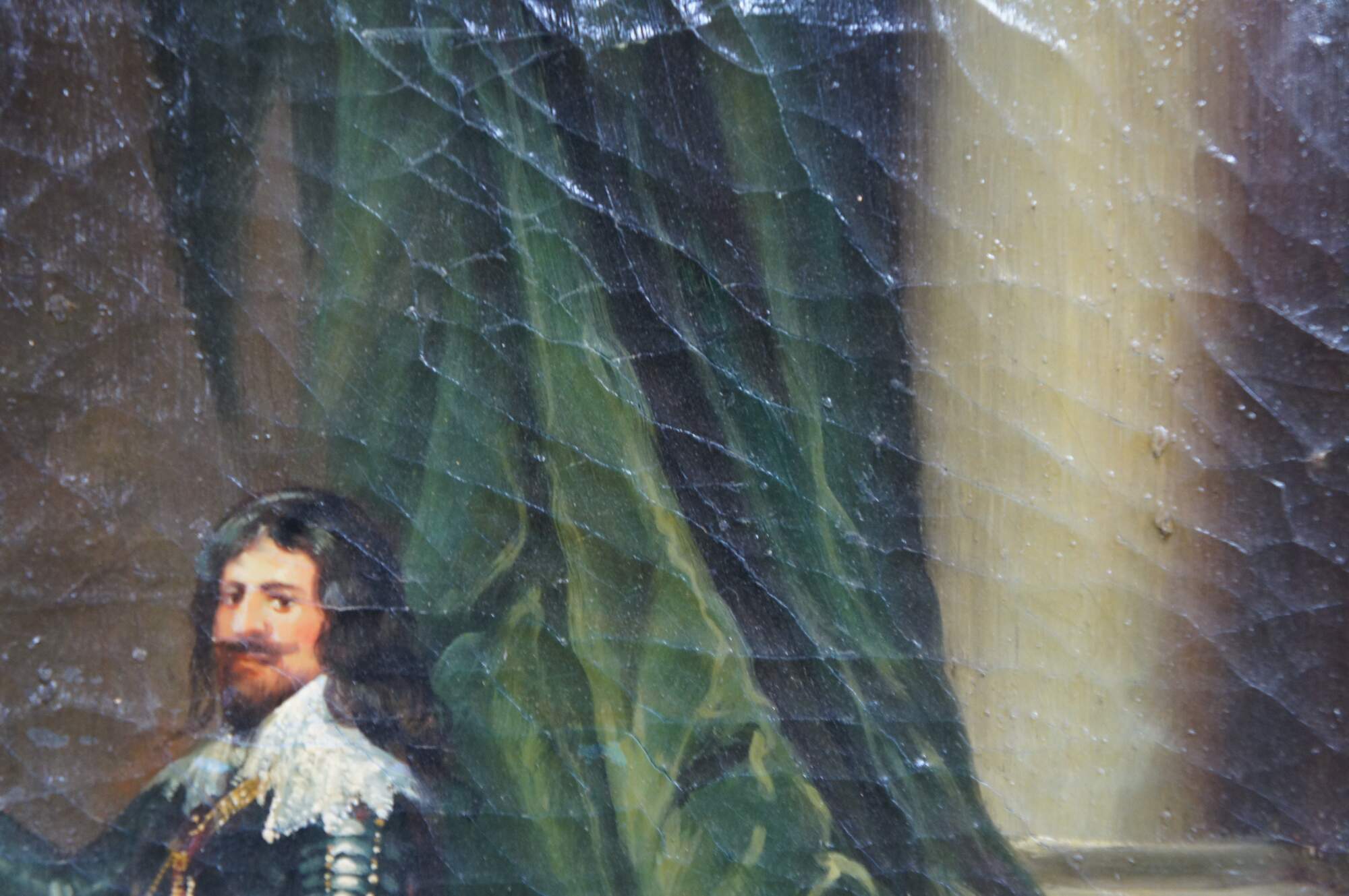 Late 20th century oil painting on linen after "Equestrian Portrait of Thomas Francis of Savoy, Prince of Carignano" originally painted in 1634 by Anthony van Dyck. Baroque gold floral and foliate frame.