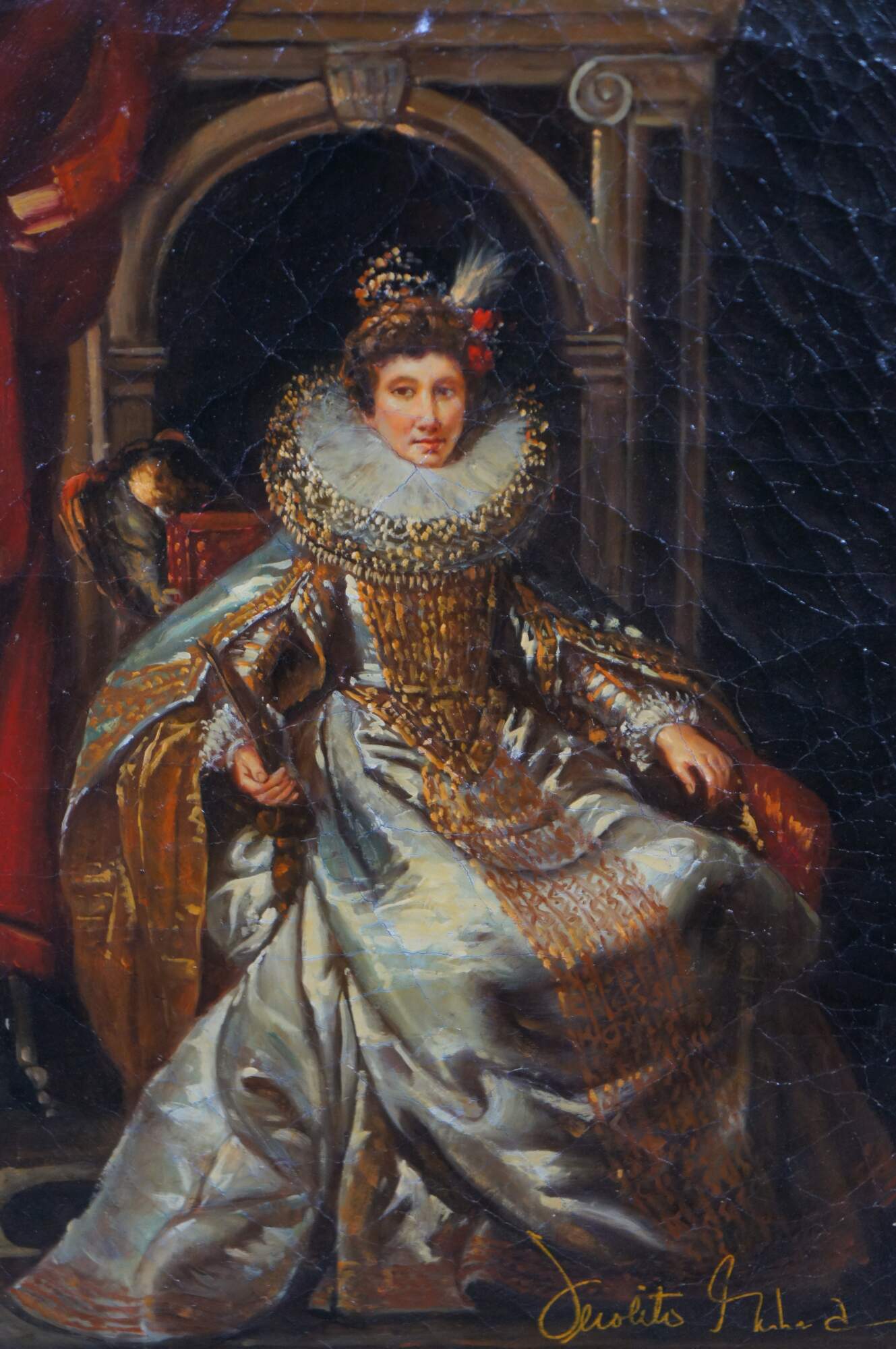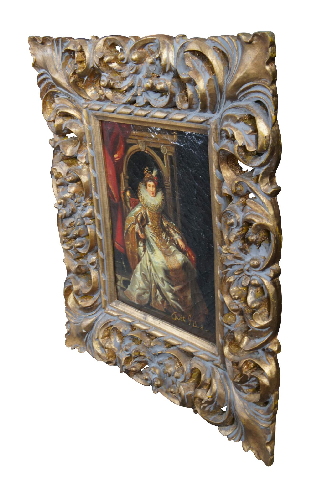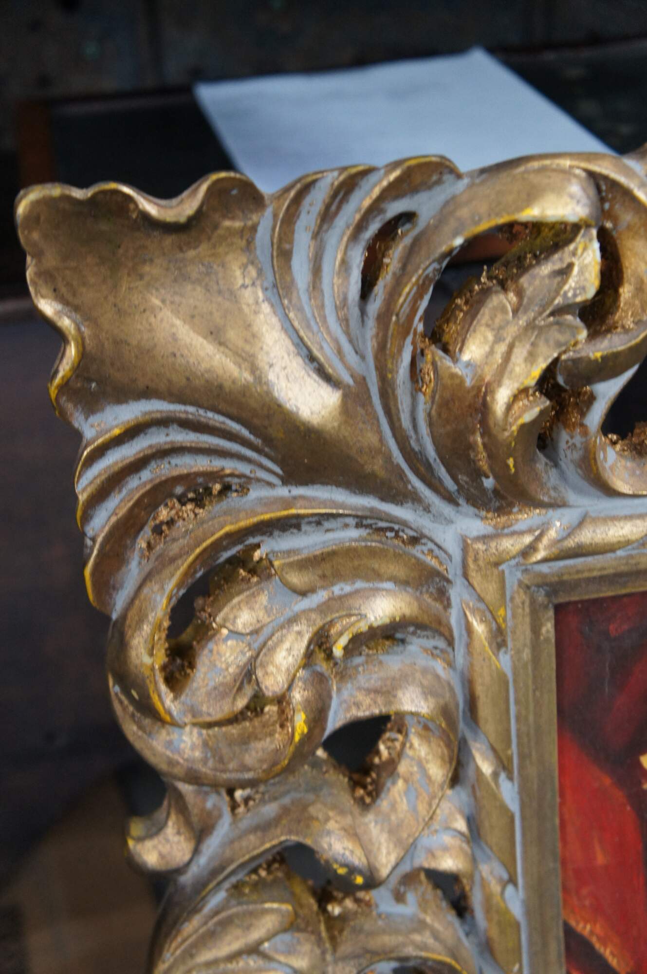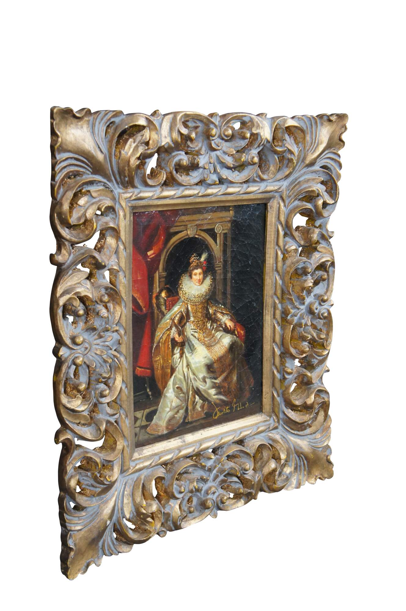 Portrait of Marchesa Maria di Antonia Serra Pallavincino after Peter Paul Rubens. Very heavy baroque gold pierced acanthus foliate frame.