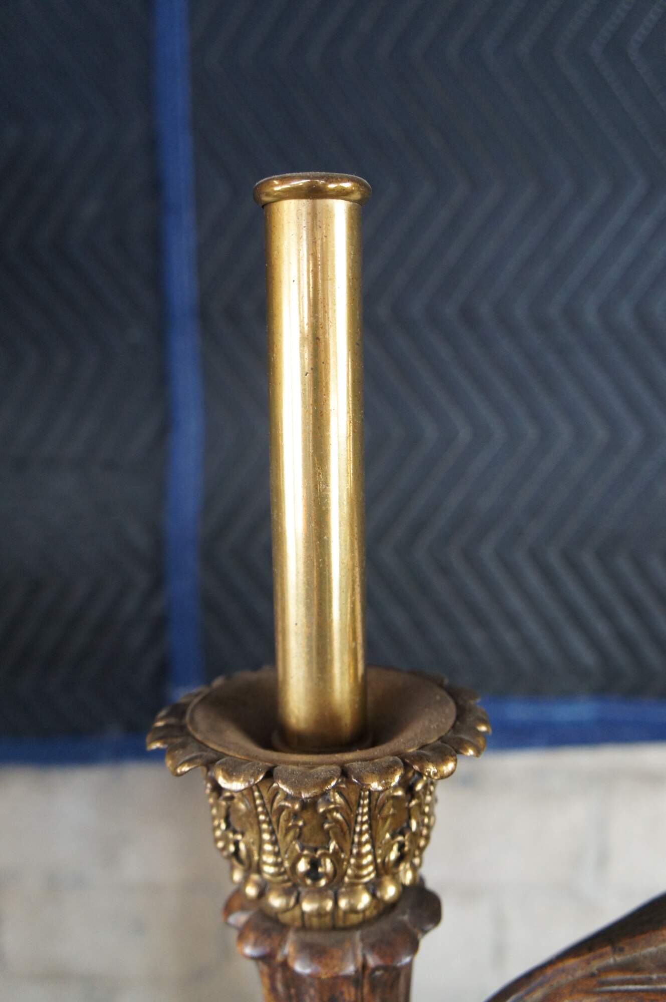 Pair of two vintage Maitland Smith carved acanthus brass candlesticks/ candelabra buffet/ banquet/ table lamps. Includes large oval pleated shades.