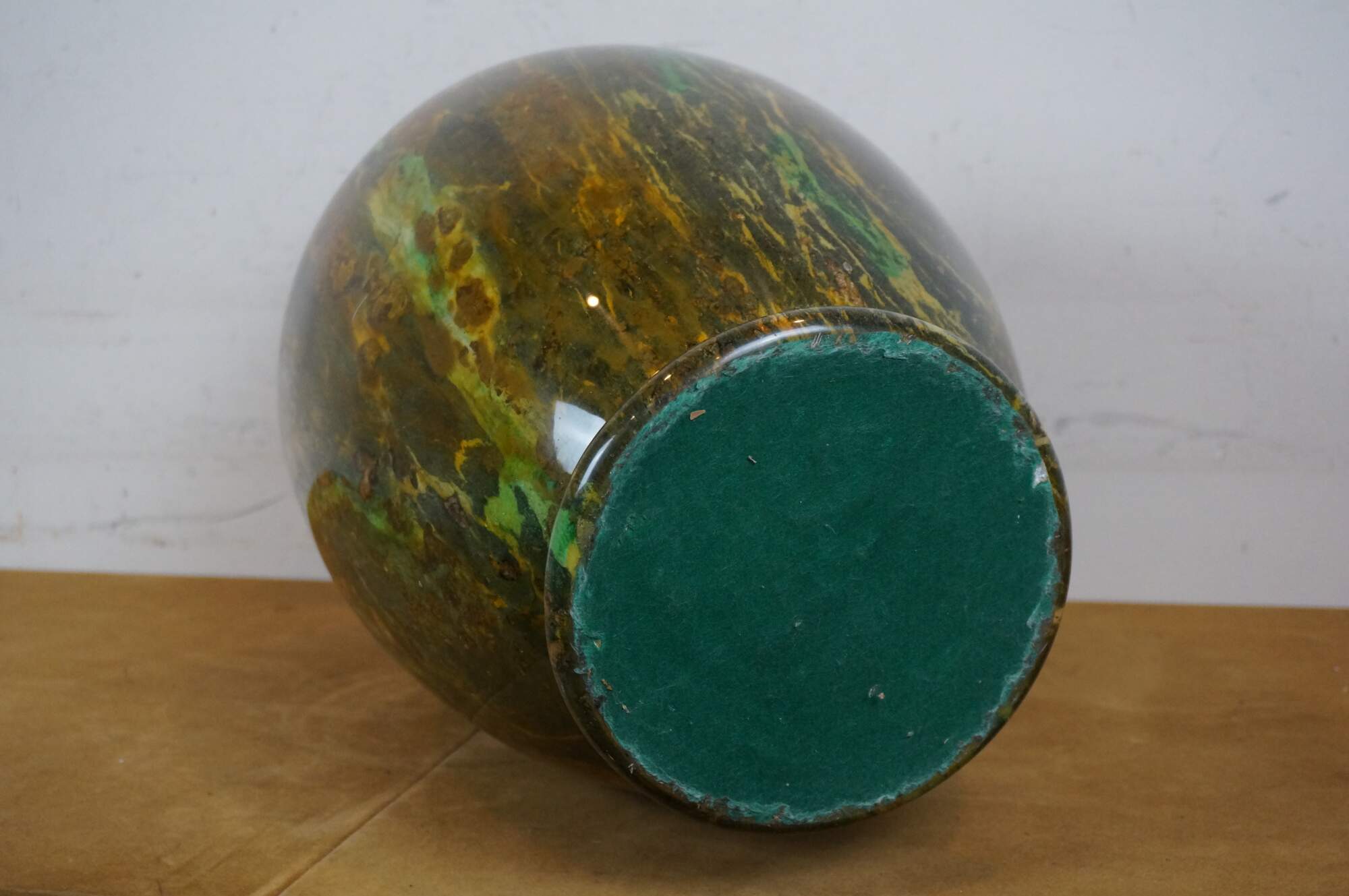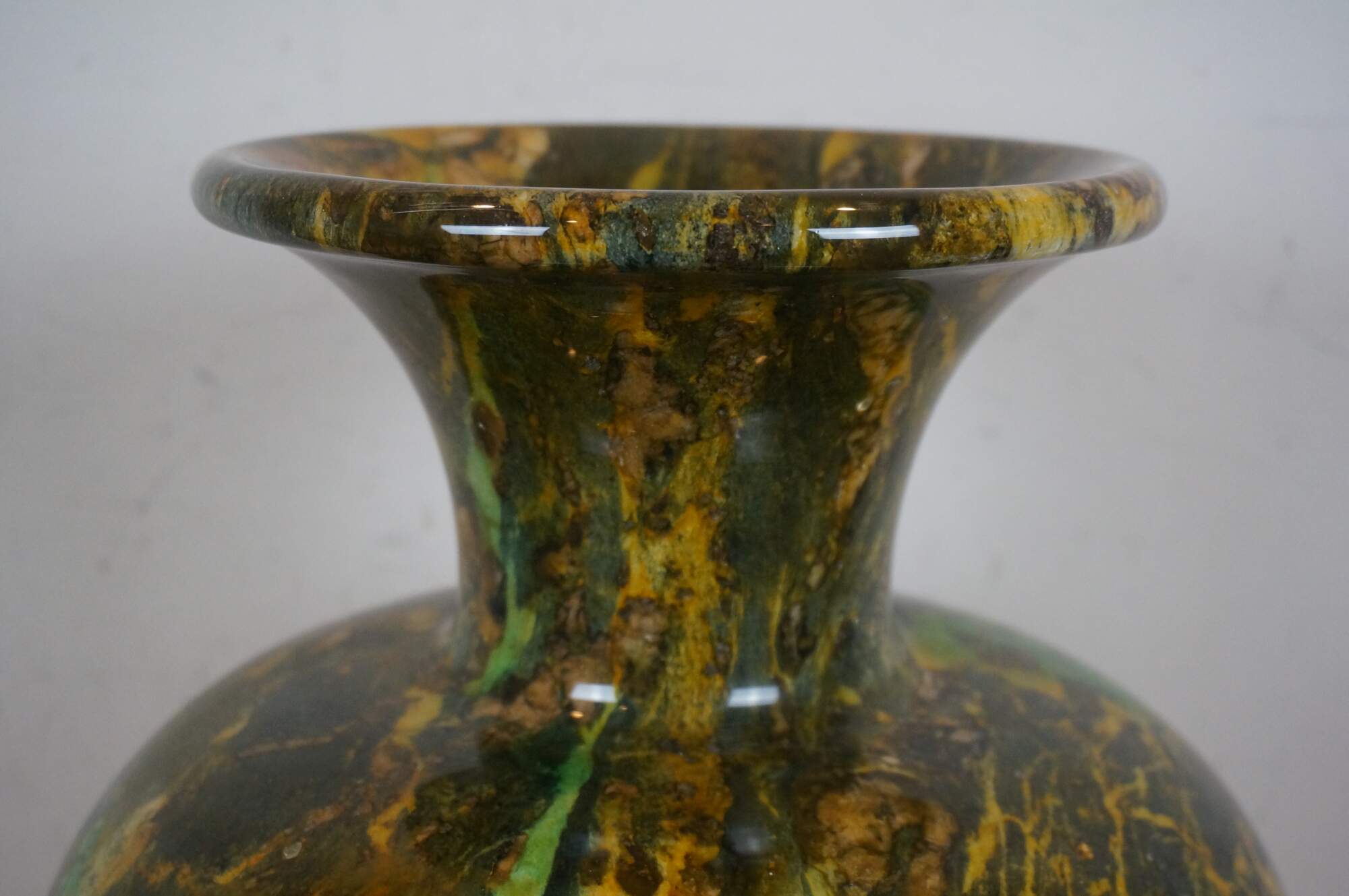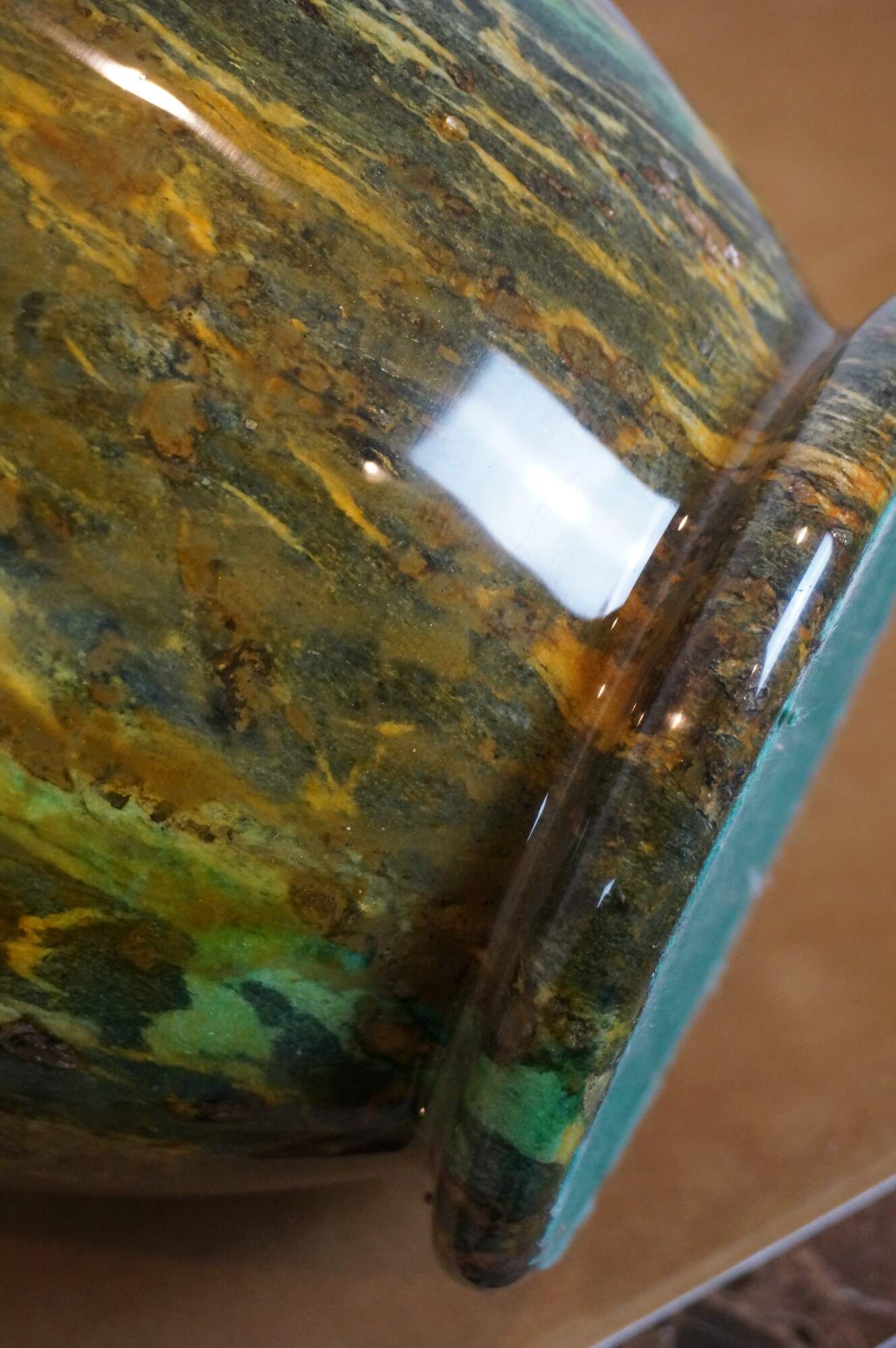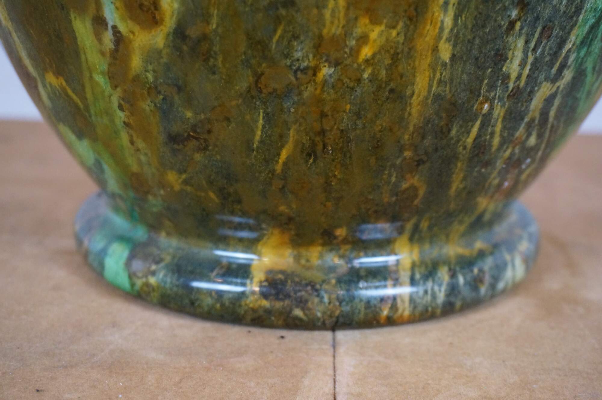 Vintage Chinese carved and polished jade/marble featuring shades of green with yellow, black, and bright green veining.