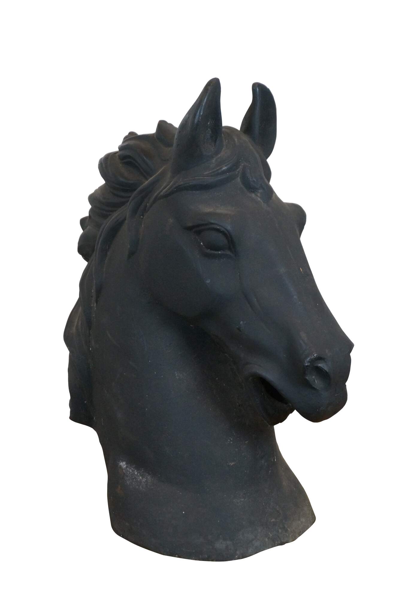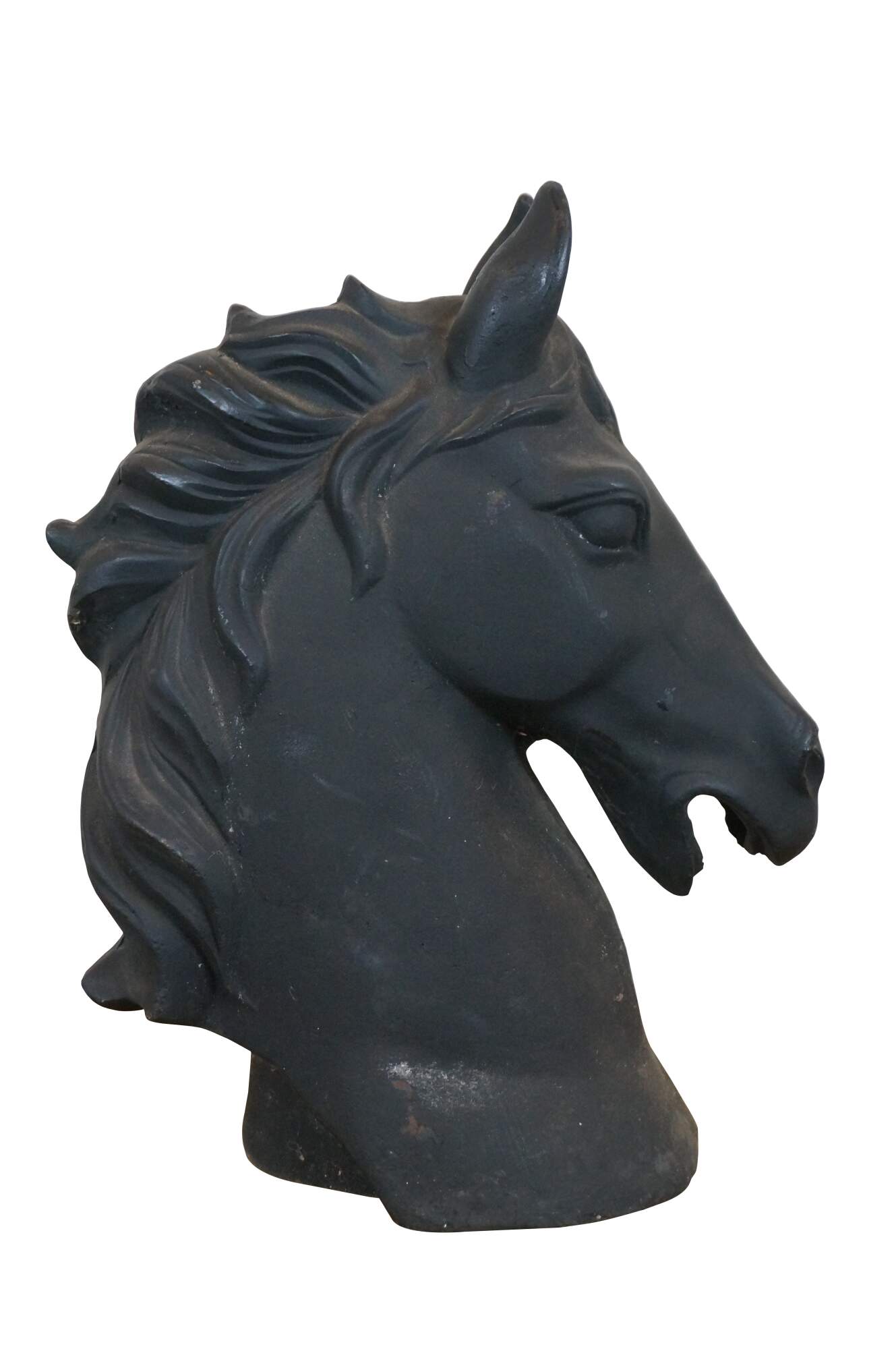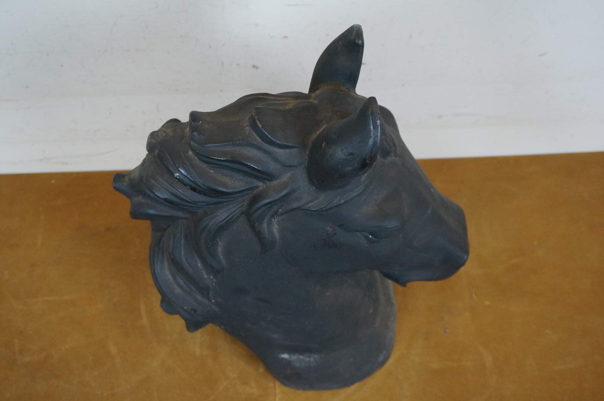 Vintage cast iron horse head bust / sculpture painted with a matte black finish.