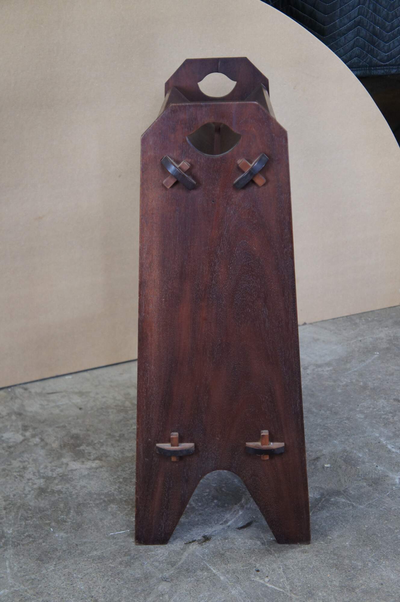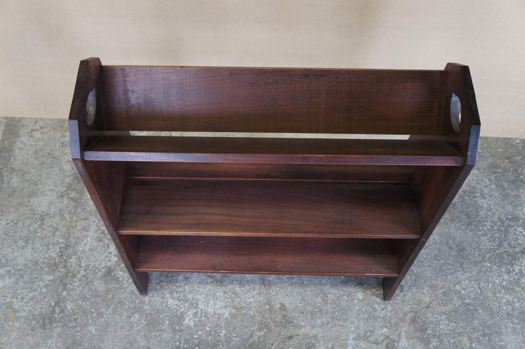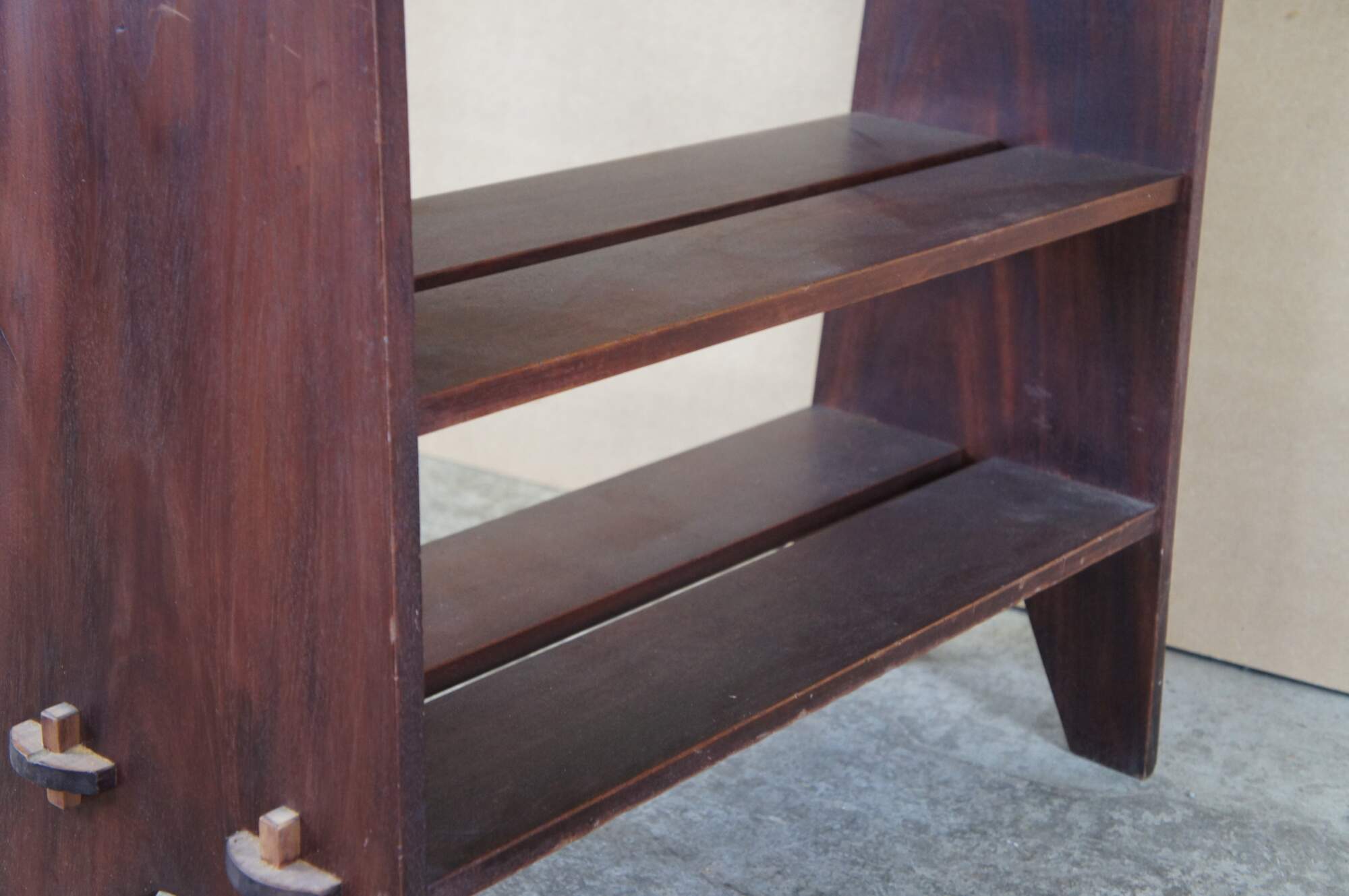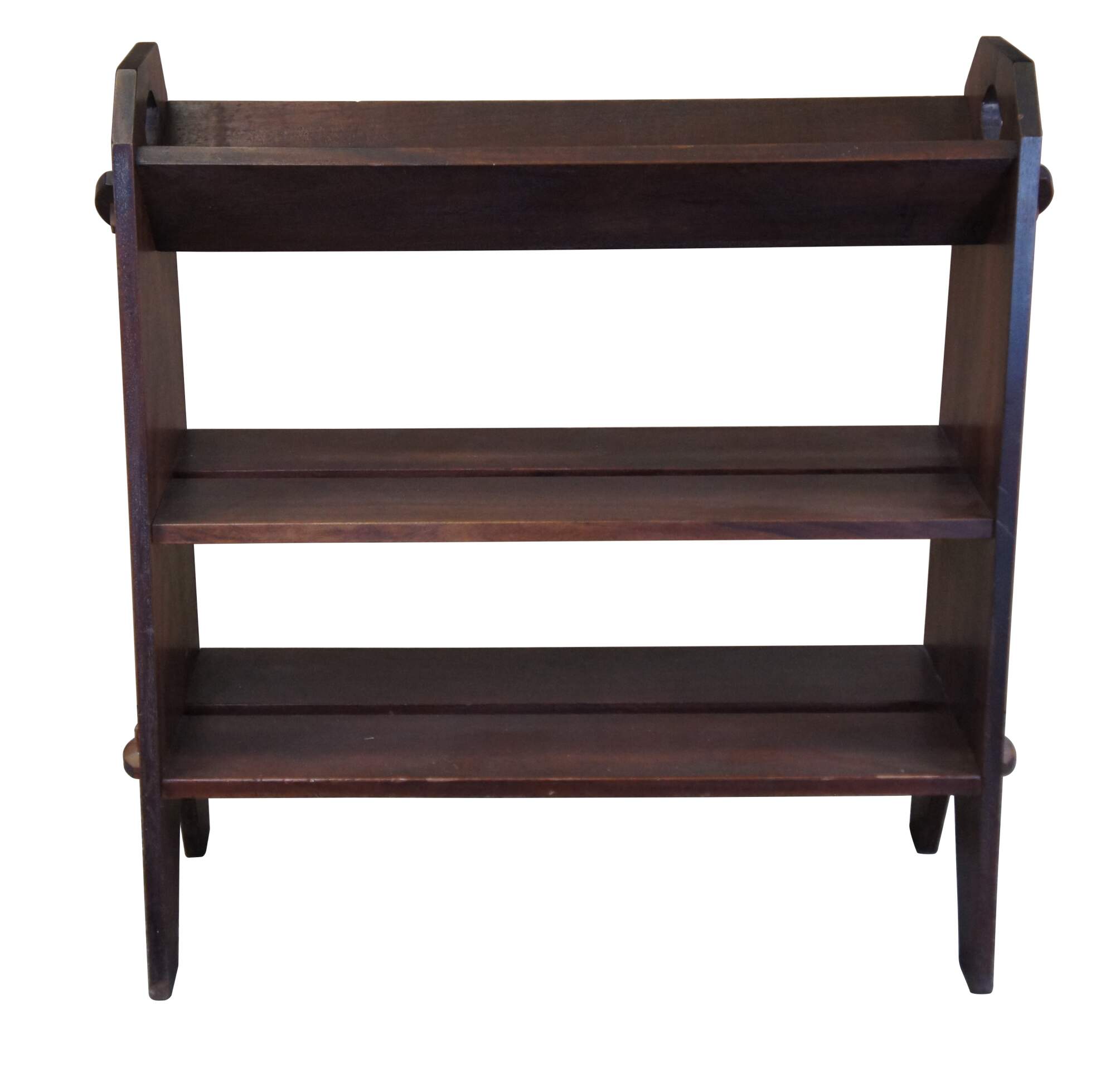 Stickley Brothers "Quaint Furniture" Mission Book Trough or Magazine Stand, C.1910. Features a mahogany frame with trough along the top over two drawers. Shelves are uniquely tenoned together along the side. The shelf is marked along the underside with original metal tag.