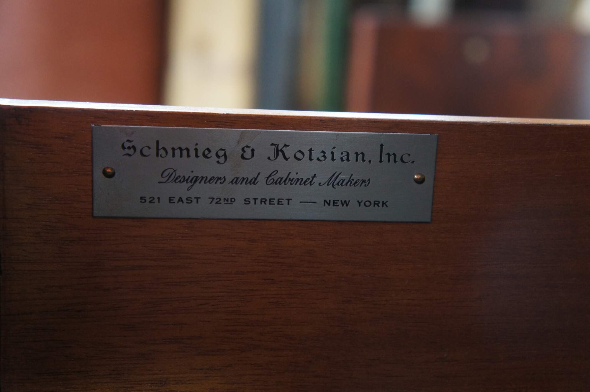 Schmieg & Kotzian were apprentices to prominent London furniture manufacturers. The two formed a partnership and moved to New York to establish a reputable firm. They were known for producing high quality furnishing with exotic woods and veneers.