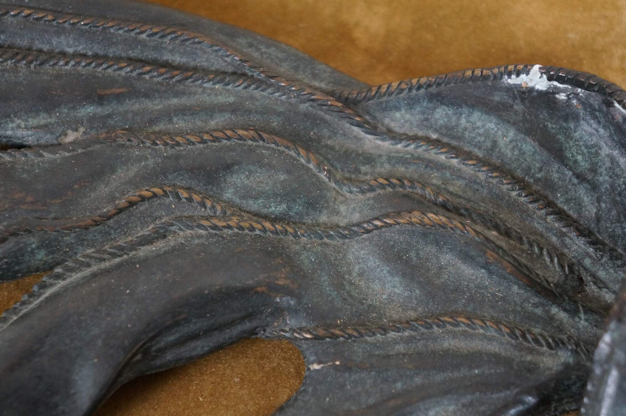 Bronze sculpture/figurine in the shape of of a Victorian glove with decoratively stiched seams and wrist buttons, carelessly tossed down by the owner. Designed after Anfre Breton's original sculpture made in 1900. The original bronze glove was only cast 8 times and has since made it into prestigous collectins.