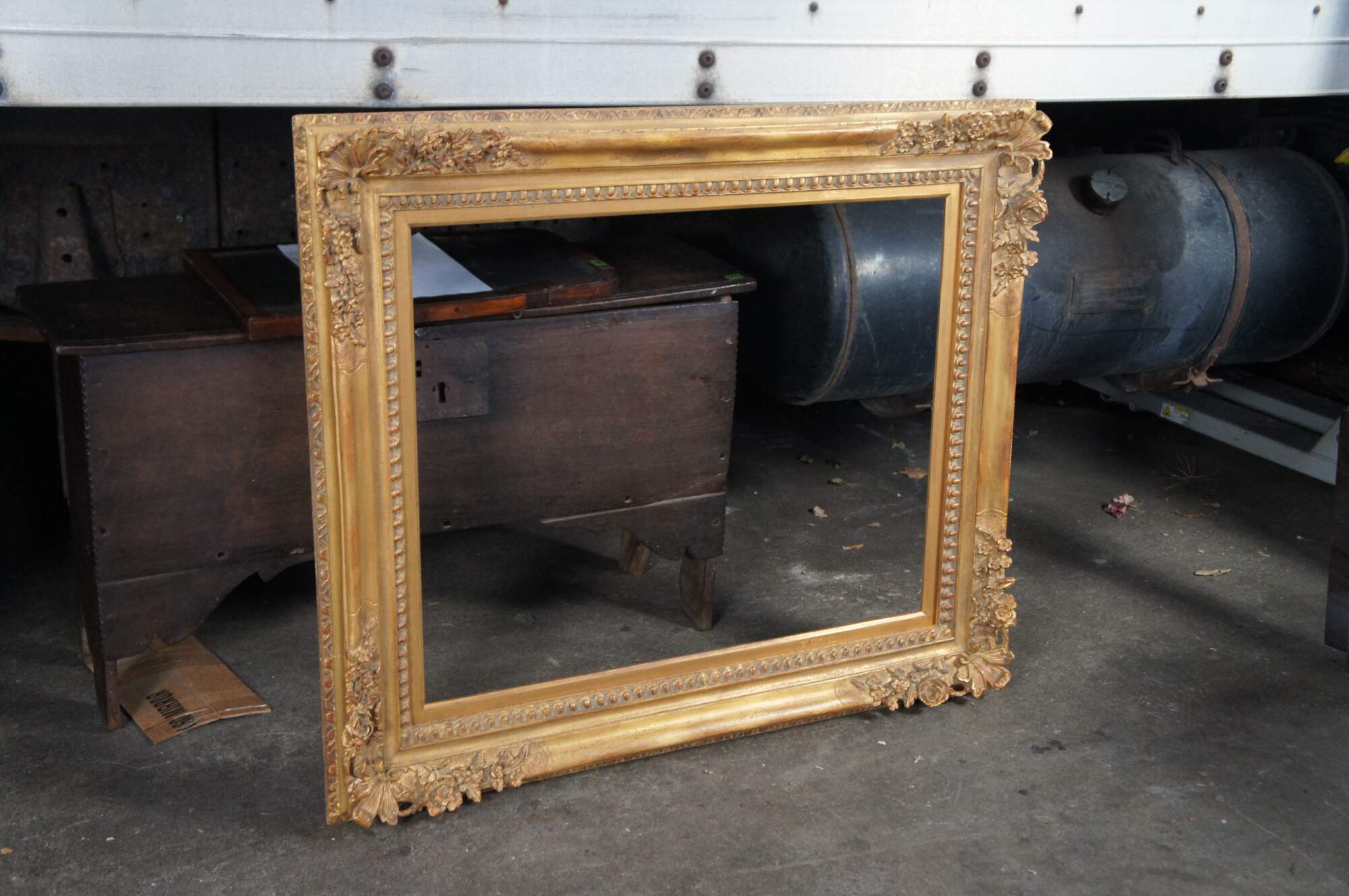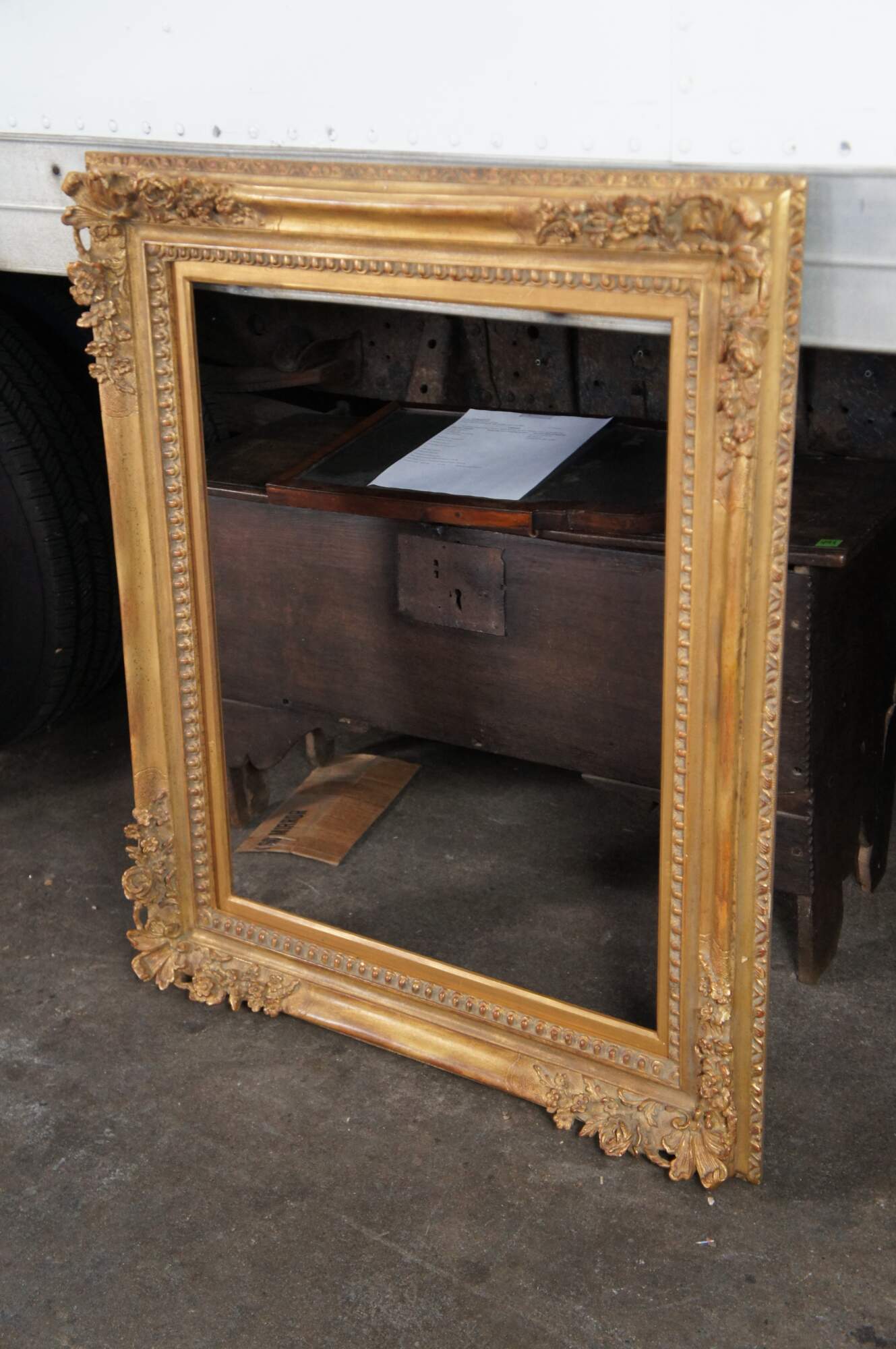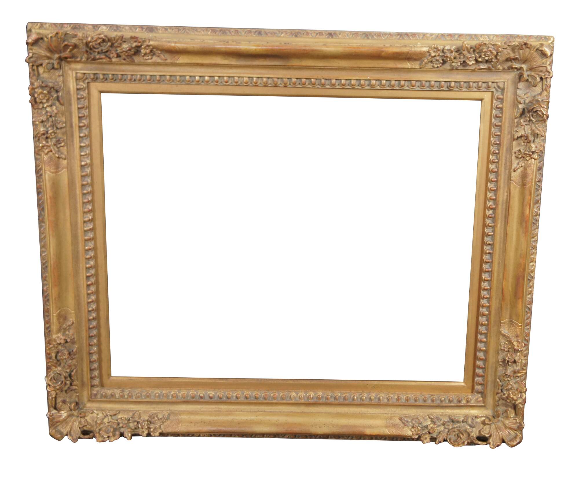 An ornate late 20th-century Baroque style art or mirror frame. Features beautiful raised foliate relief along the corners and egg and dart molding. Fits a 24" x 30" painting or mirror.