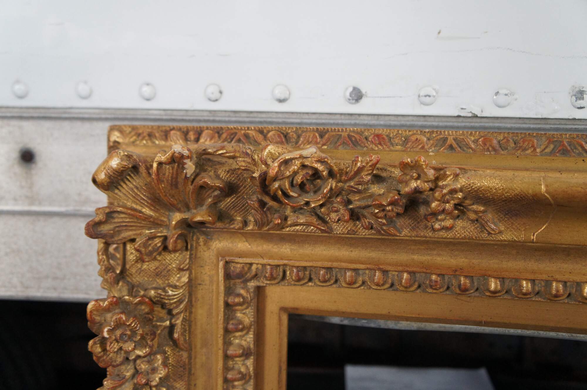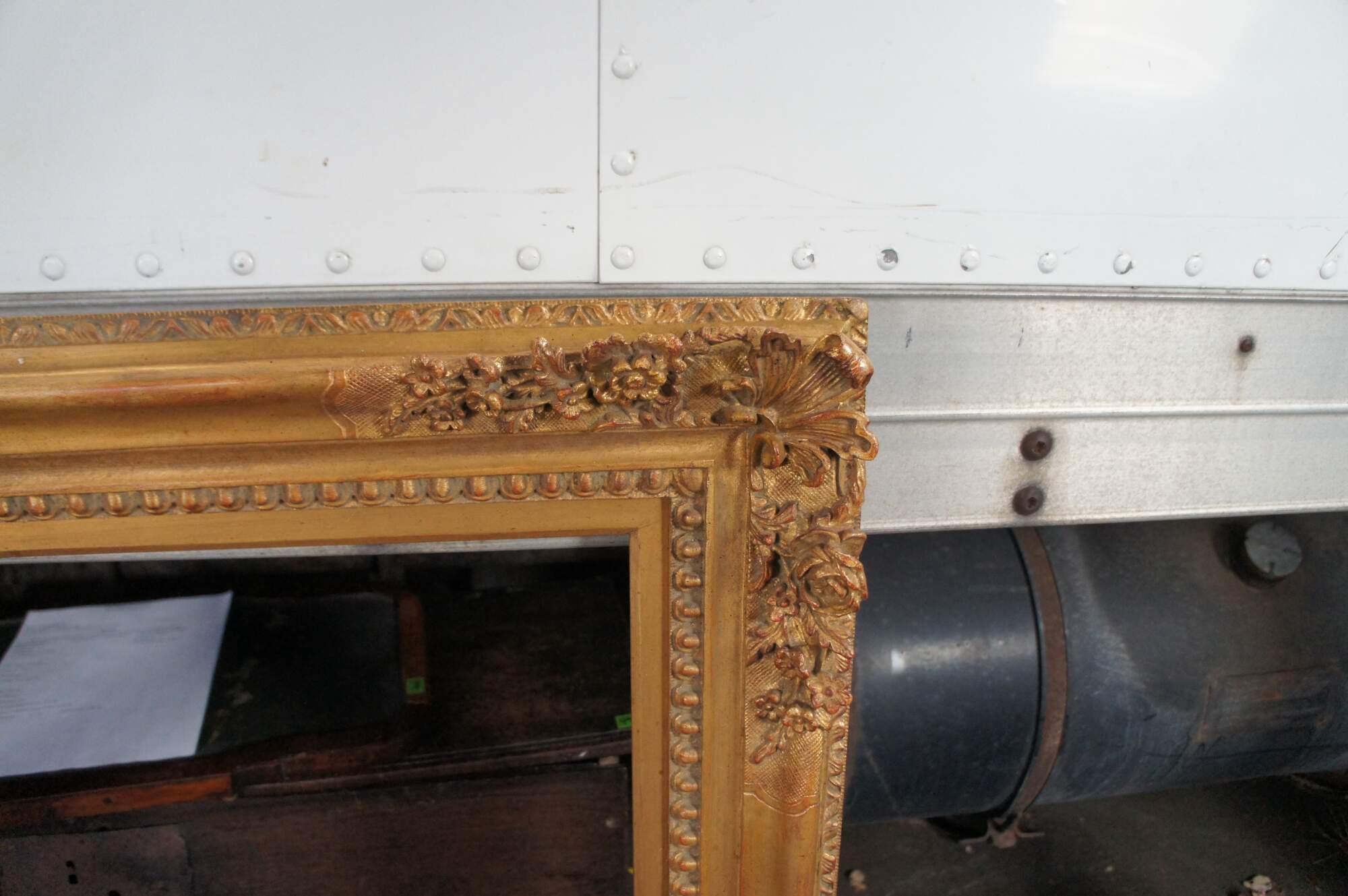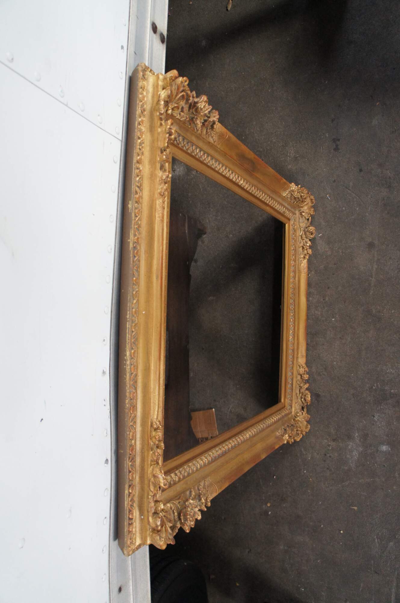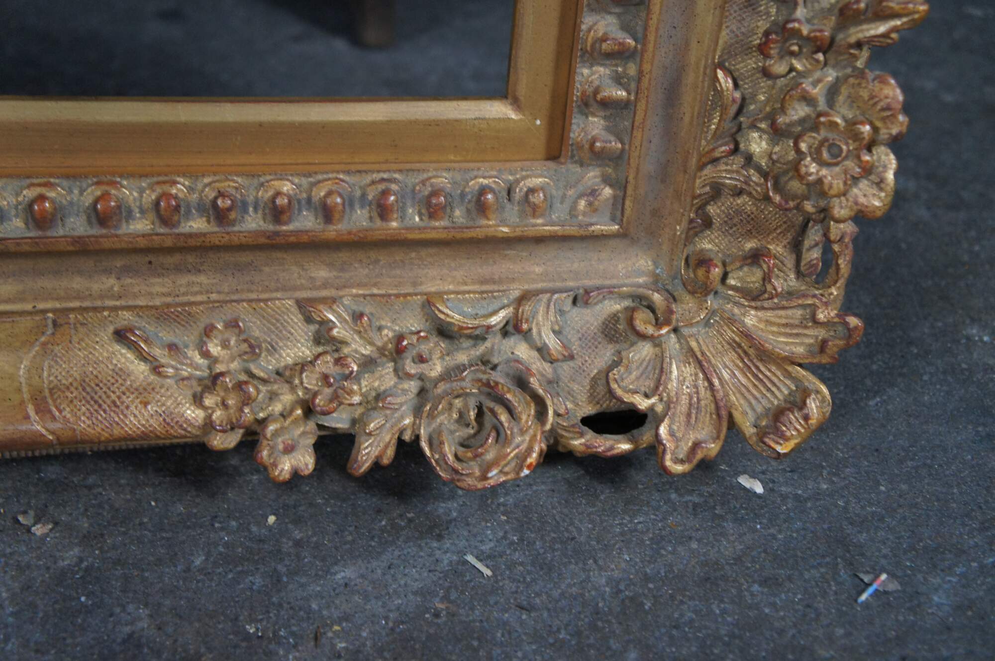 An ornate late 20th-century Baroque style art or mirror frame. Features beautiful raised foliate relief along the corners and egg and dart molding. Fits a 24" x 30" painting or mirror.