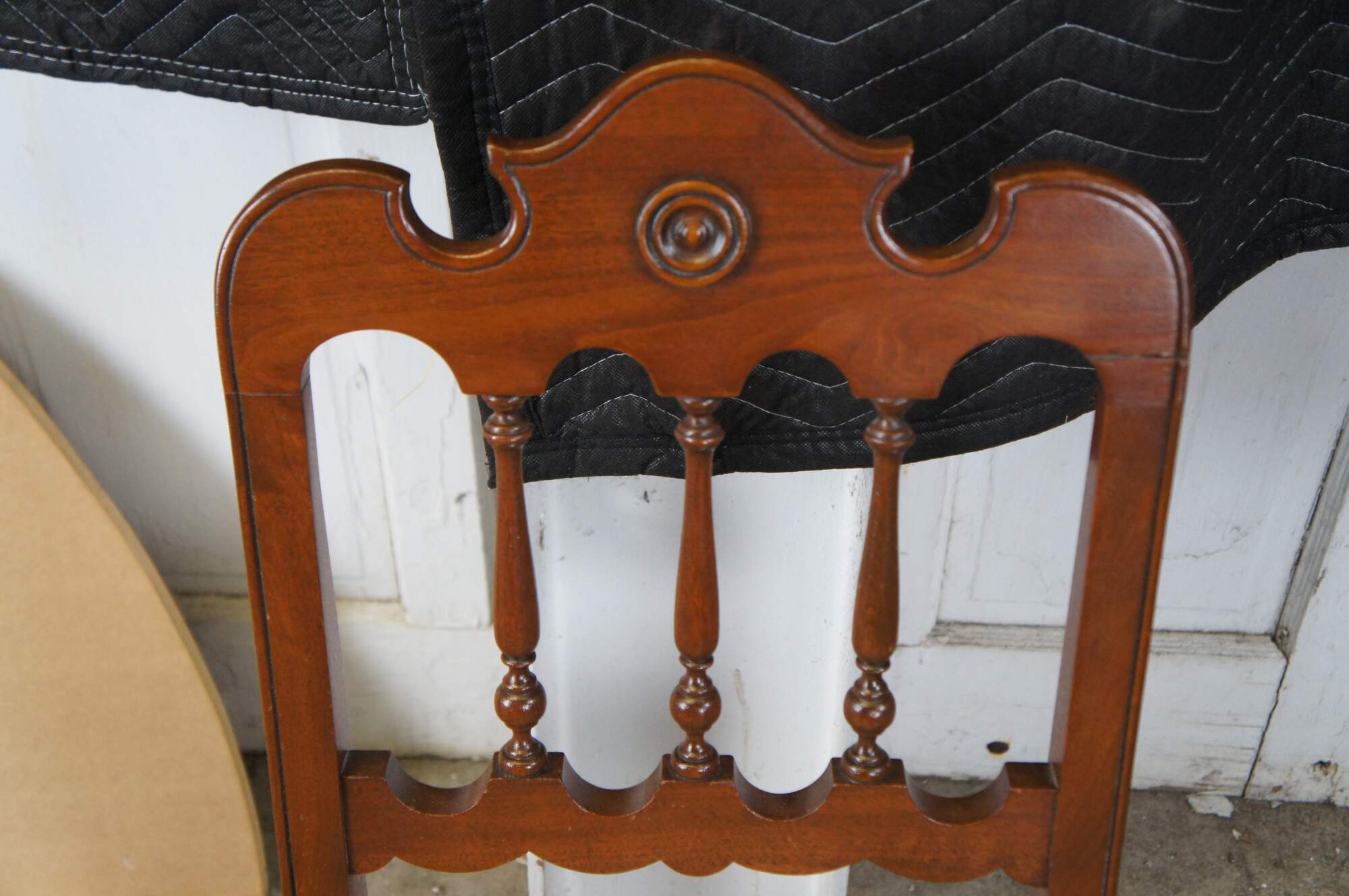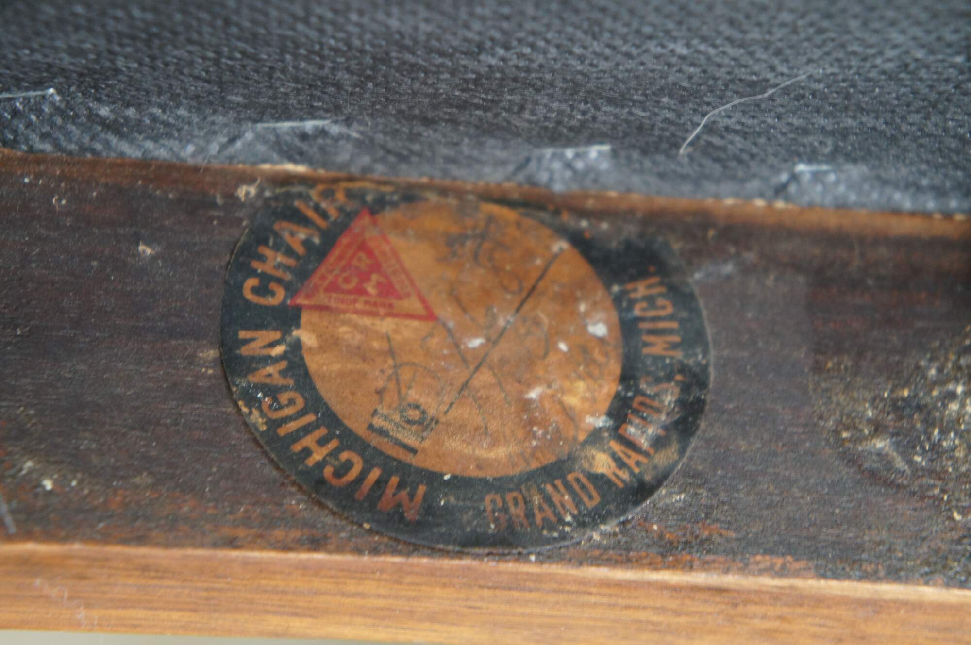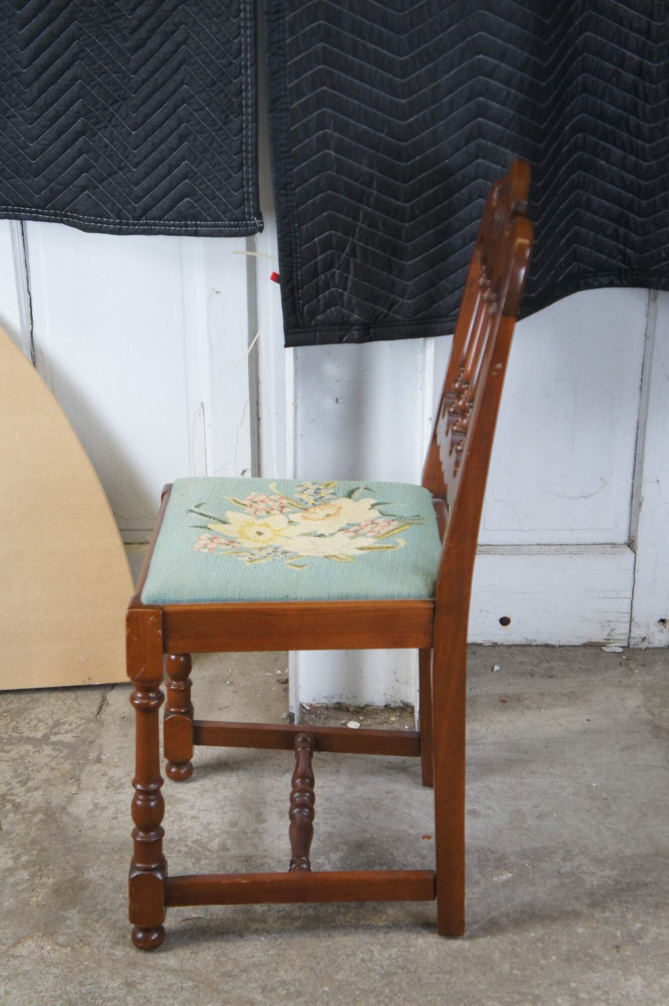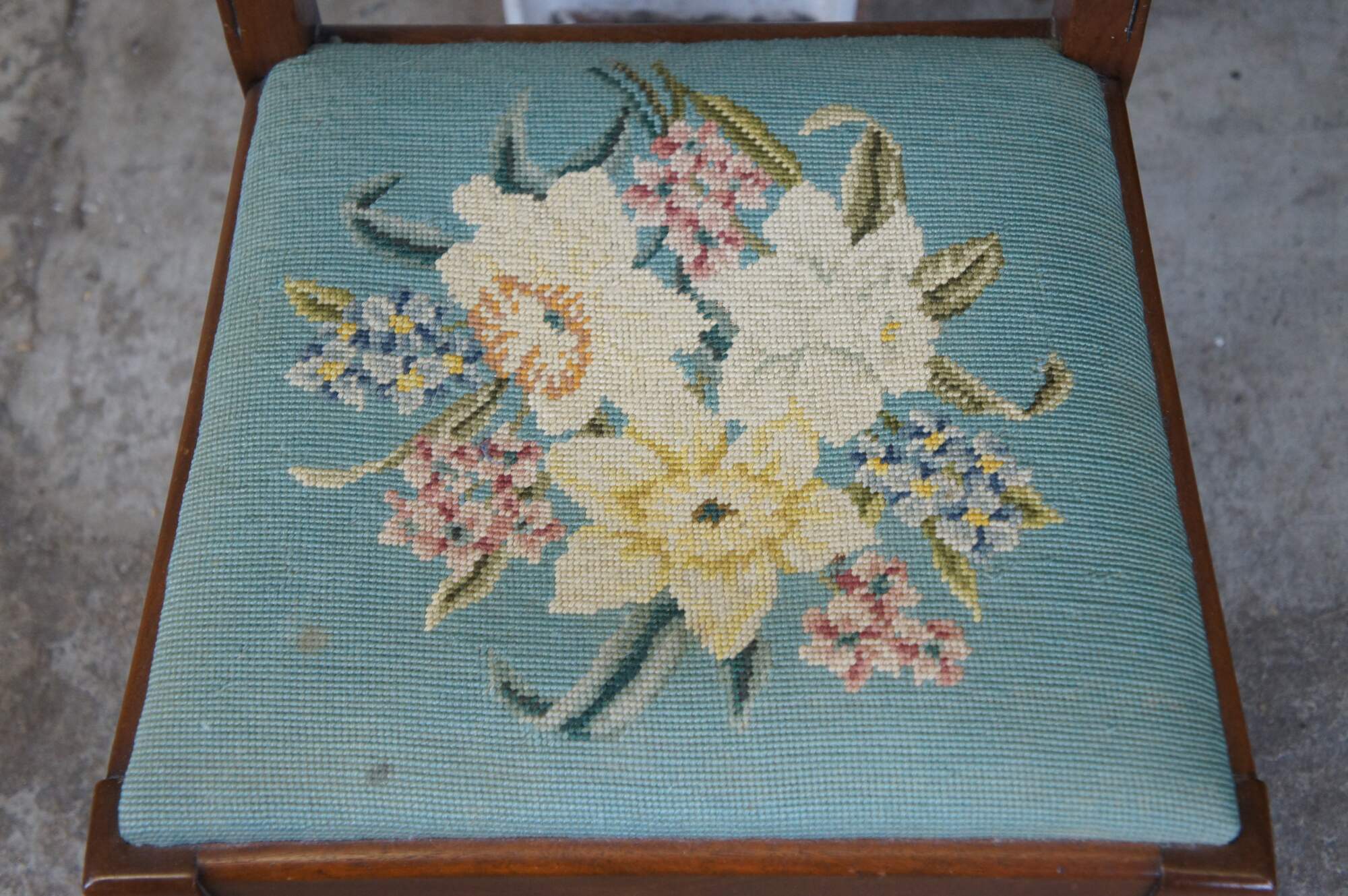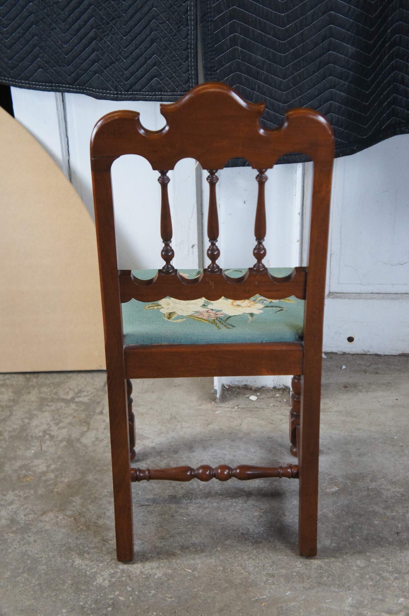 Michigan Chair Company Victorian style side or desk chair, circa 1910-20. Made from walnut with an ornate crest rail and spindled back. Features a floral embroidered seat over turned legs connected by an H stretcher.