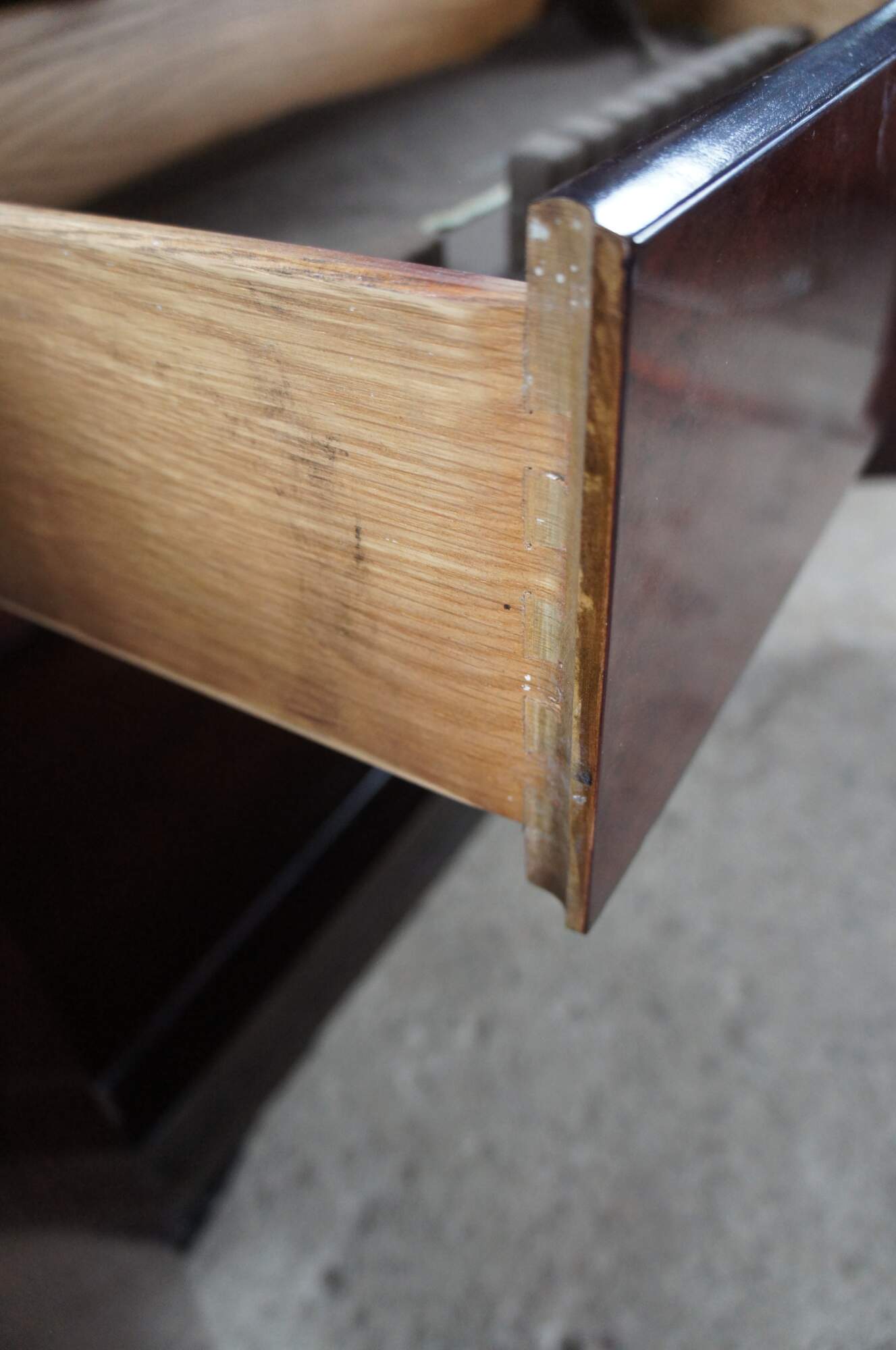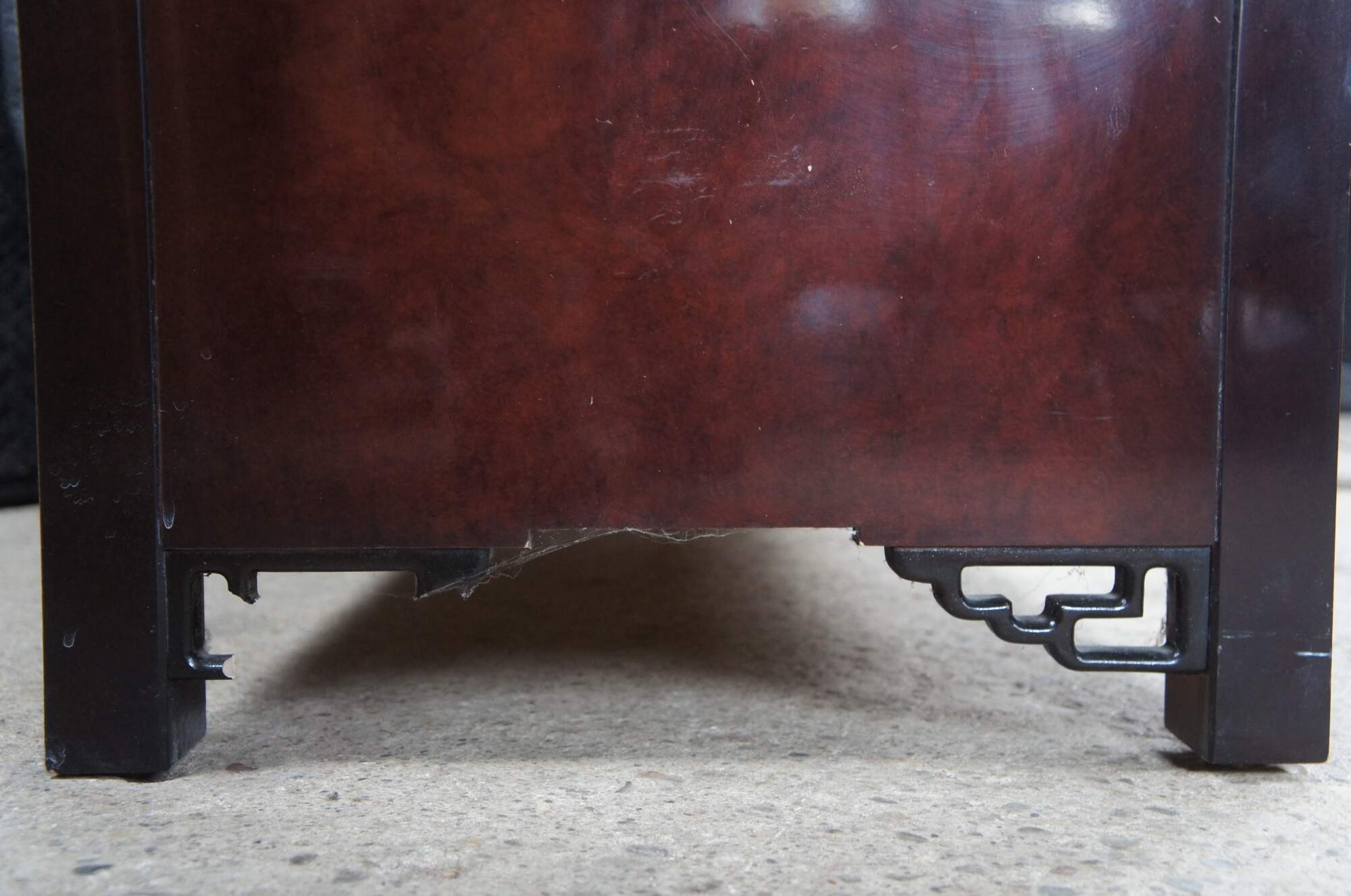 General wear from use and age. Some light marking and edgewear. One of the pieces of fretwork is broken on the back left side.