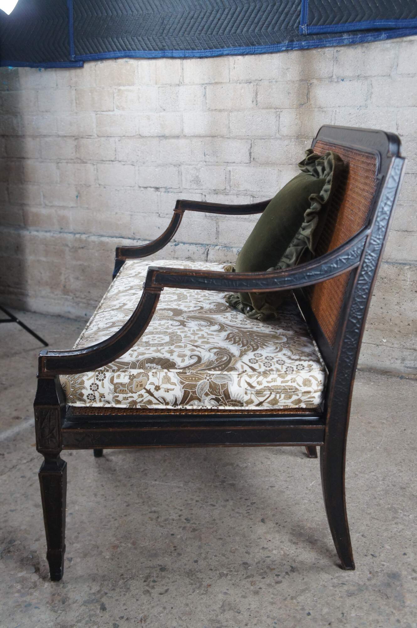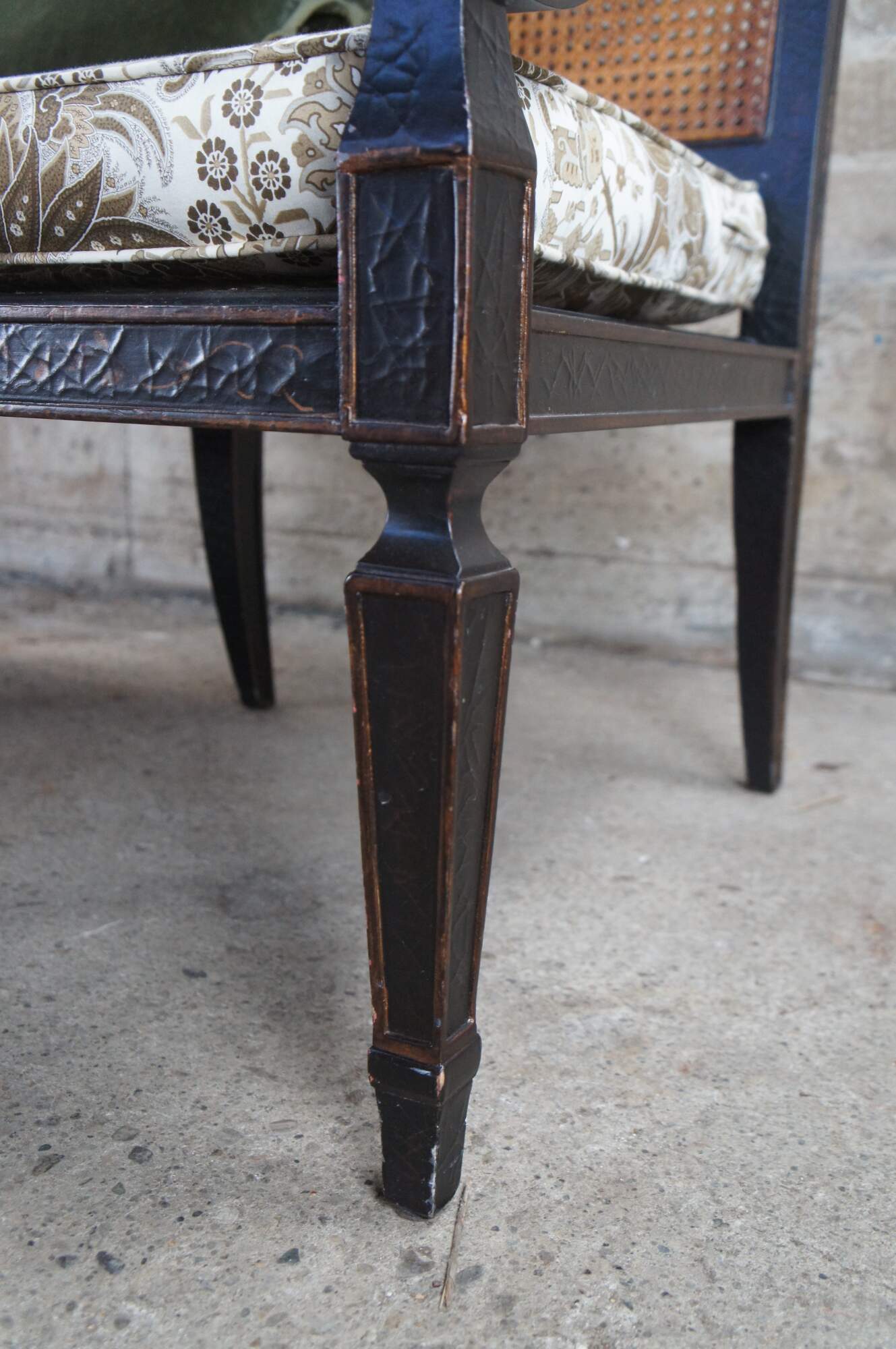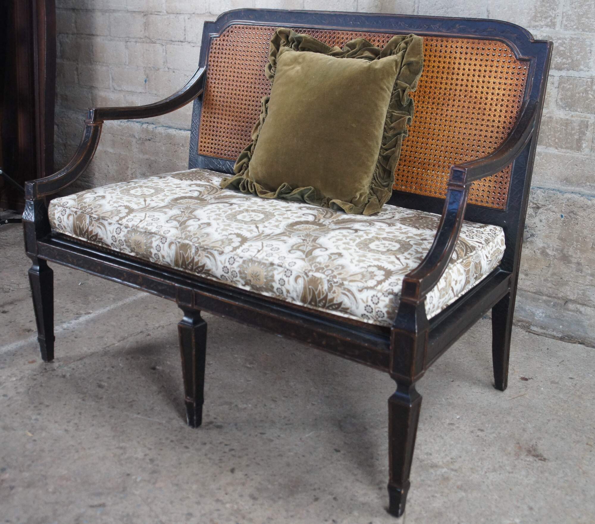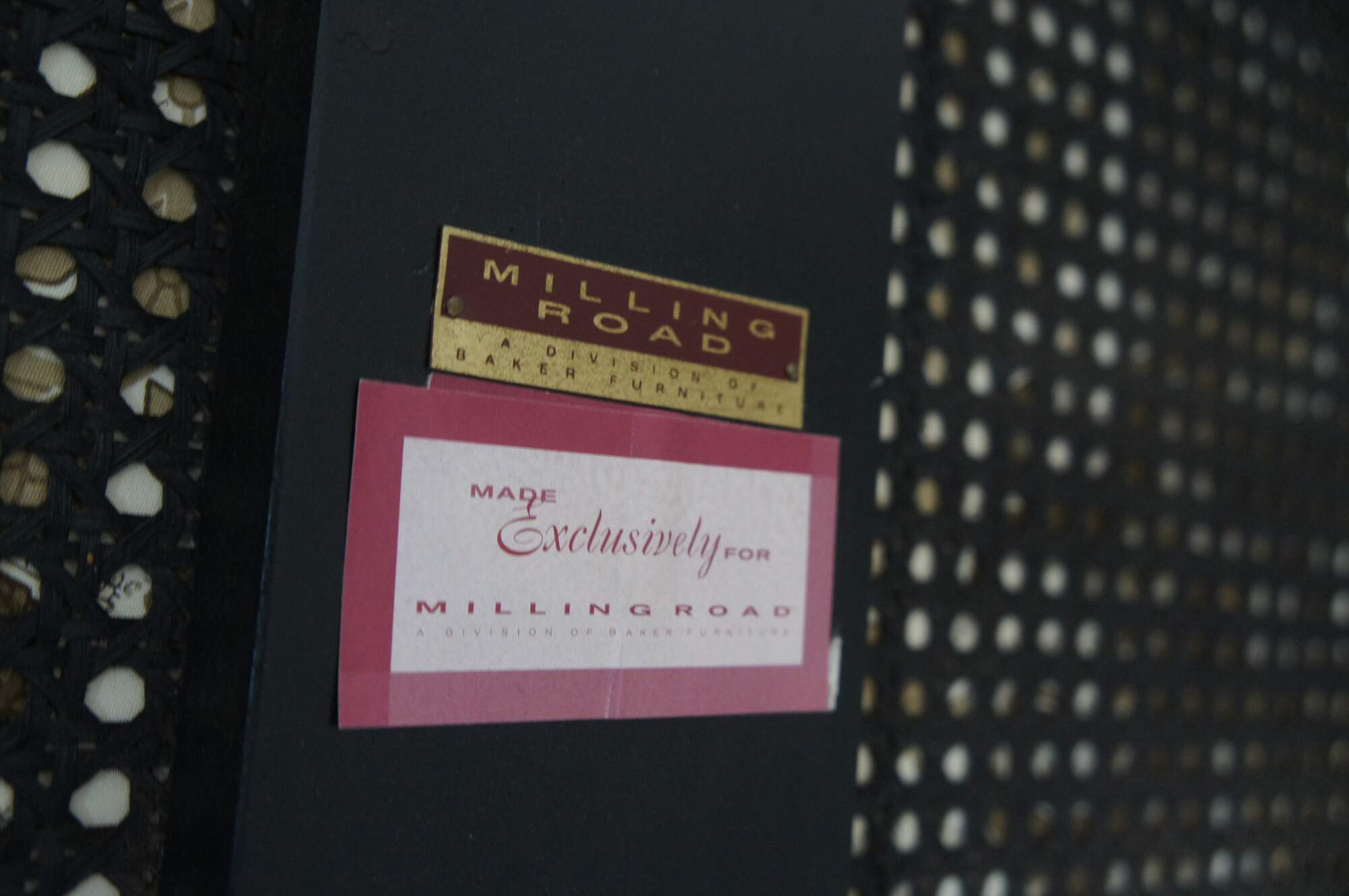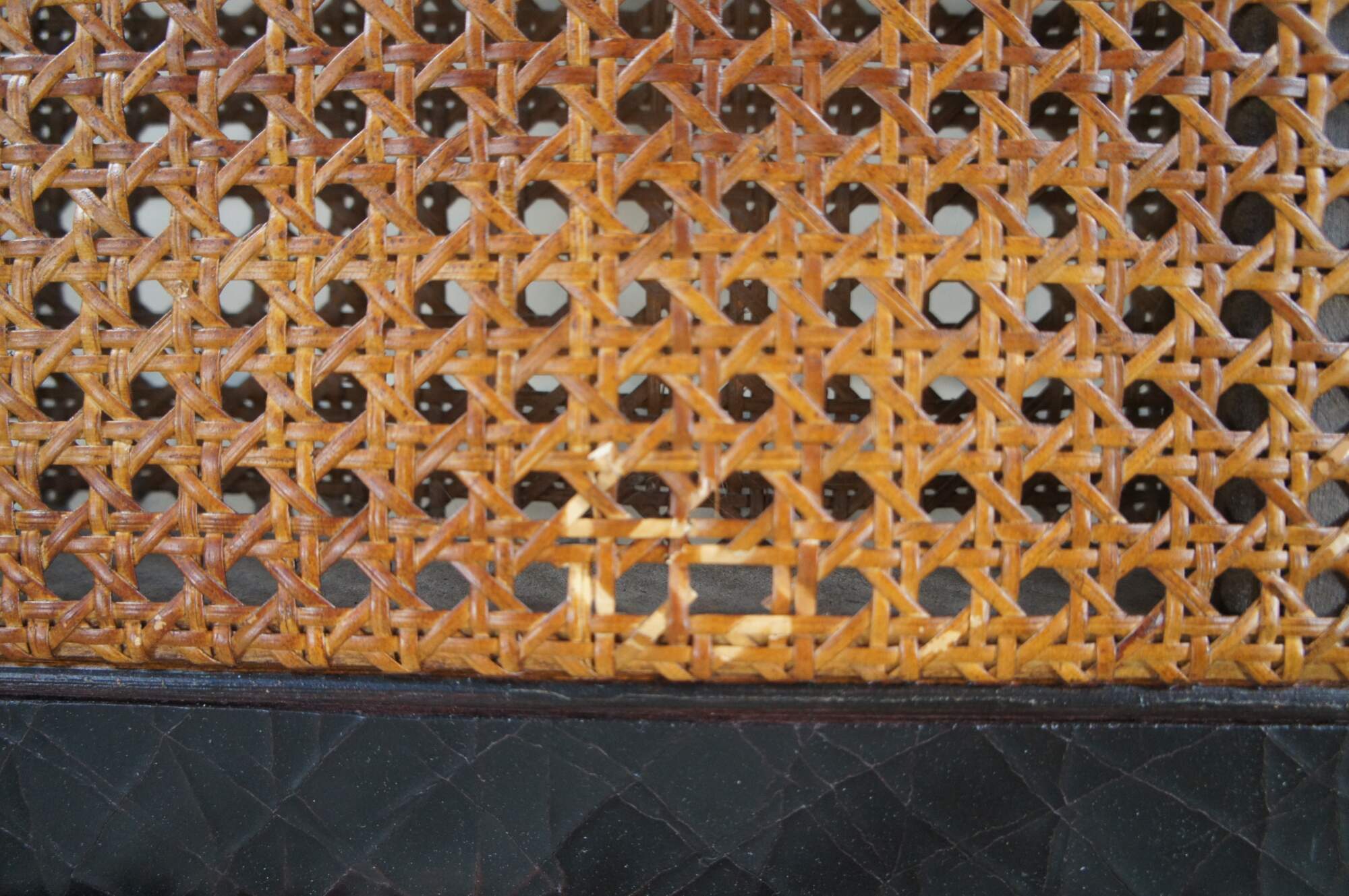 Good Condition with general age related wear. Small puncture to the cane along the middle lowerside of the back.