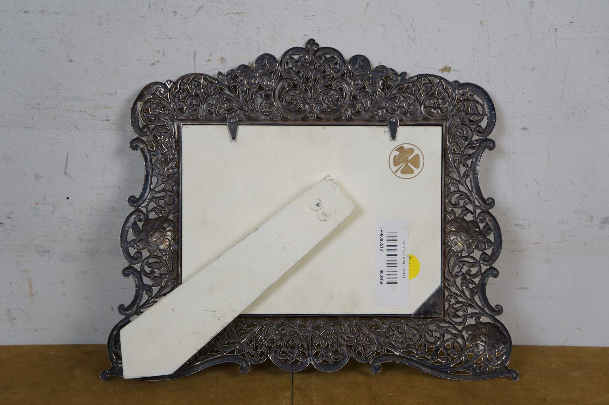 925 sterling silver art nouveau style horizontal rectangular picture / photo frame featuring pierced, swirling floral and foliate filigree. Easel back.