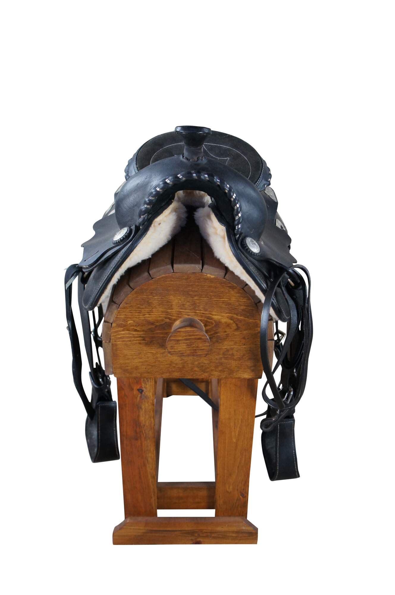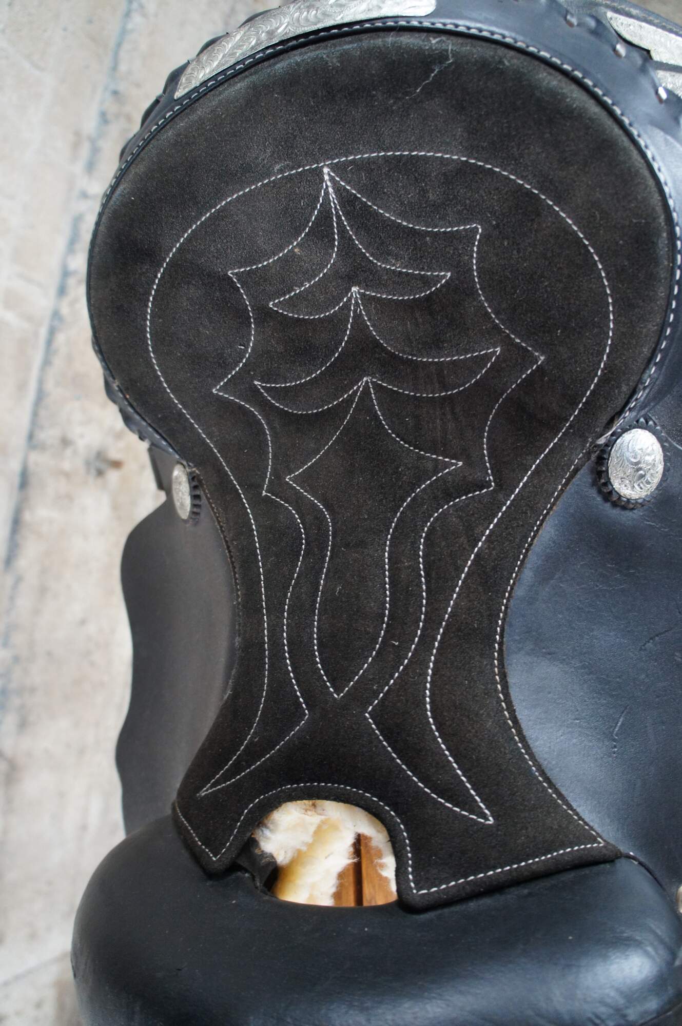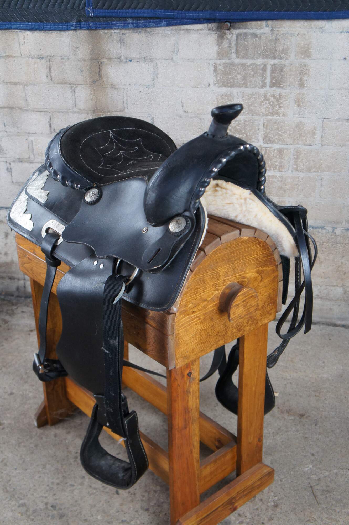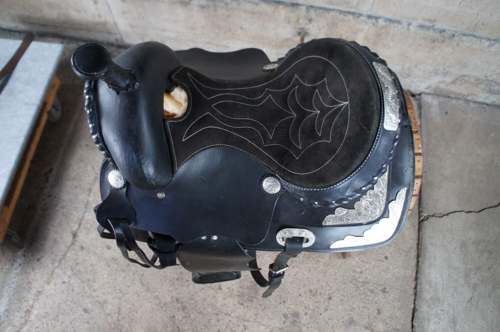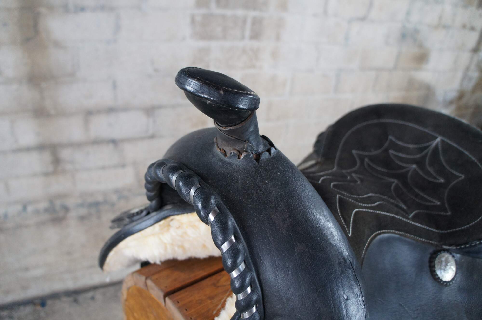 Vintage black and silver tooled leather horse saddle. Originally used at Due Process Horse Stables in NJ.
