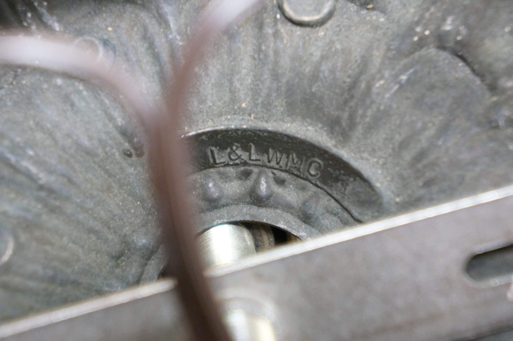 Mid to late 20th century L&L WMC / Loevsky & Loevsky, White Metal Castings Company slag glass Tiffany-style pendant light shade / swag chandelier. Round form with off white and green stained glass panels accented with a fruiting grapevine. Hardwired. Includes chain and ceiling medallion.