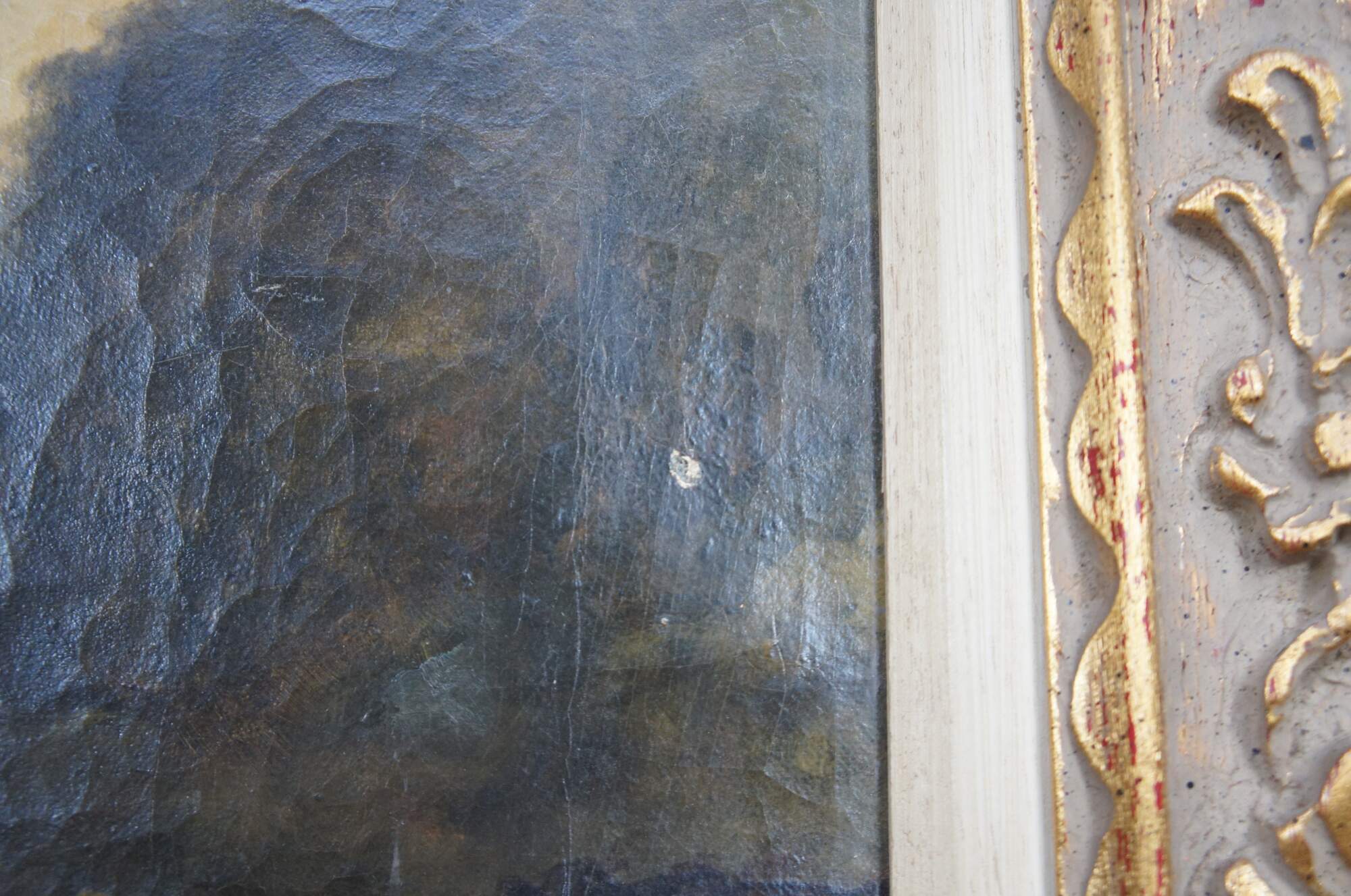 Good Antique Condition; General wear from use and age. The backside of the canvas shows some past repairs.