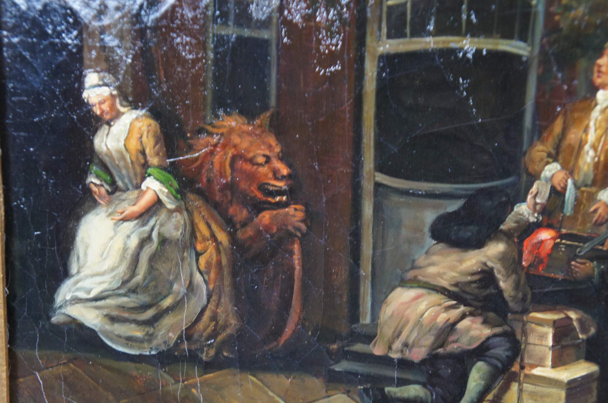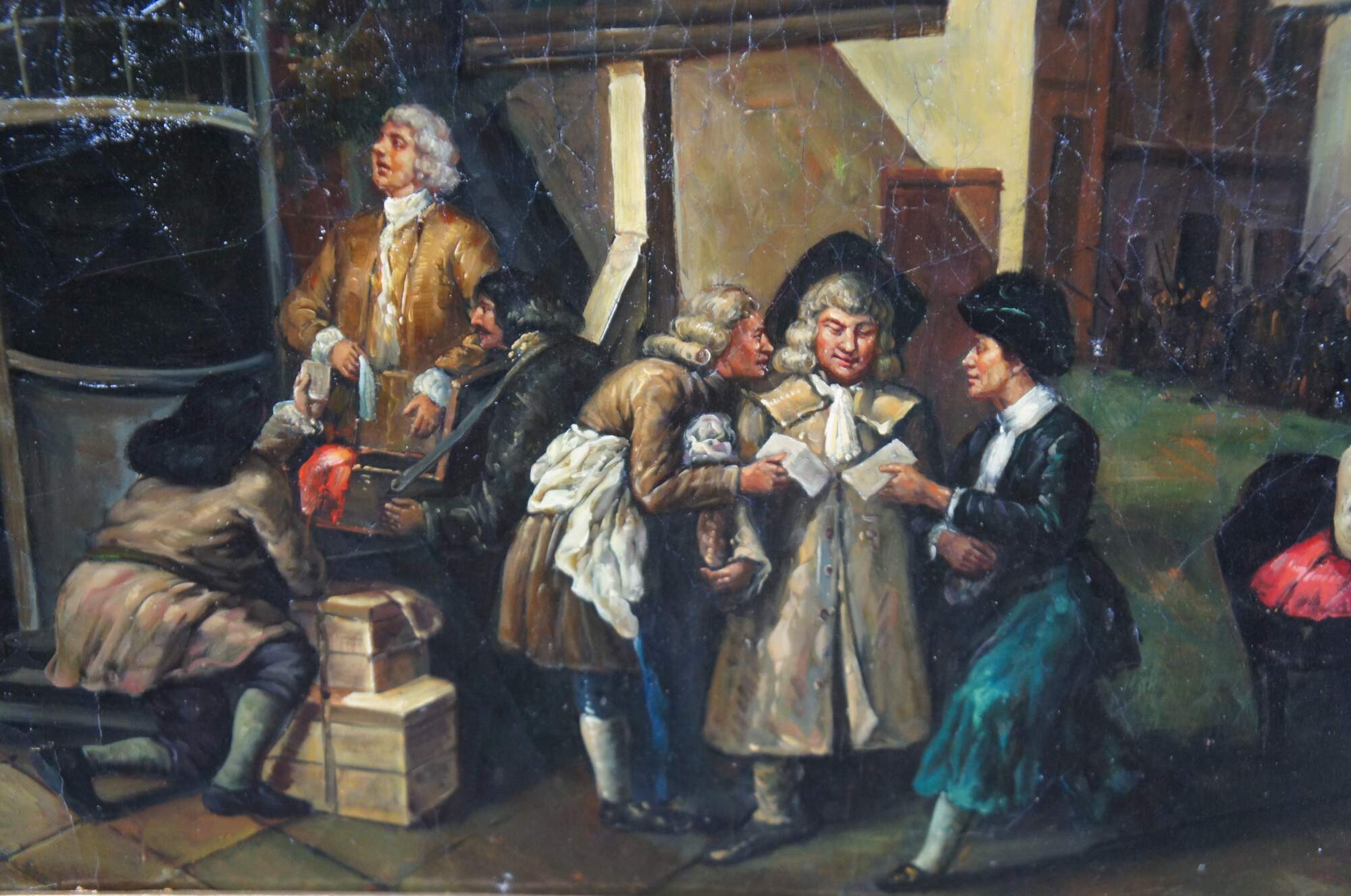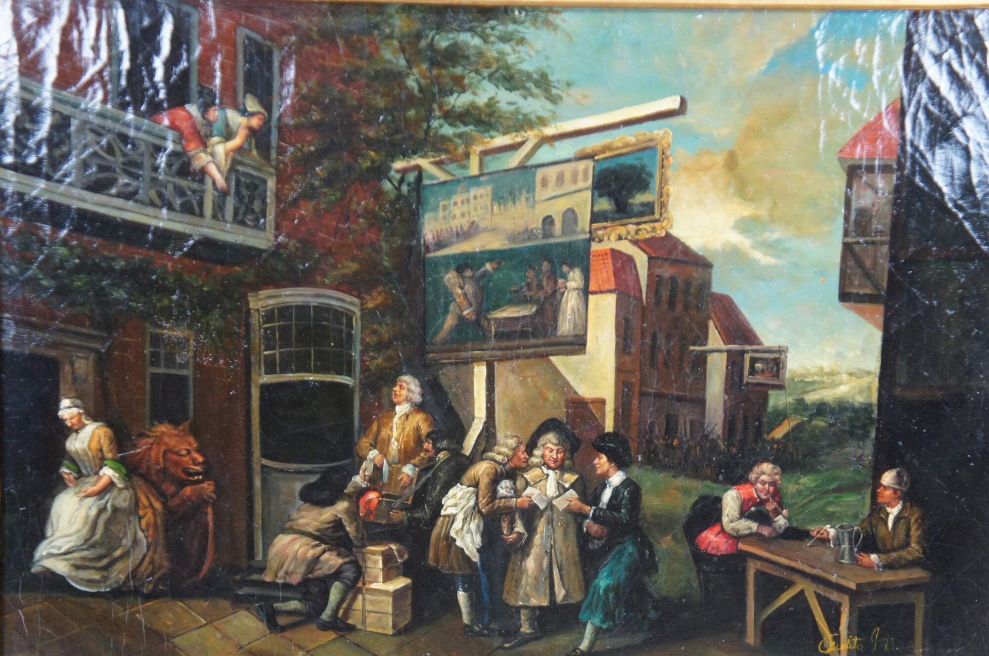 William Hogarth Reproduction painting, aptly titled The Humours of an Election II : Canvassing for Votes, circa last quarter of the 20th century. The original was painted in 1755 and is currently on display at Sir John Soane's Museum, London.