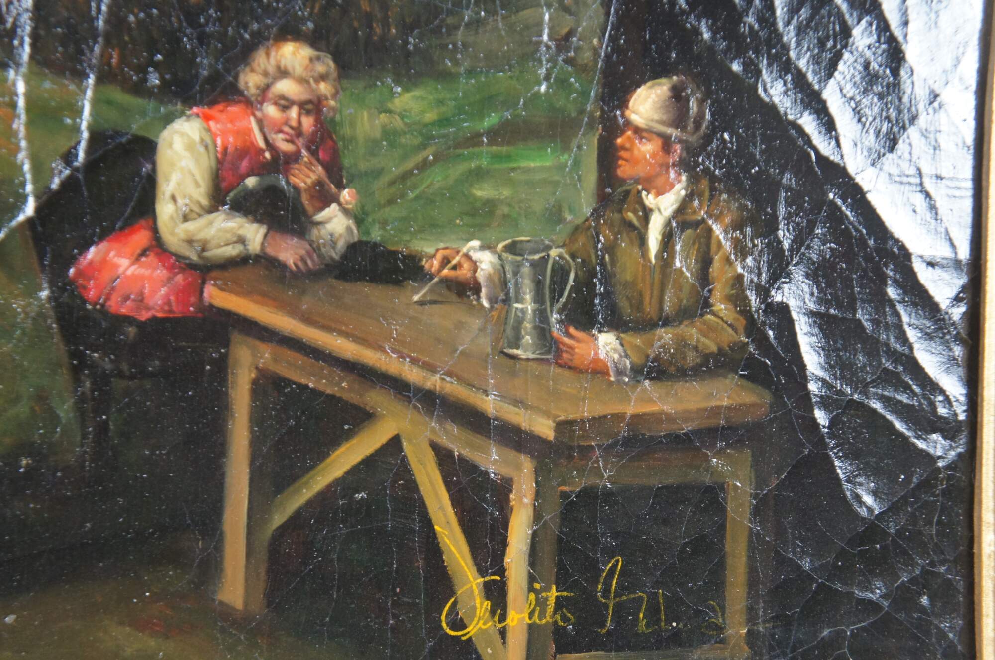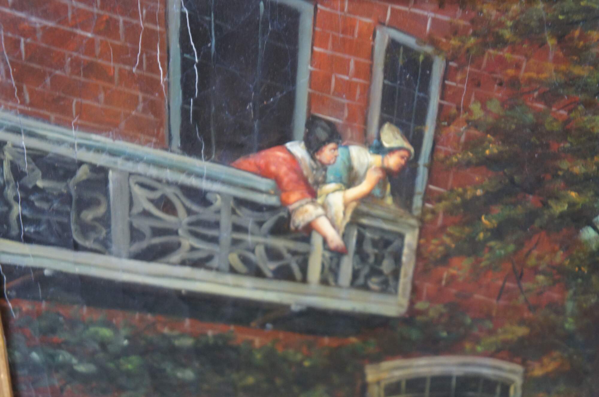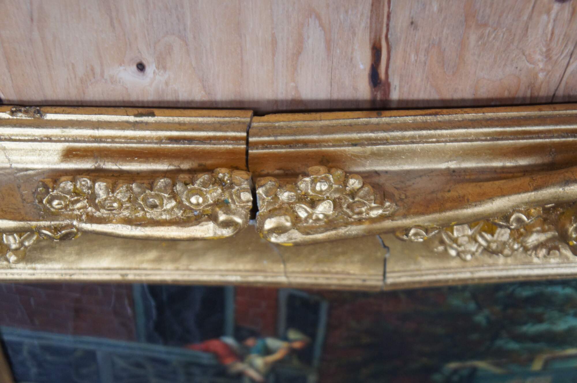 Good Overall; there are a few cracks in the frame towards the top. These do not affect its ability to be hung and displayed.