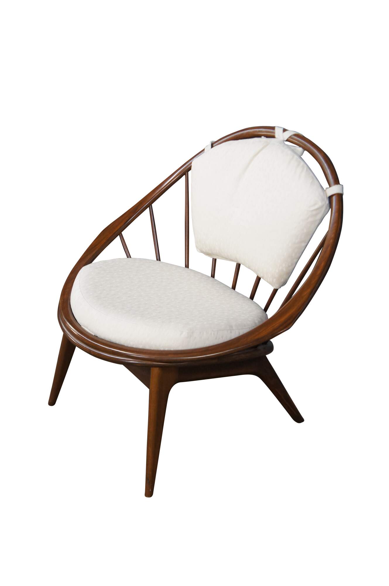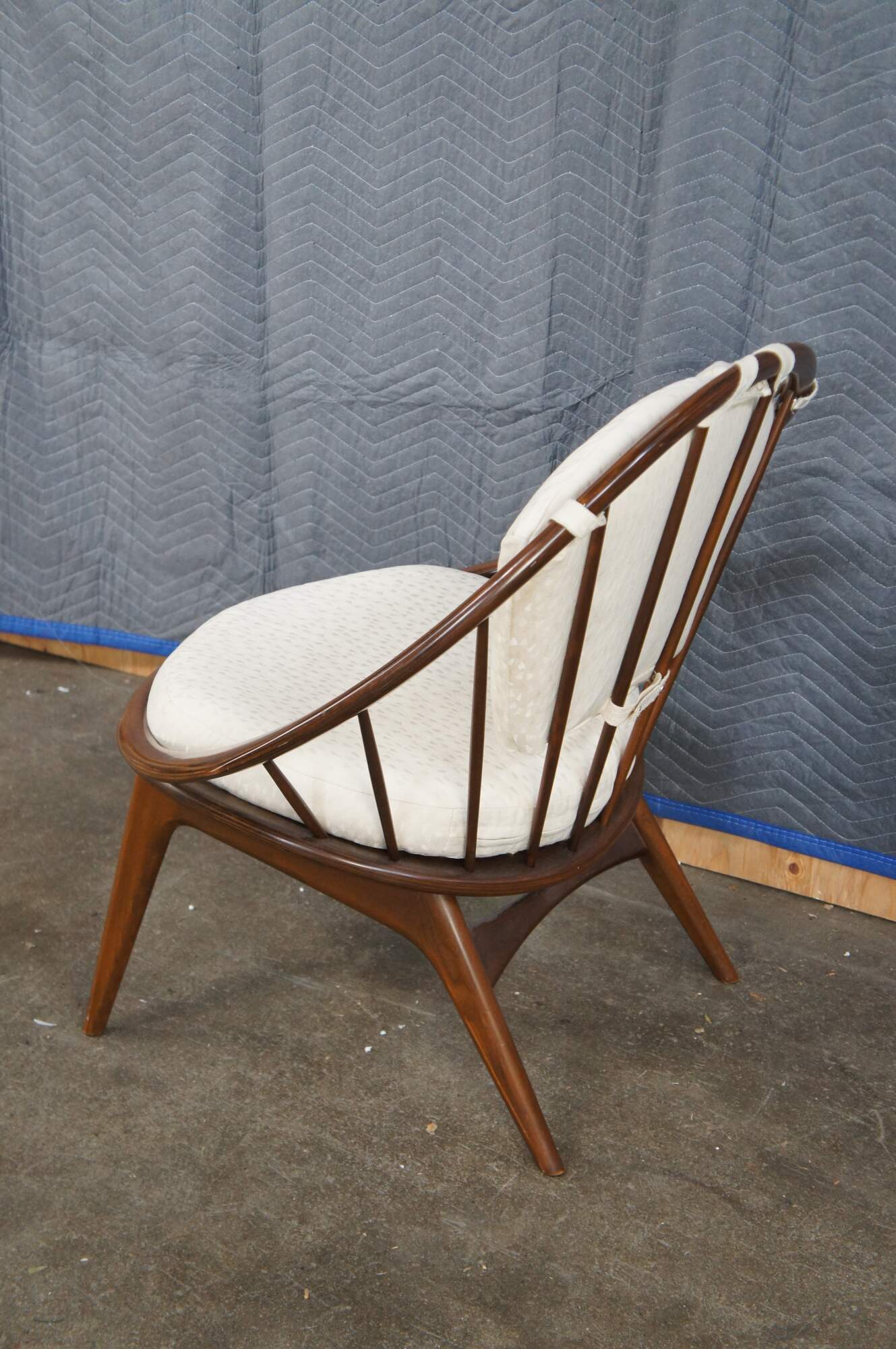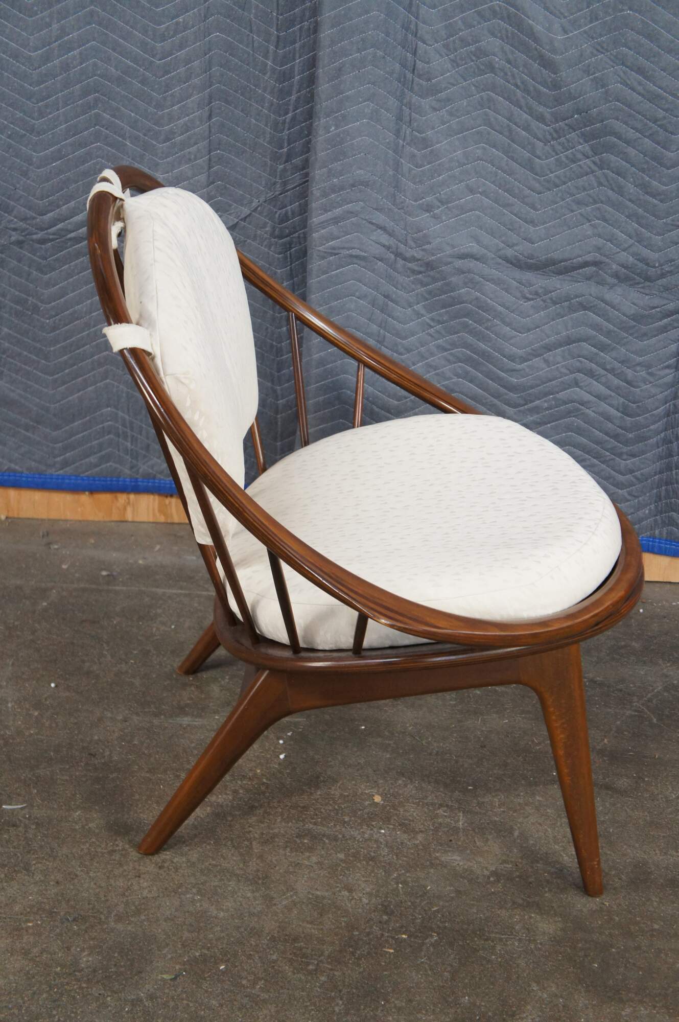 Kofod Larsen for Selig Danish Modern Walnut 'Hoop' Lounge Chair. An iconic design showcasing seamless form with spindle back, elevated rear support, and seat cushion.