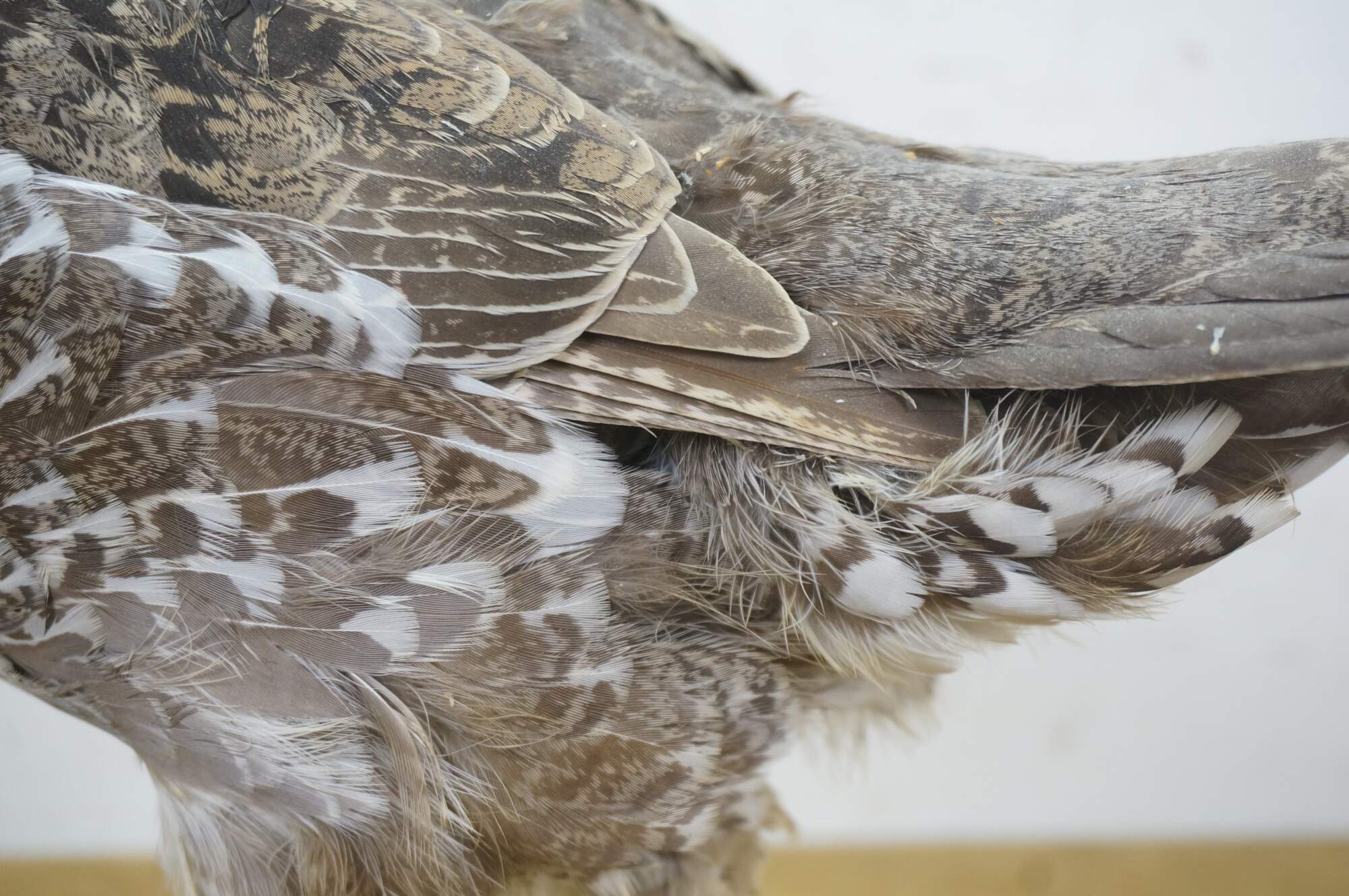 Fair condition, wear and distressing from age, some damage to feathers, embedded dirt / dust.