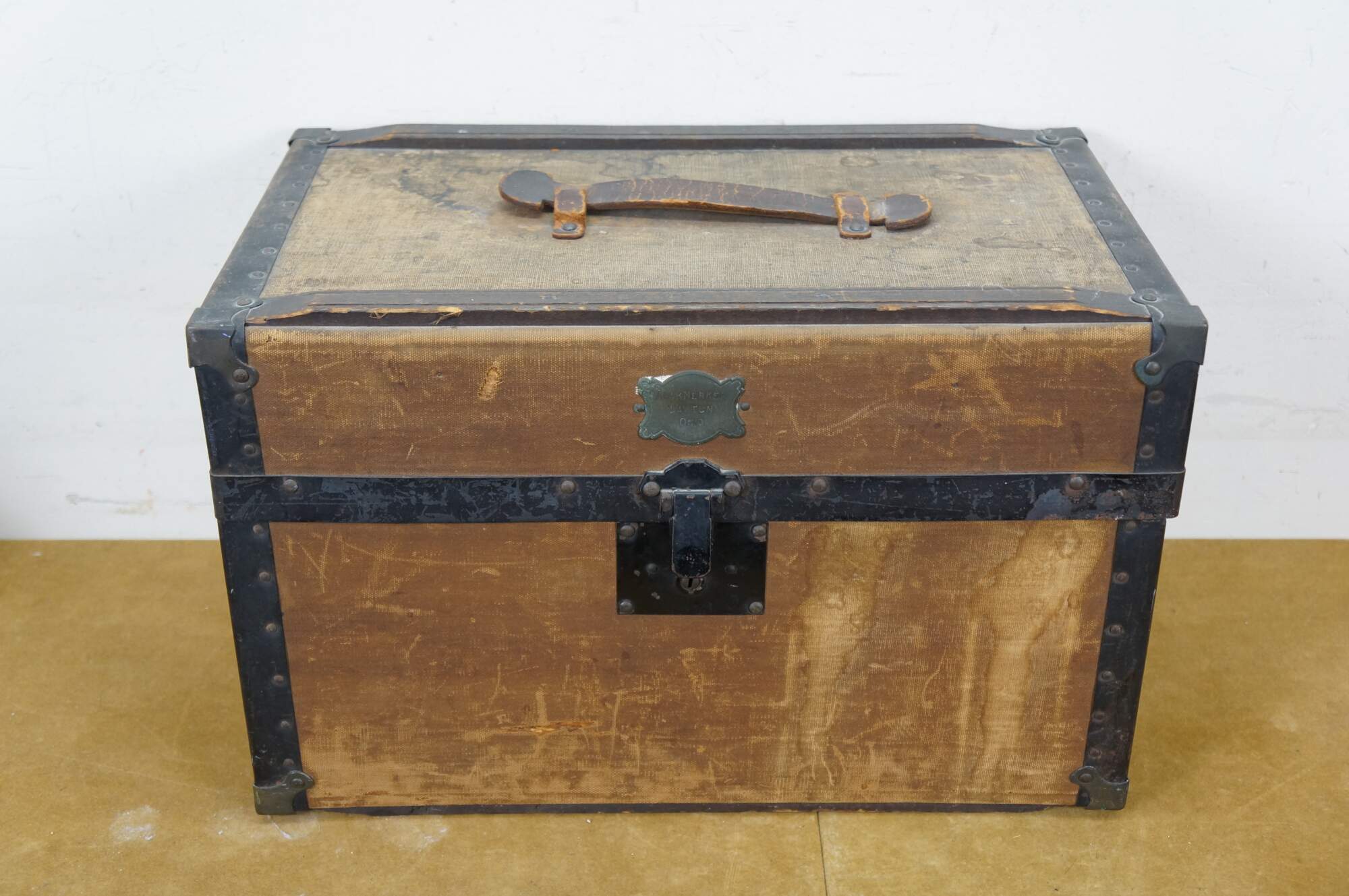 Scuffs/gentle wear/water stains to trunk; gentle wear to hats/accessories; some tarnish to metal; wear to leather