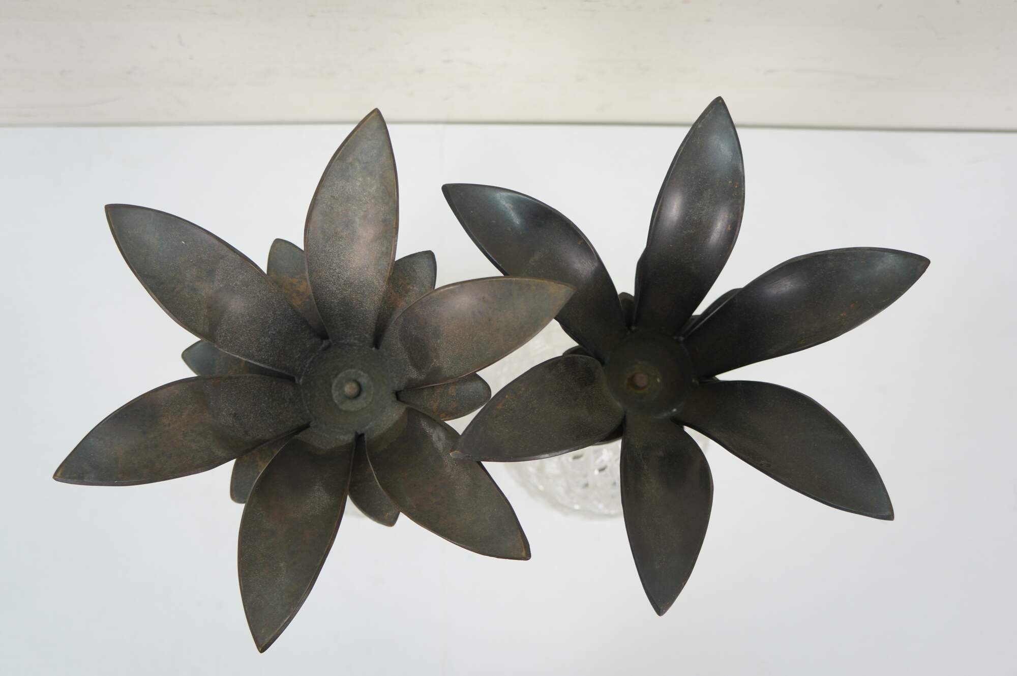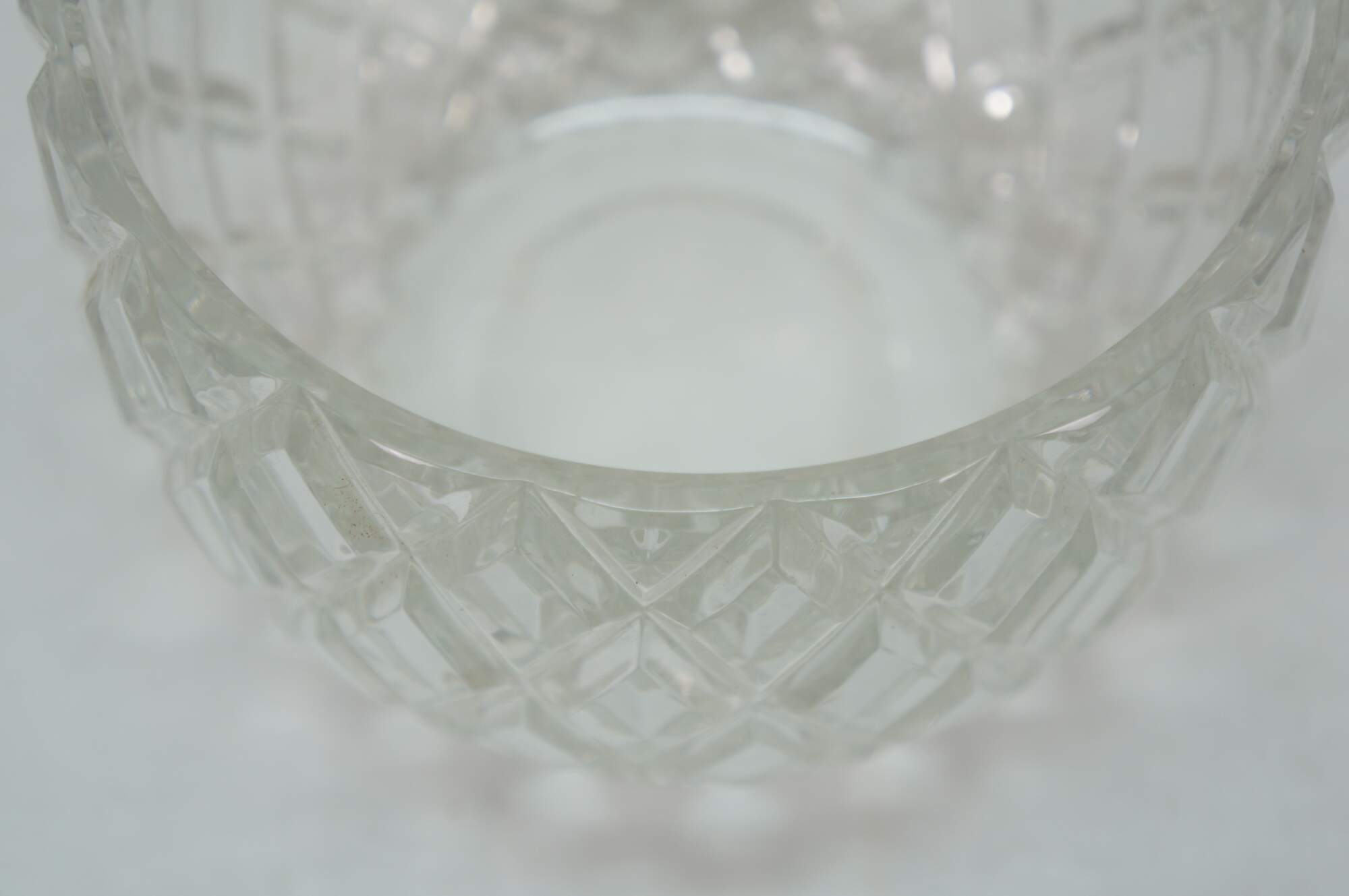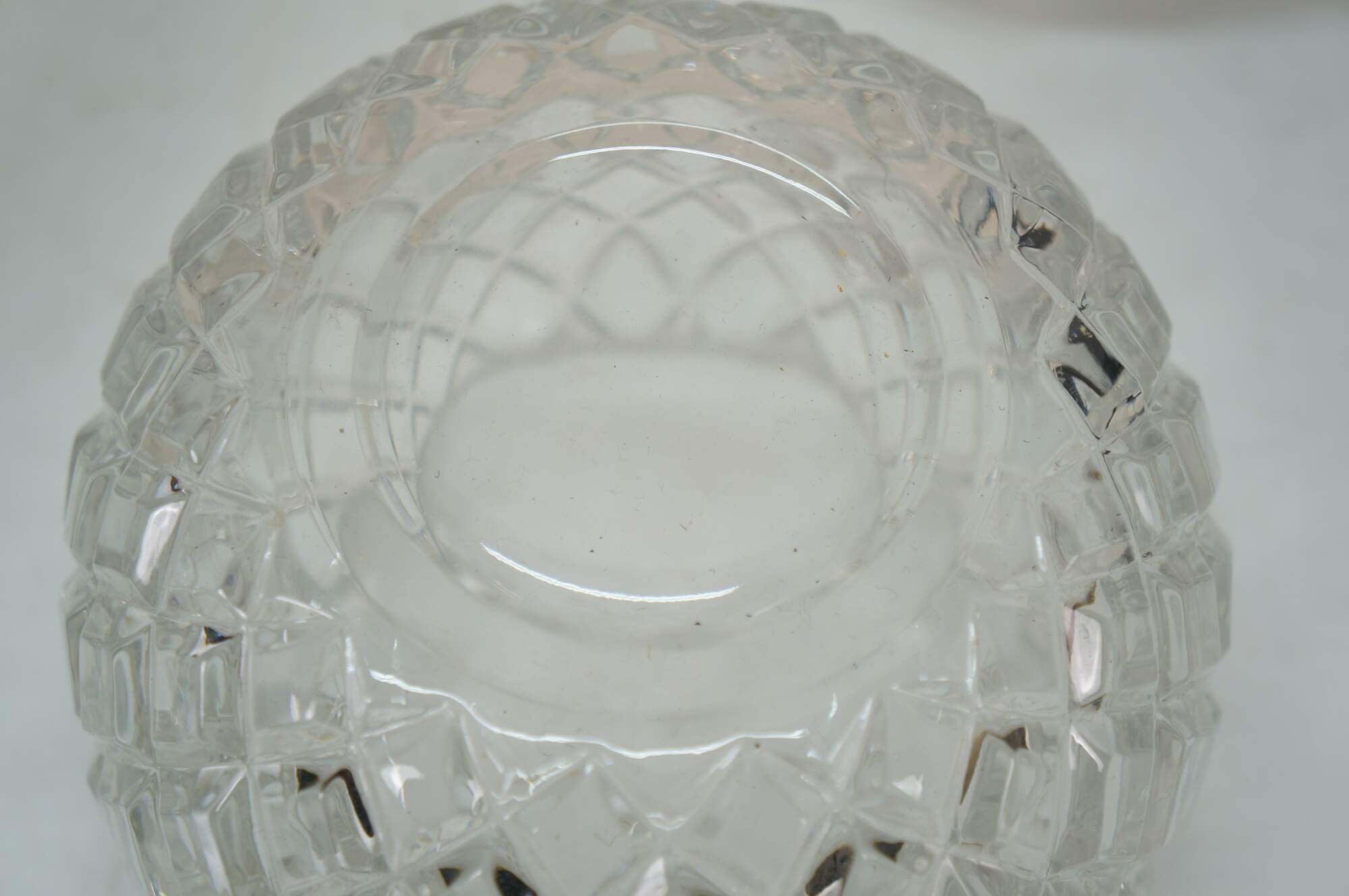 Pair of late 20th century diamond pattern cut crystal lidded jars / containers / mantel urns or compotes in the shape of pineapples with dark bronze leaves. Castilian Imports of Poland.