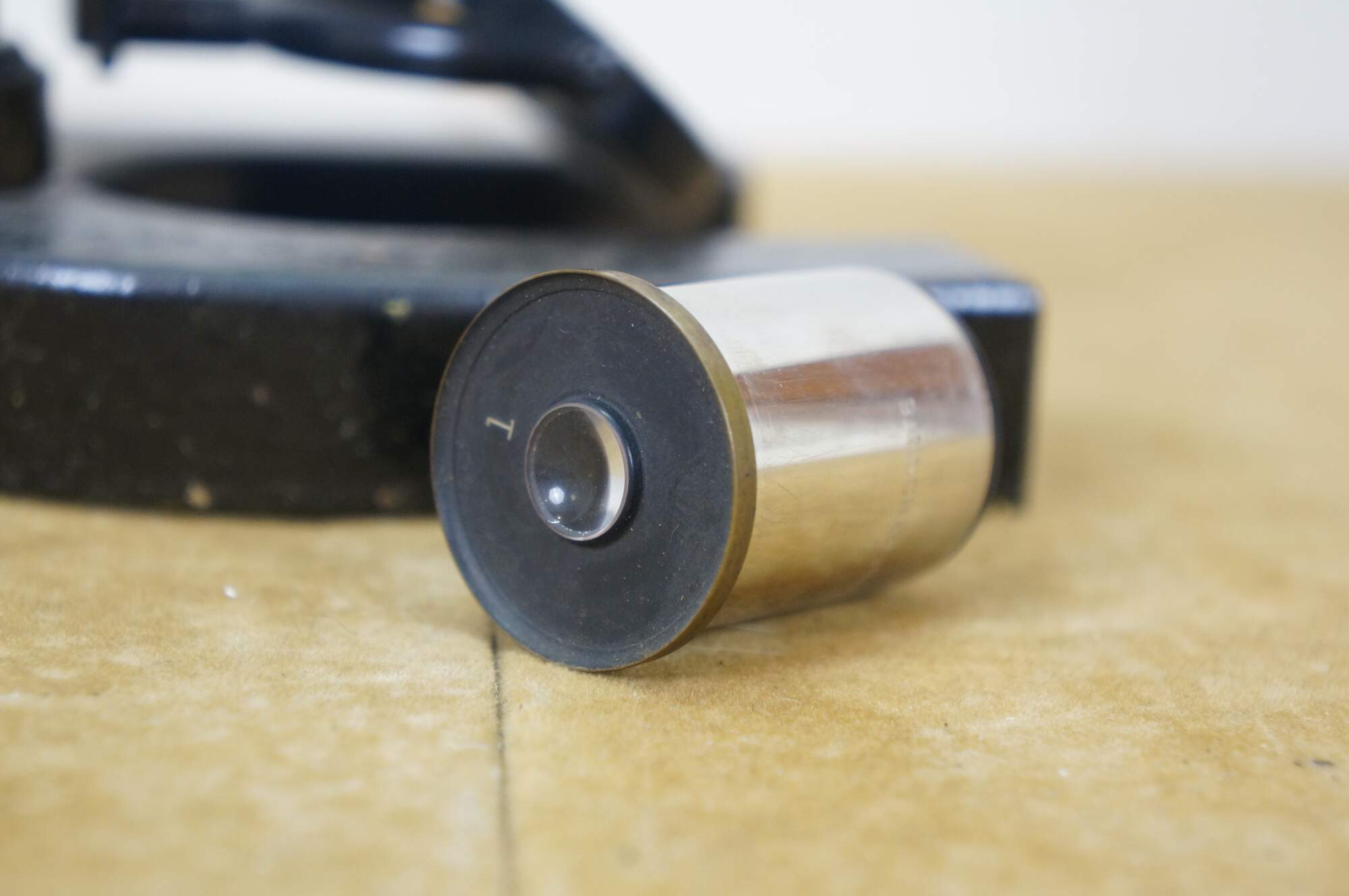 Antique Bausch & Lomb optical microscope from the Levitt Ferguson Co Laboratory Supplies in Baltimore MD. Cased in quartersawn oak with dovetailed joinery. Pat. Circa 1908. B&L 34826. LFS 163 M. Includes case with empty tincture.