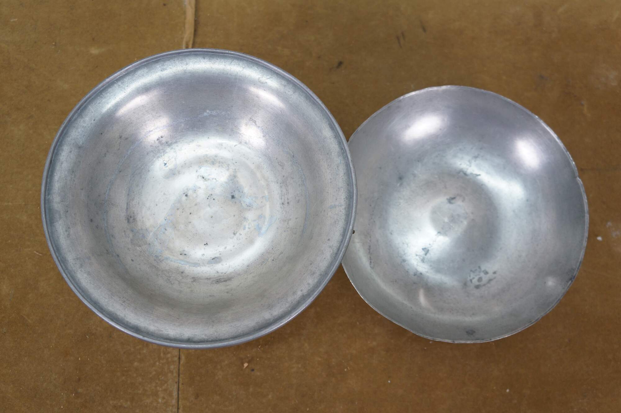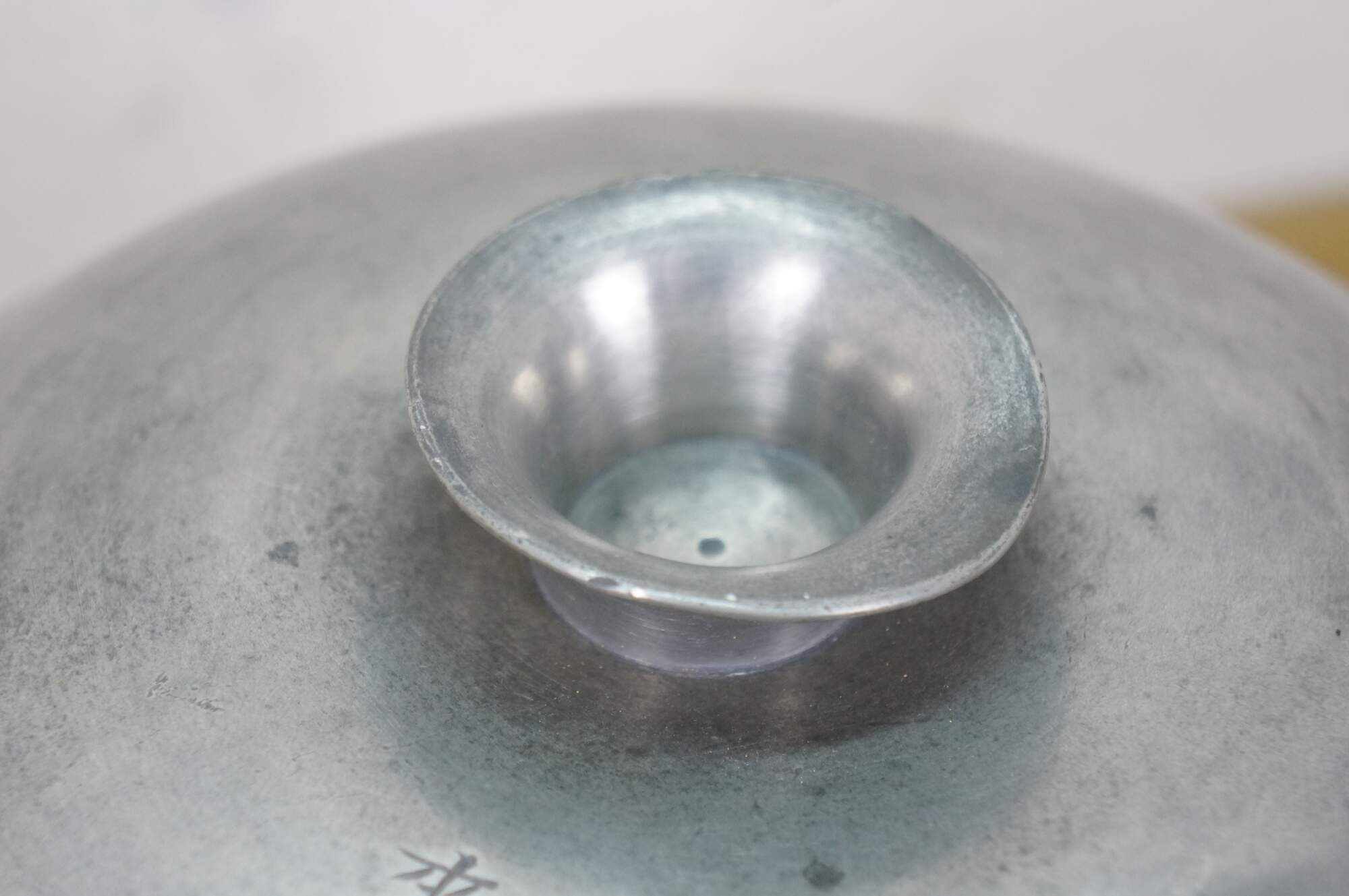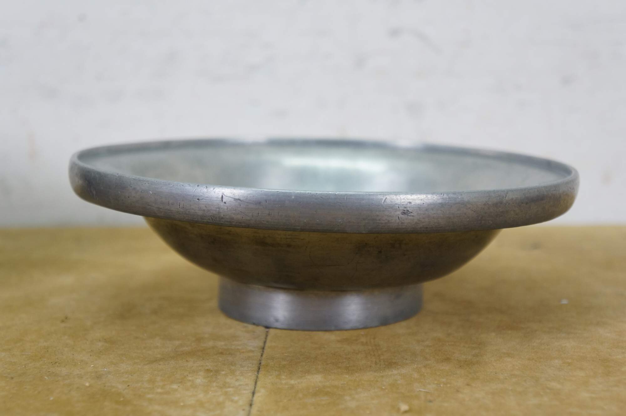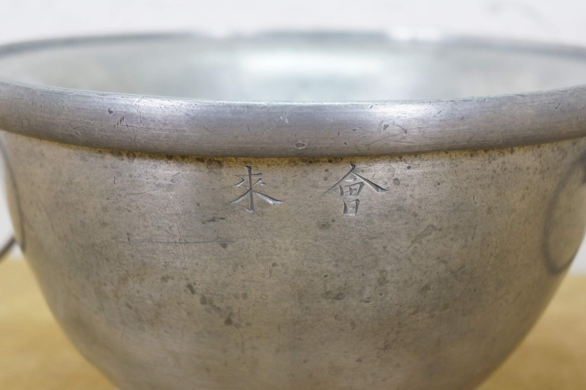 Vintage Chinese hot pot / food warmer consisting of three pieces - Round tapered base for filling with hot coals with two copper bail handles, footed plate / low bowl that sits on the upper rim of the base, and lid.
