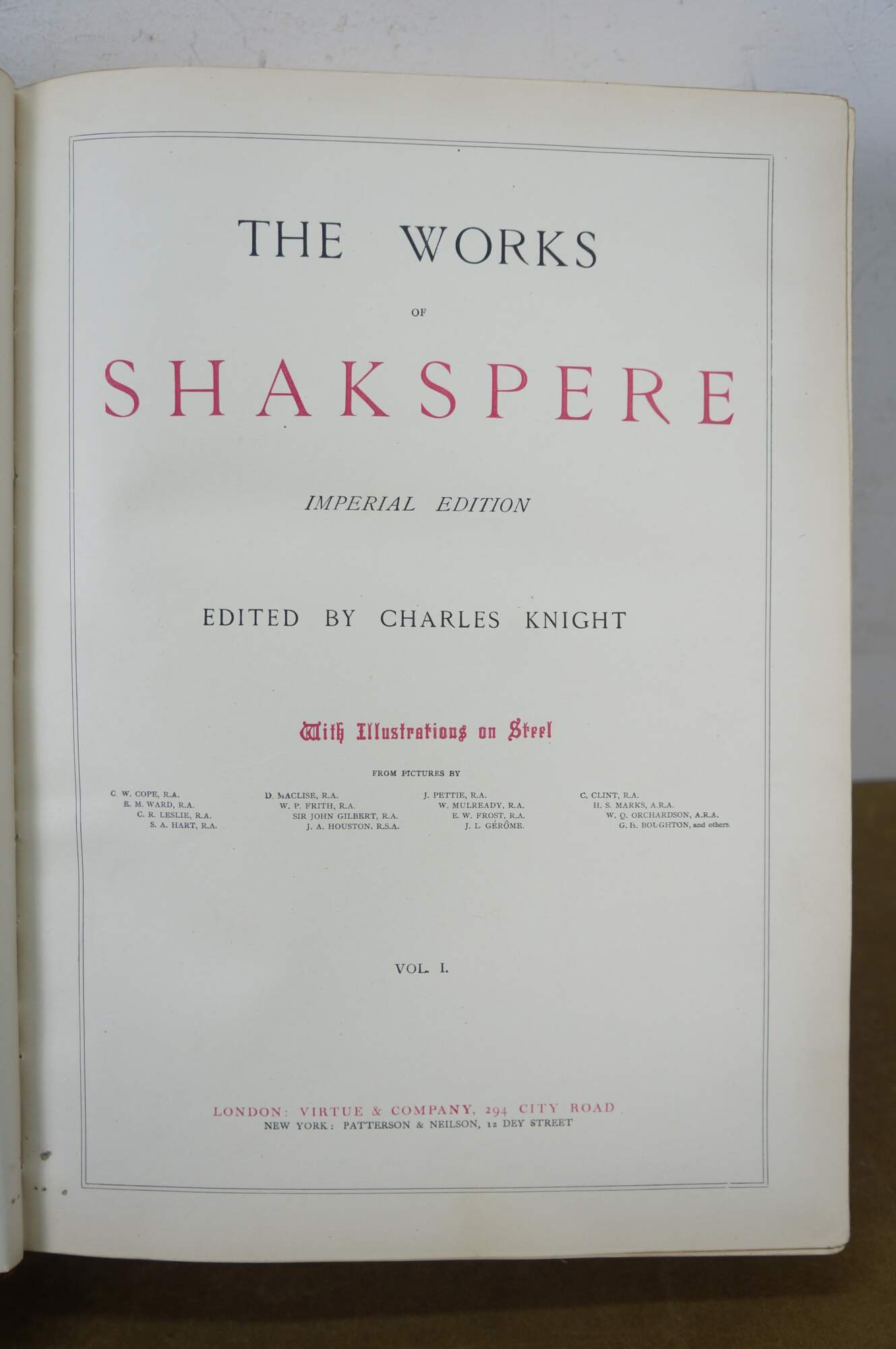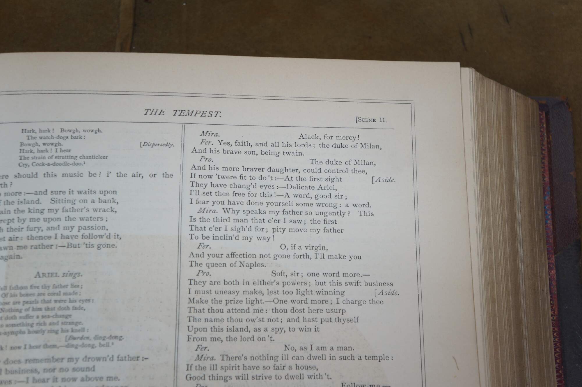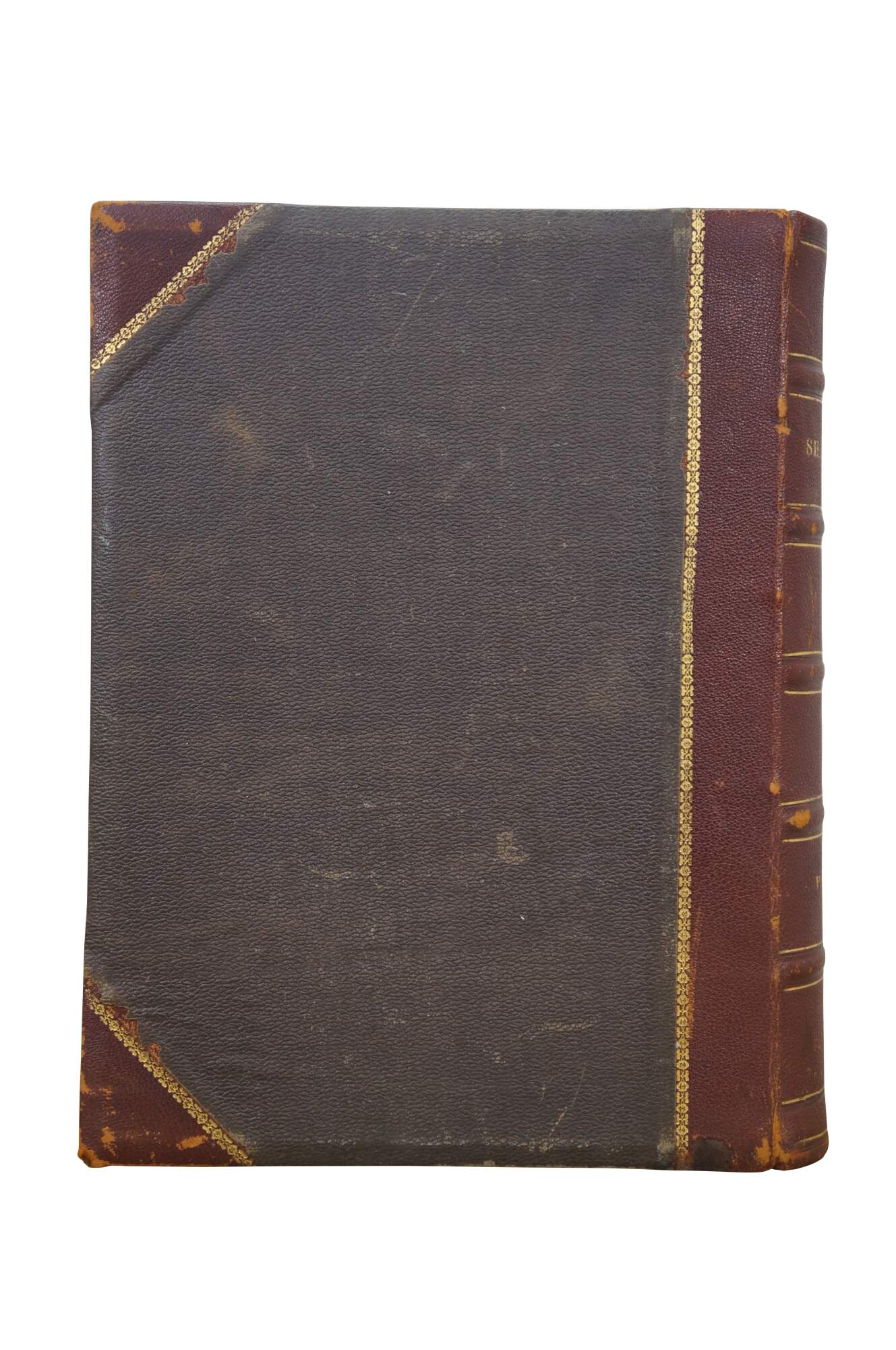 Late 19th century folio book: "The Works of Shakespeare" - Imperial edition - Edited by Charles Knight - With Illustrations on Steel from Pictures by assorted artists - Volume I - Published by Virtue & Company, London, New York. Two tone leather hard back / hard cover. Marbled end papers. Gilt page edges.