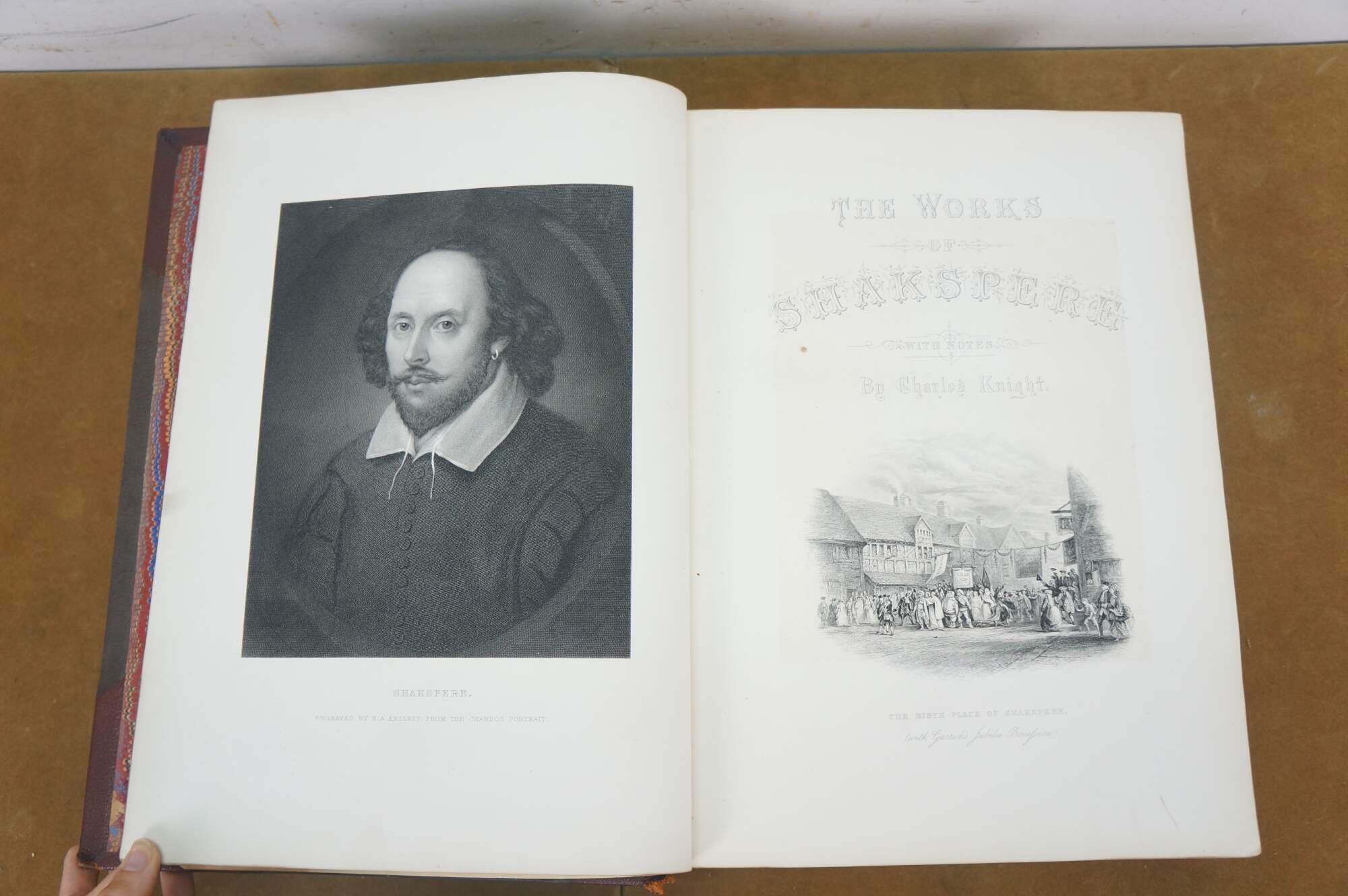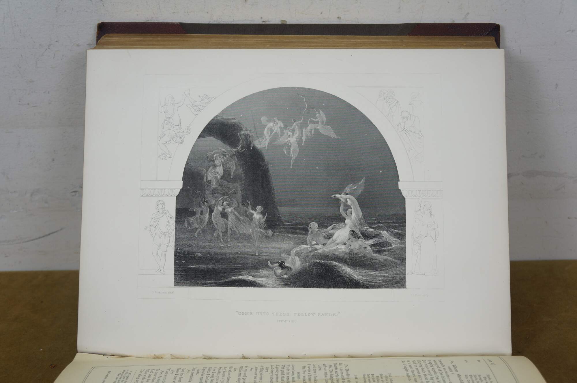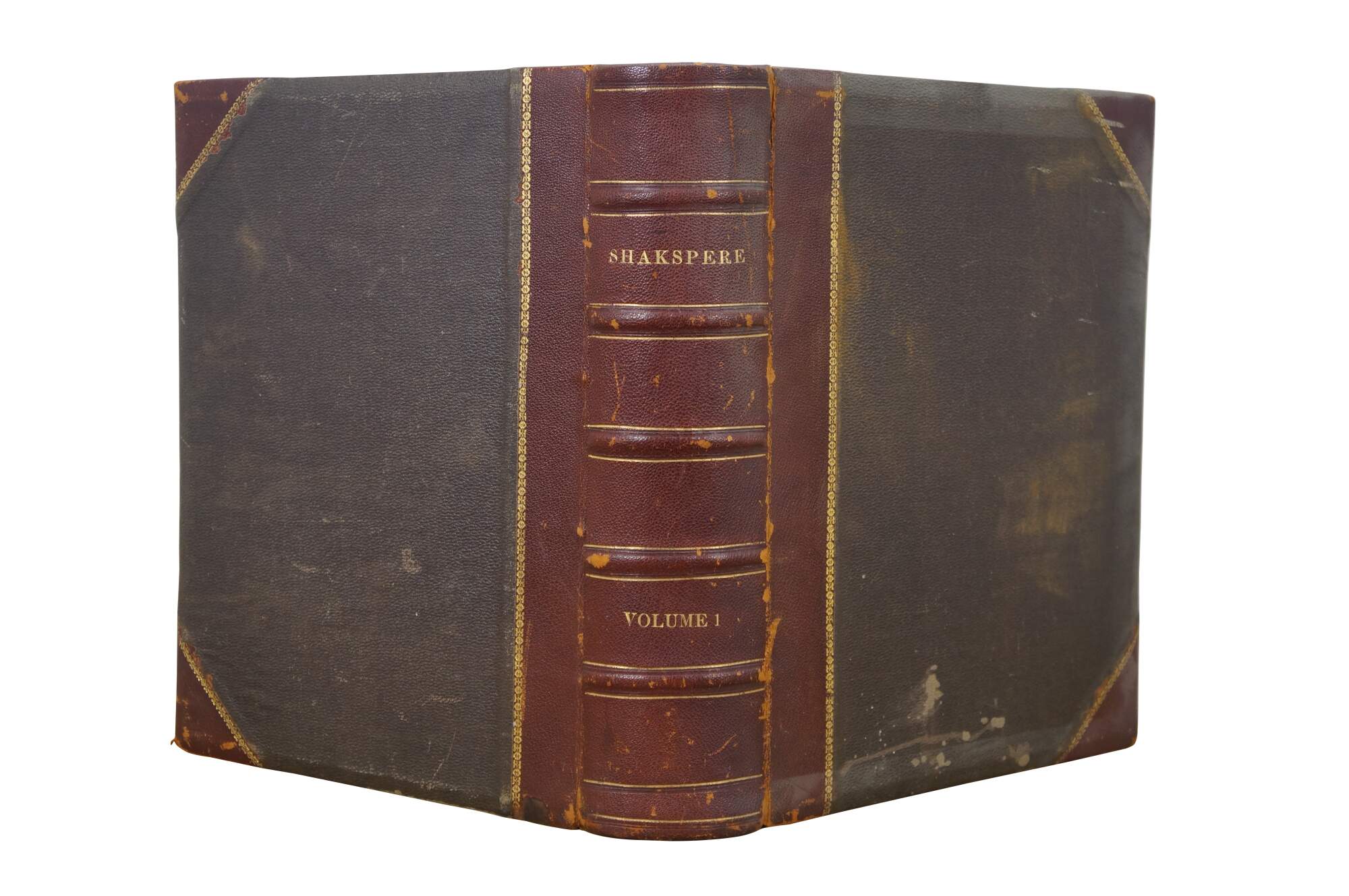 Late 19th century folio book: "The Works of Shakespeare" - Imperial edition - Edited by Charles Knight - With Illustrations on Steel from Pictures by assorted artists - Volume I - Published by Virtue & Company, London, New York. Two tone leather hard back / hard cover. Marbled end papers. Gilt page edges.
