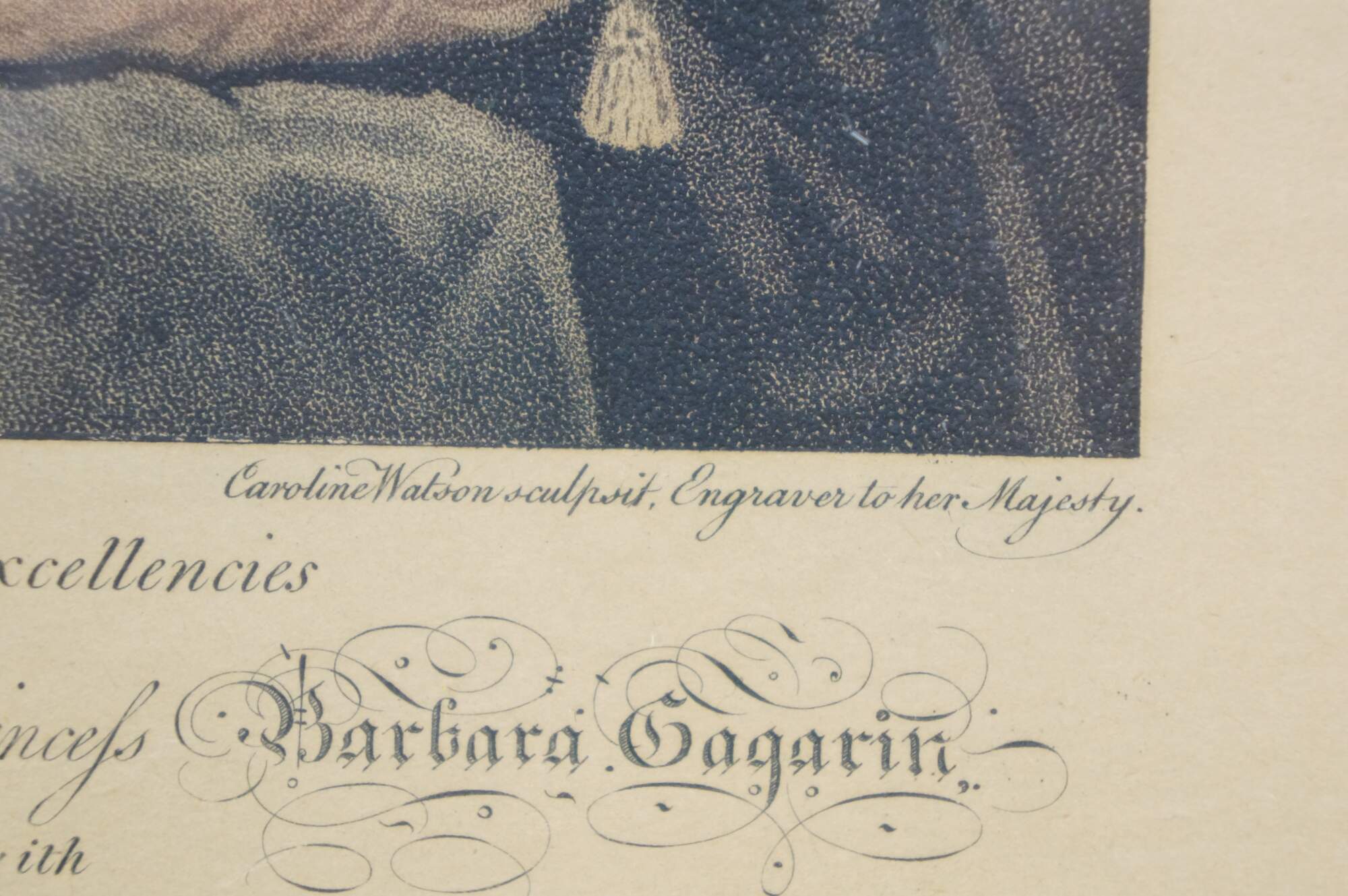Watson, Caroline - London (United Kingdom), ca 1760 - Hertfordshire (United Kingdom), 1814. She was a English stipple engraver in the style of pencil, and the daughter of the engraver James Watson. She published some of her own works. In 1785, she was appointed engraver to Her Majesty Queen Charlotte.