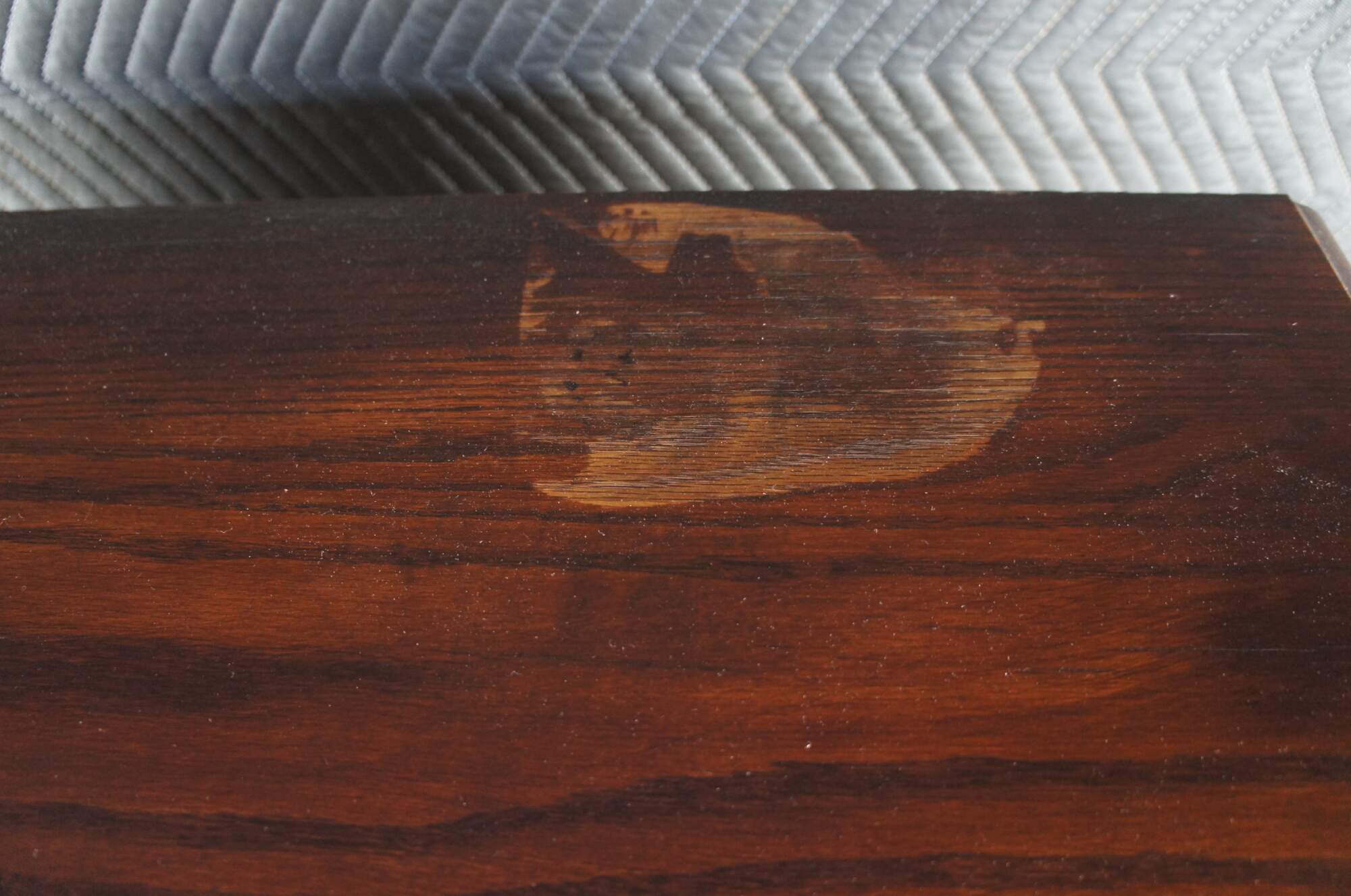 Good Condition; Gentle wear from use and age. Some finish loss to the back right side of the top surface.