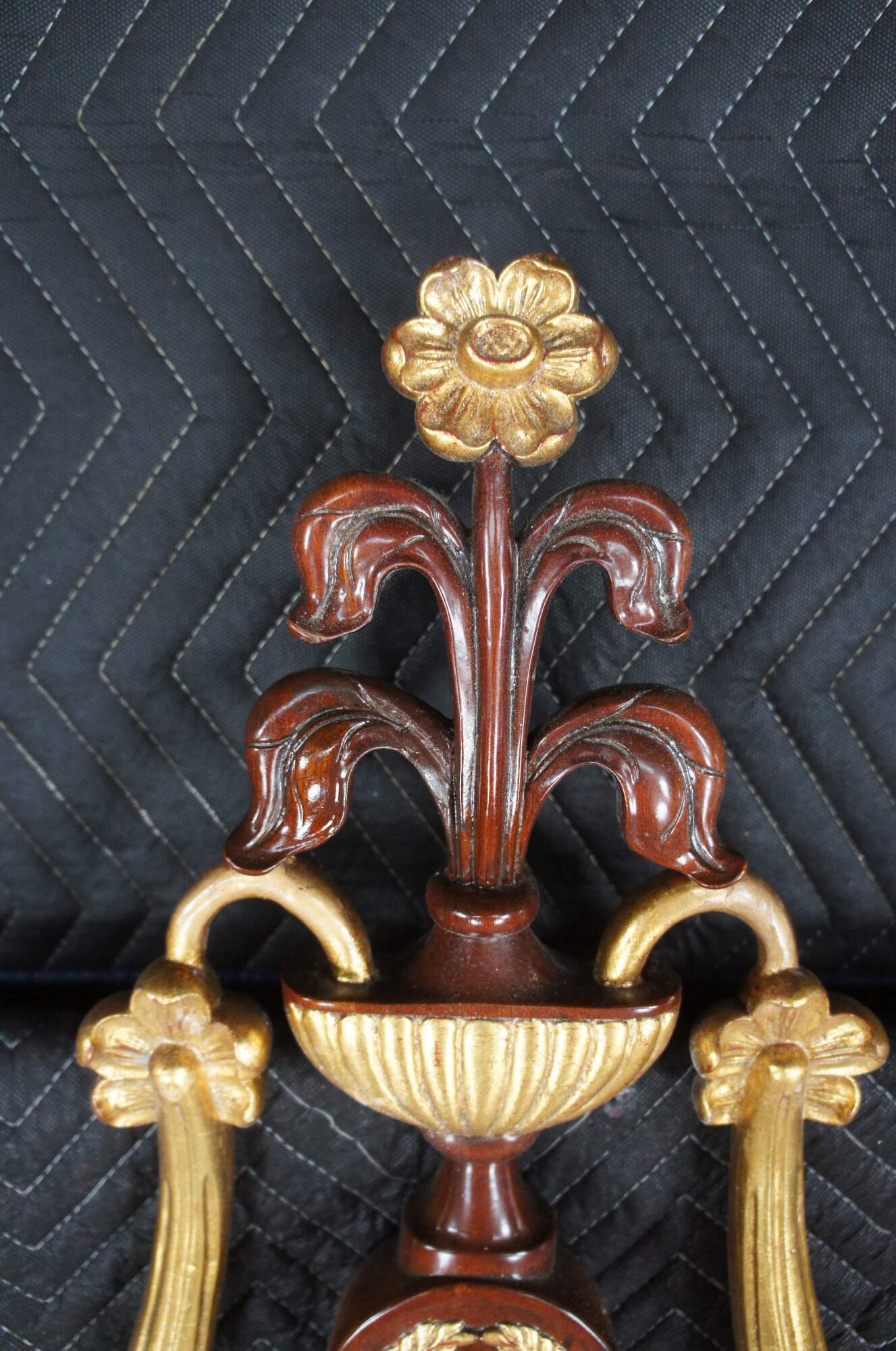 1990s Maitland-Smith Adam Style Pier Wall Mirror. Made from carved Mahogany with a parcel gilt frame. Features an oval beveled glass center surrounded by neoclassical swags. The mirror crown showcases a grecian urn with flower over wreath medallion. A timeless and beautiful design that will draw attention in any space.
