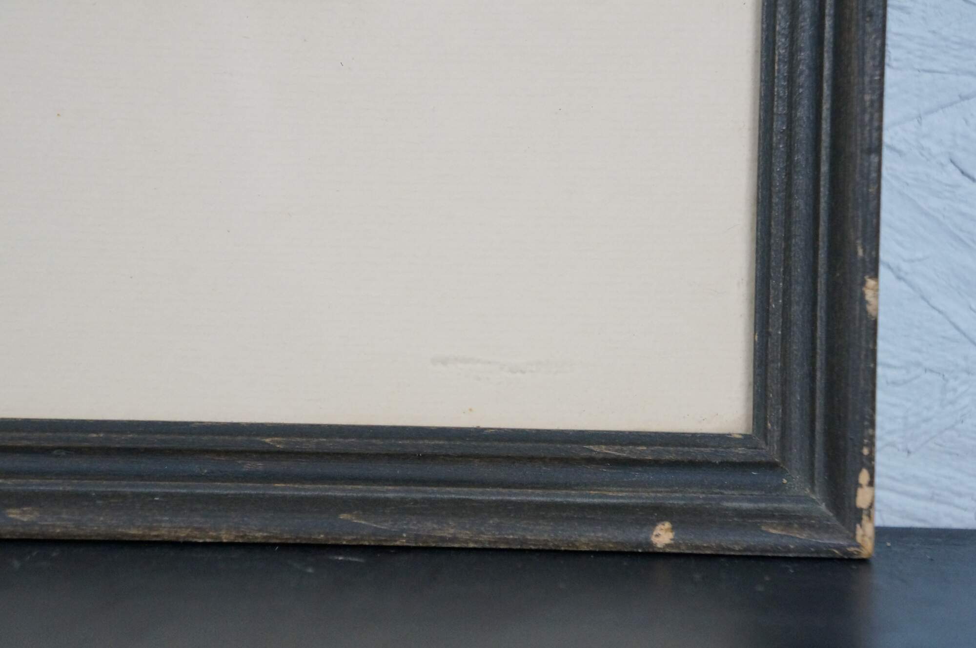 Wear and distressing from age and use, some scuffing and finish loss to frame, foxing, water stain.
