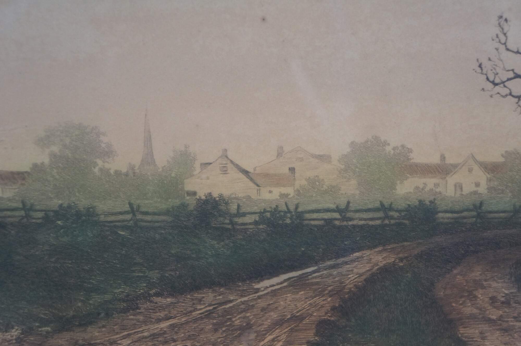 Wear and distressing from age, foxing / discoloration, scuffing to frame.
