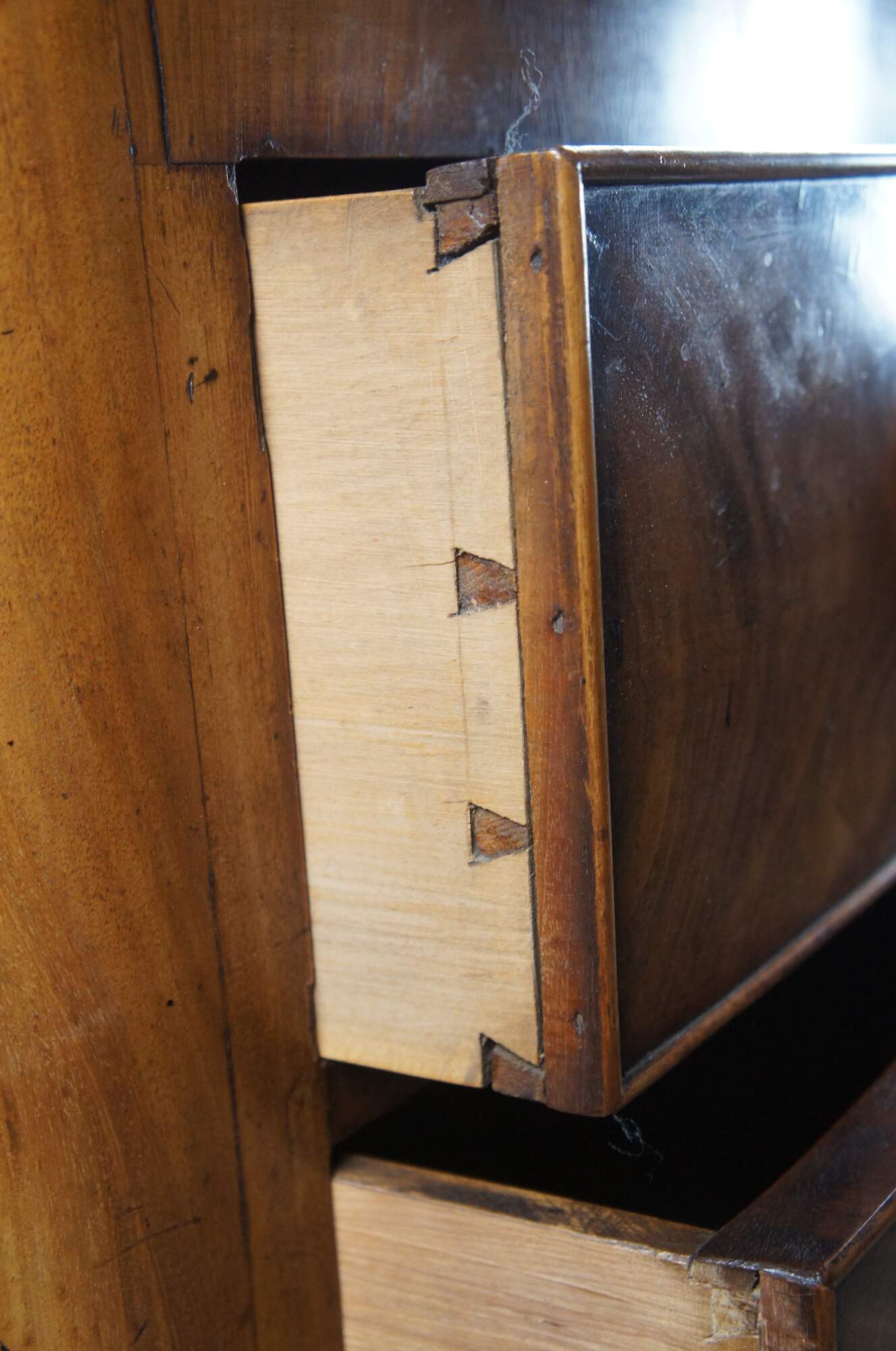 Good Condition; general wear from use and age. Some edge wear and small spots with missing veneer. Marking / Distressing