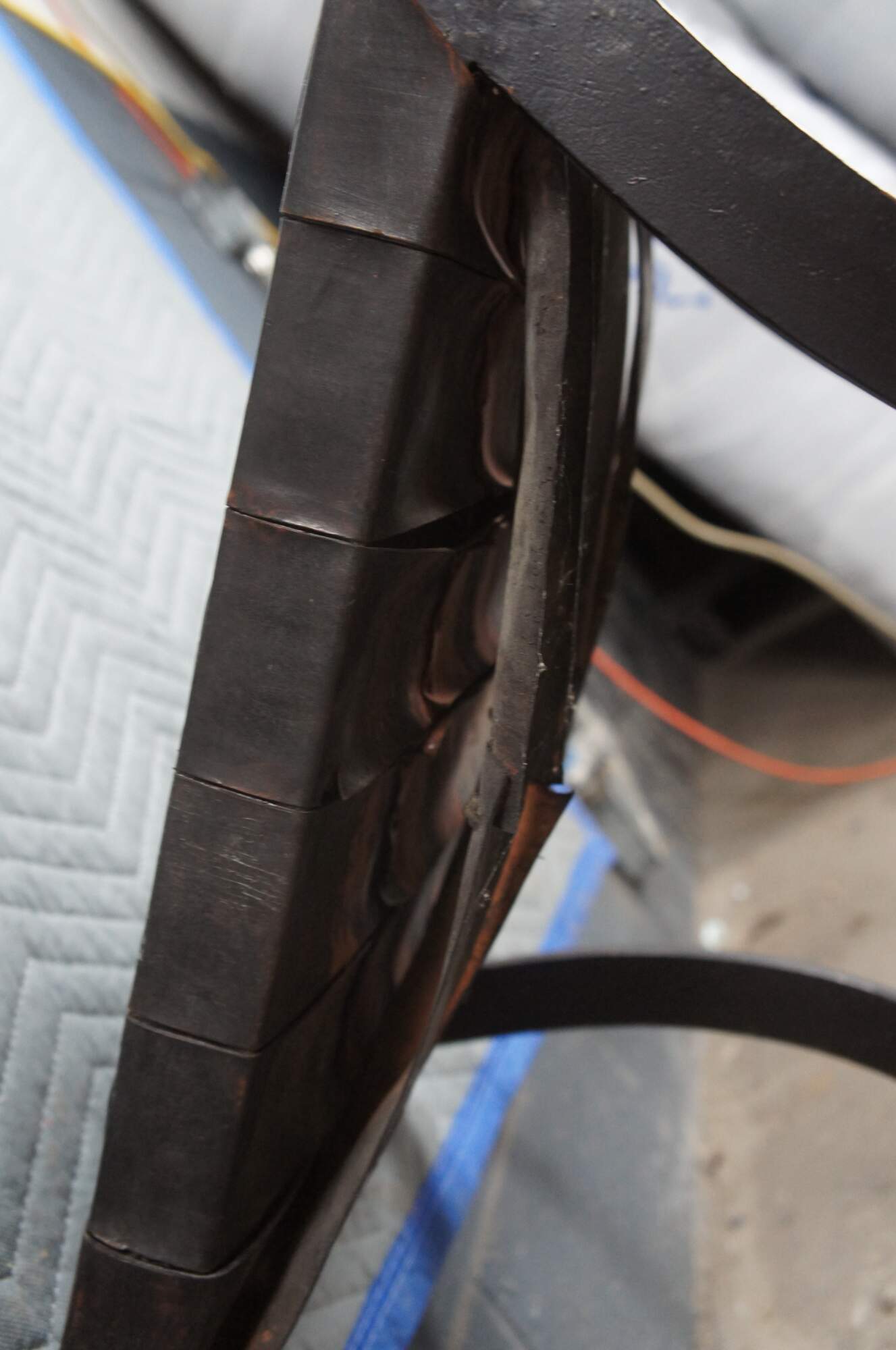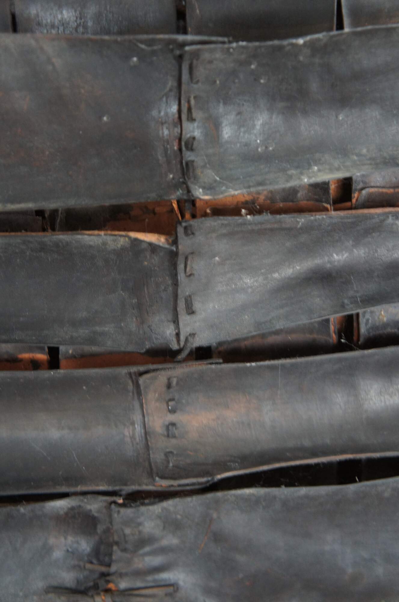 Fair; wear from use and age, discoloration, sagging to underside of leather