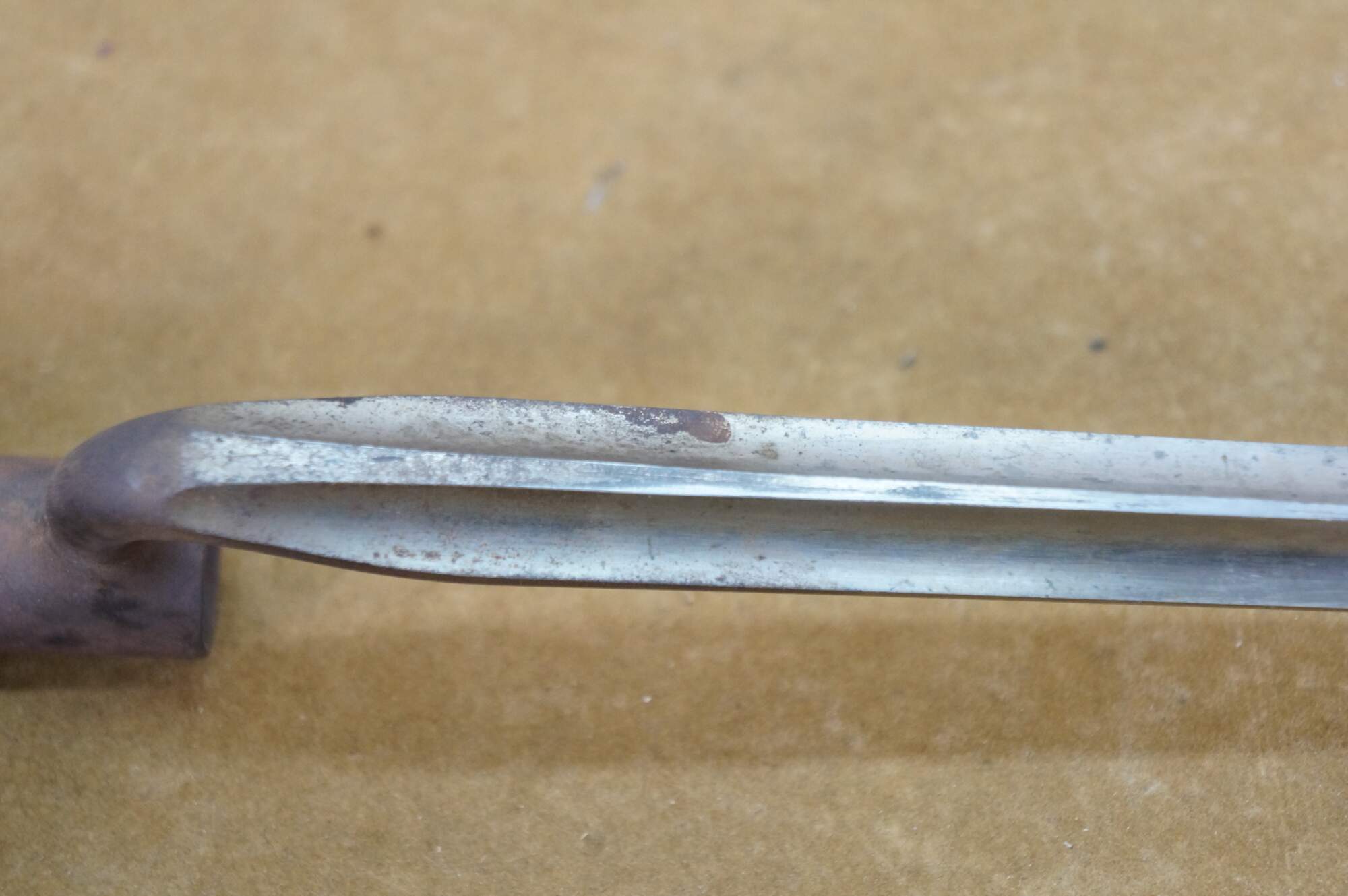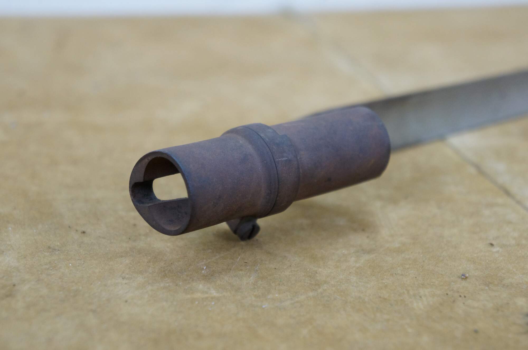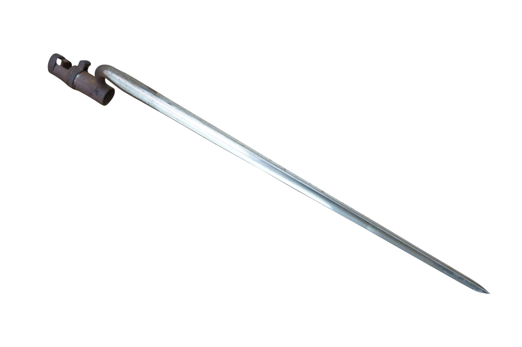 "A bayonet (from Old French bayonette, now spelt baïonnette) is a knife, dagger, sword, or spike-shaped melee weapon designed to be mounted on the end of the barrel of a rifle, carbine, musket or similar long firearm, allowing the gun to be used as an improvised spear in close combat. Early bayonets were of the "plug" type, where the bayonet was fitted directly into the barrel of the musket. The major problem with plug bayonets was that when attached they made it impossible to fire the musket, requiring soldiers to wait until the last possible moment before a melee to fix the bayonet. The defeat of forces loyal to William of Orange by Jacobite Highlanders at the Battle of Killiecrankie in 1689 was due (among other things) to the use of the plug bayonet. The Highlanders closed to 50 yd (46 m), fired a single volley, dropped their muskets, and using axes and swords quickly overwhelmed the loyalists before they had time to fix bayonets. Shortly thereafter, the defeated leader, Hugh Mackay, is believed to have introduced a socket bayonet of his own invention. Soon "socket" bayonets would incorporate both socket mounts and an offset blade that fit around the musket's barrel, which allowed the musket to be fired and reloaded while the bayonet was attached. By the mid-18th century, socket bayonets had been adopted by most European armies. In 1703, the French infantry adopted a spring-loaded locking system that prevented the bayonet from accidentally separating from the musket. A triangular blade was introduced around 1715 and was stronger than the previous single or double-edged model." (Wikipedia)