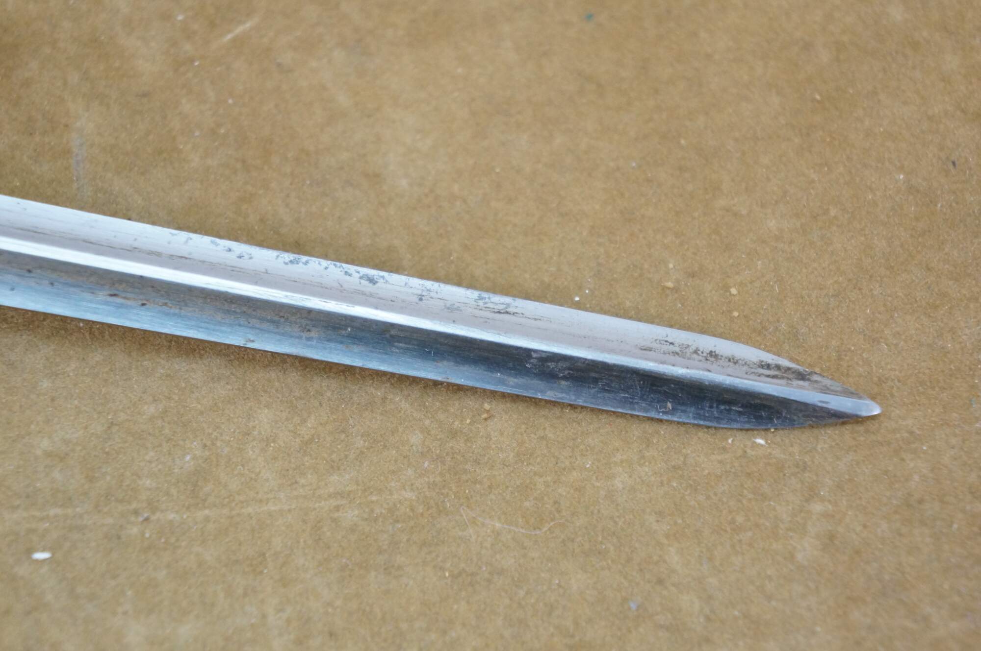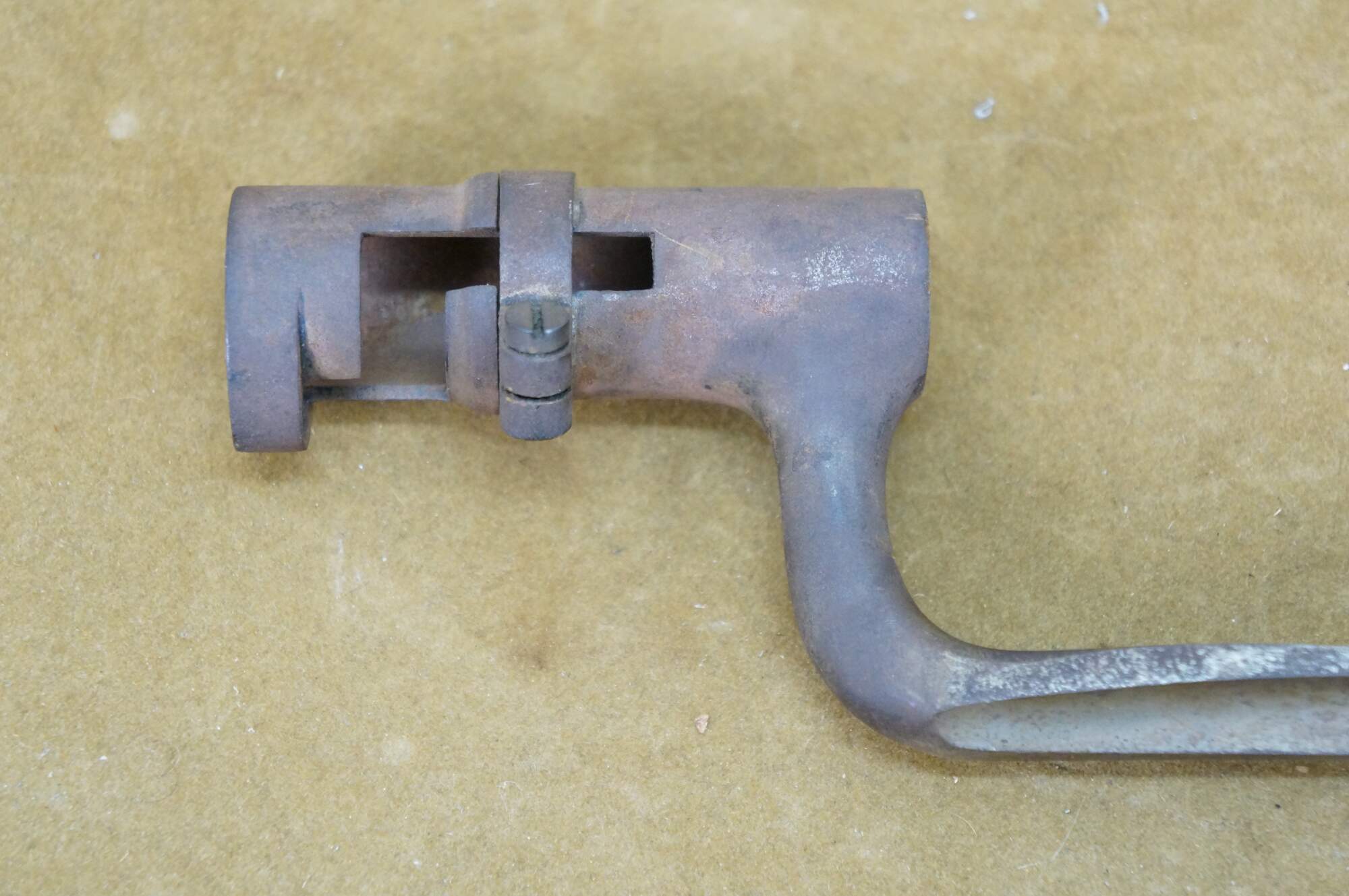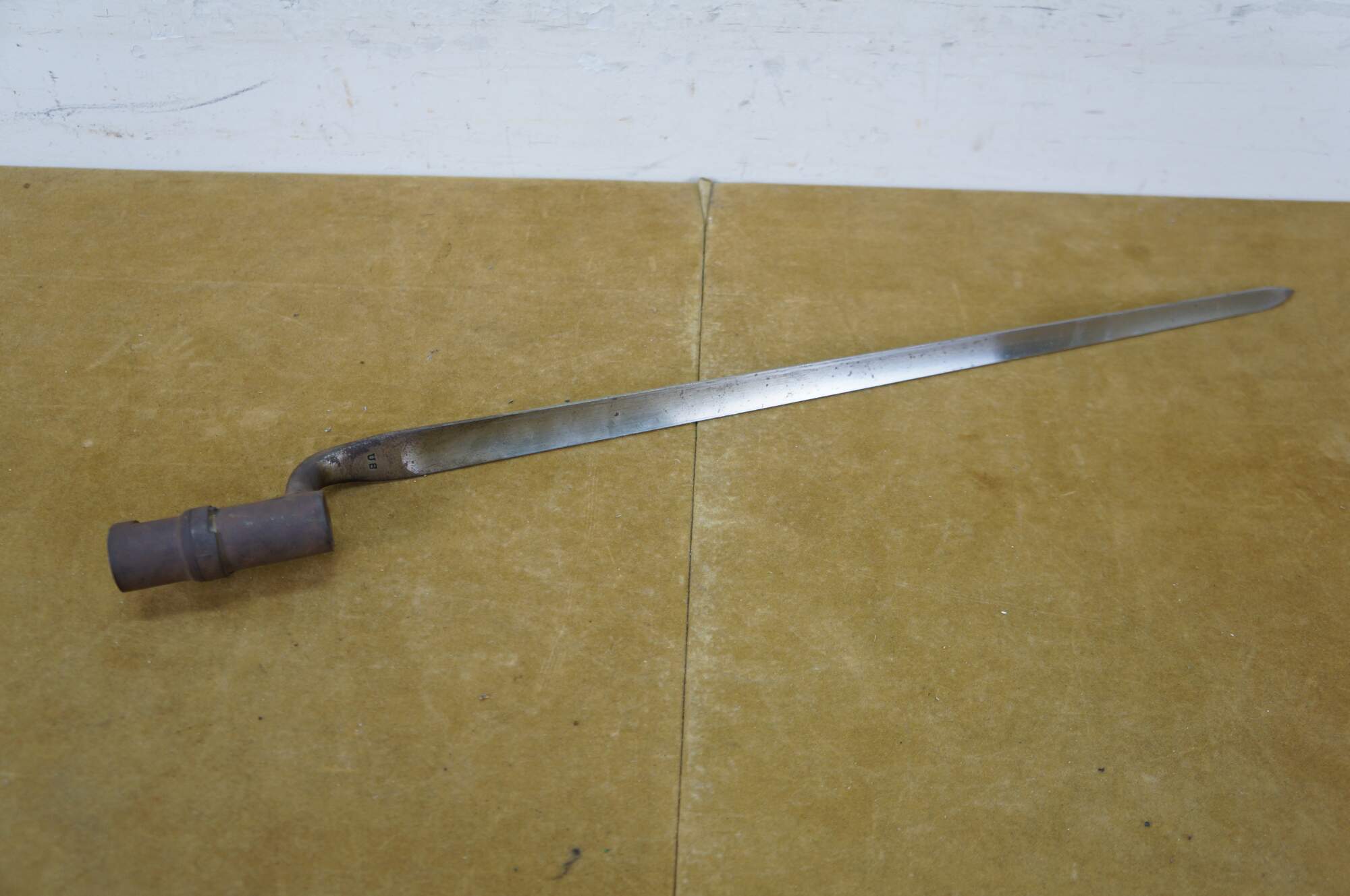 "A bayonet (from Old French bayonette, now spelt baïonnette) is a knife, dagger, sword, or spike-shaped melee weapon designed to be mounted on the end of the barrel of a rifle, carbine, musket or similar long firearm, allowing the gun to be used as an improvised spear in close combat. Early bayonets were of the "plug" type, where the bayonet was fitted directly into the barrel of the musket. The major problem with plug bayonets was that when attached they made it impossible to fire the musket, requiring soldiers to wait until the last possible moment before a melee to fix the bayonet. The defeat of forces loyal to William of Orange by Jacobite Highlanders at the Battle of Killiecrankie in 1689 was due (among other things) to the use of the plug bayonet. The Highlanders closed to 50 yd (46 m), fired a single volley, dropped their muskets, and using axes and swords quickly overwhelmed the loyalists before they had time to fix bayonets. Shortly thereafter, the defeated leader, Hugh Mackay, is believed to have introduced a socket bayonet of his own invention. Soon "socket" bayonets would incorporate both socket mounts and an offset blade that fit around the musket's barrel, which allowed the musket to be fired and reloaded while the bayonet was attached. By the mid-18th century, socket bayonets had been adopted by most European armies. In 1703, the French infantry adopted a spring-loaded locking system that prevented the bayonet from accidentally separating from the musket. A triangular blade was introduced around 1715 and was stronger than the previous single or double-edged model." (Wikipedia)