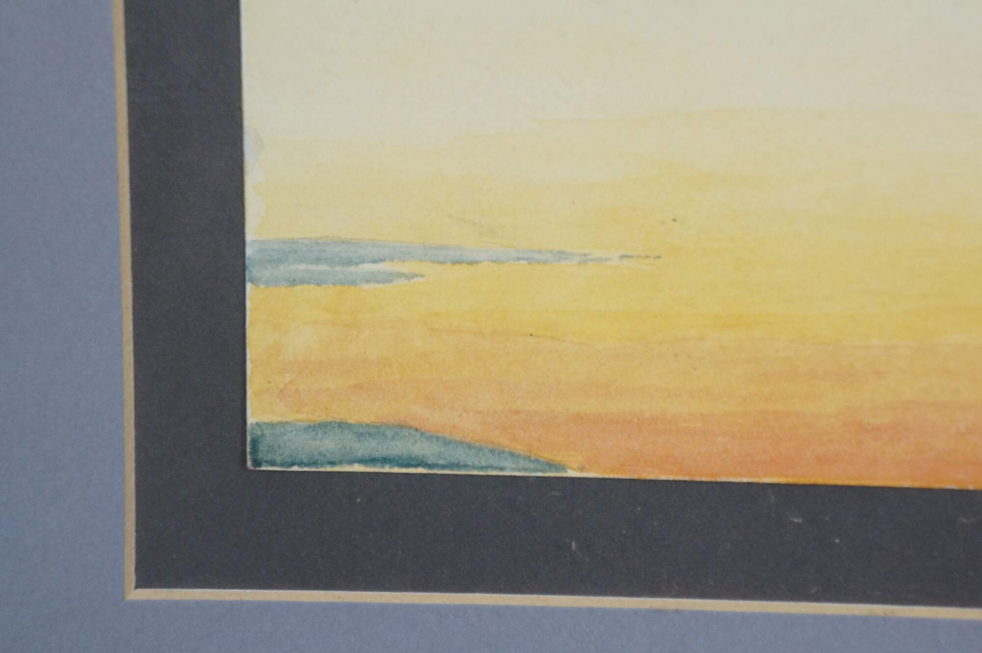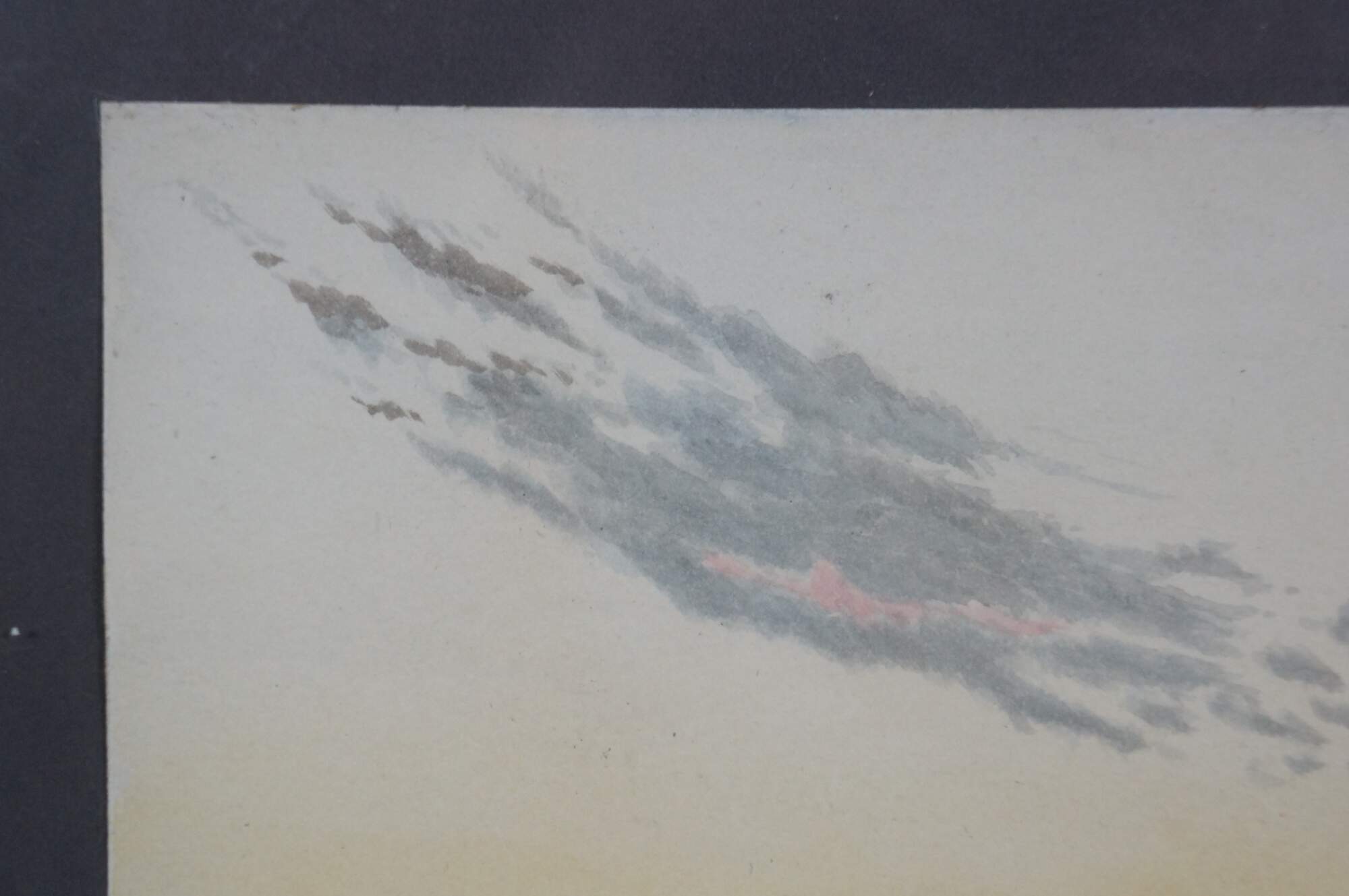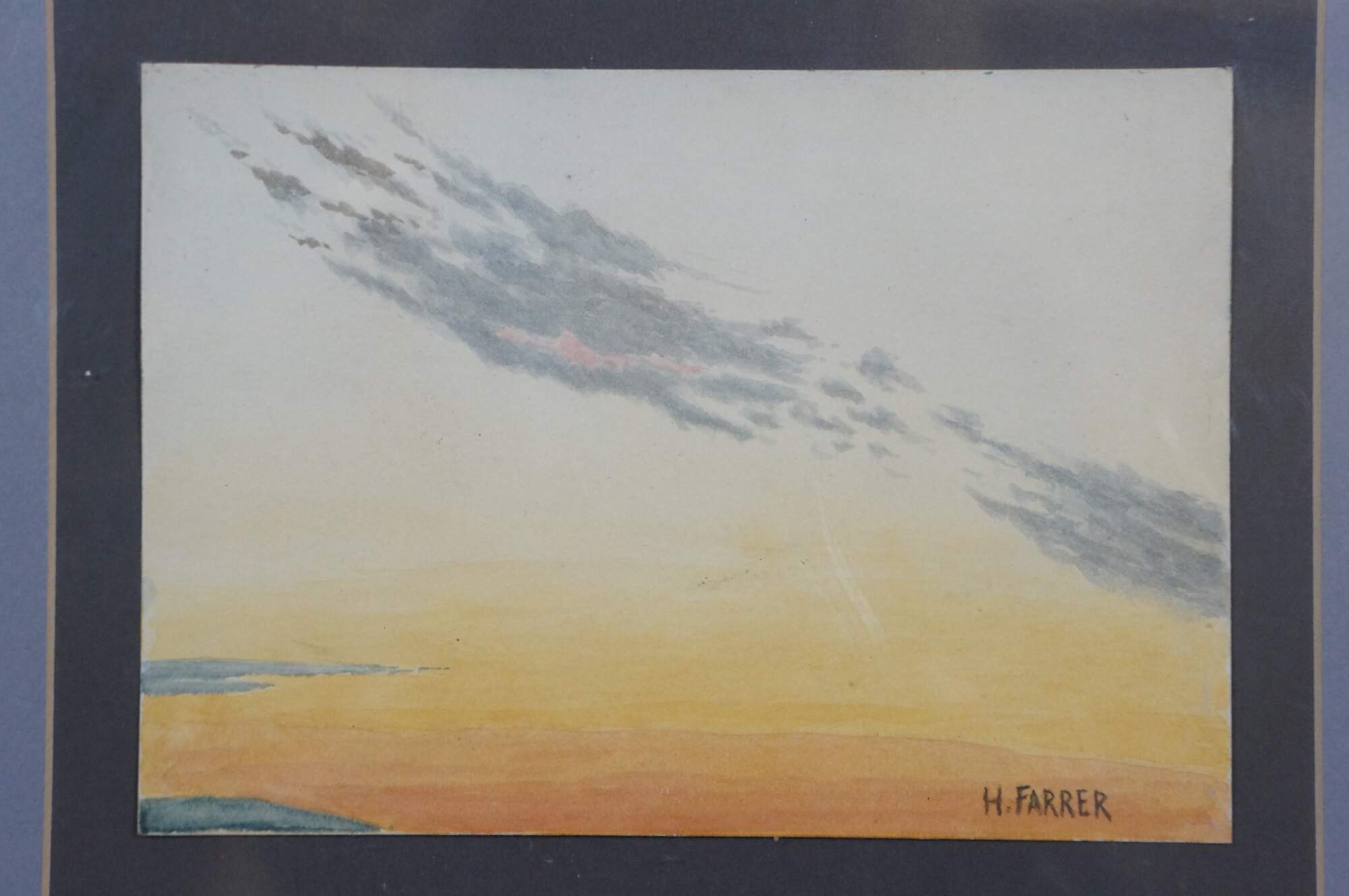 Rare antique Henry Farrer watercolor painting on paper depicting the sky at sunset / sunrise. signed H. Farrer, lower right. Foliate gilt wood / gesso frame; blue and gray layered mat.