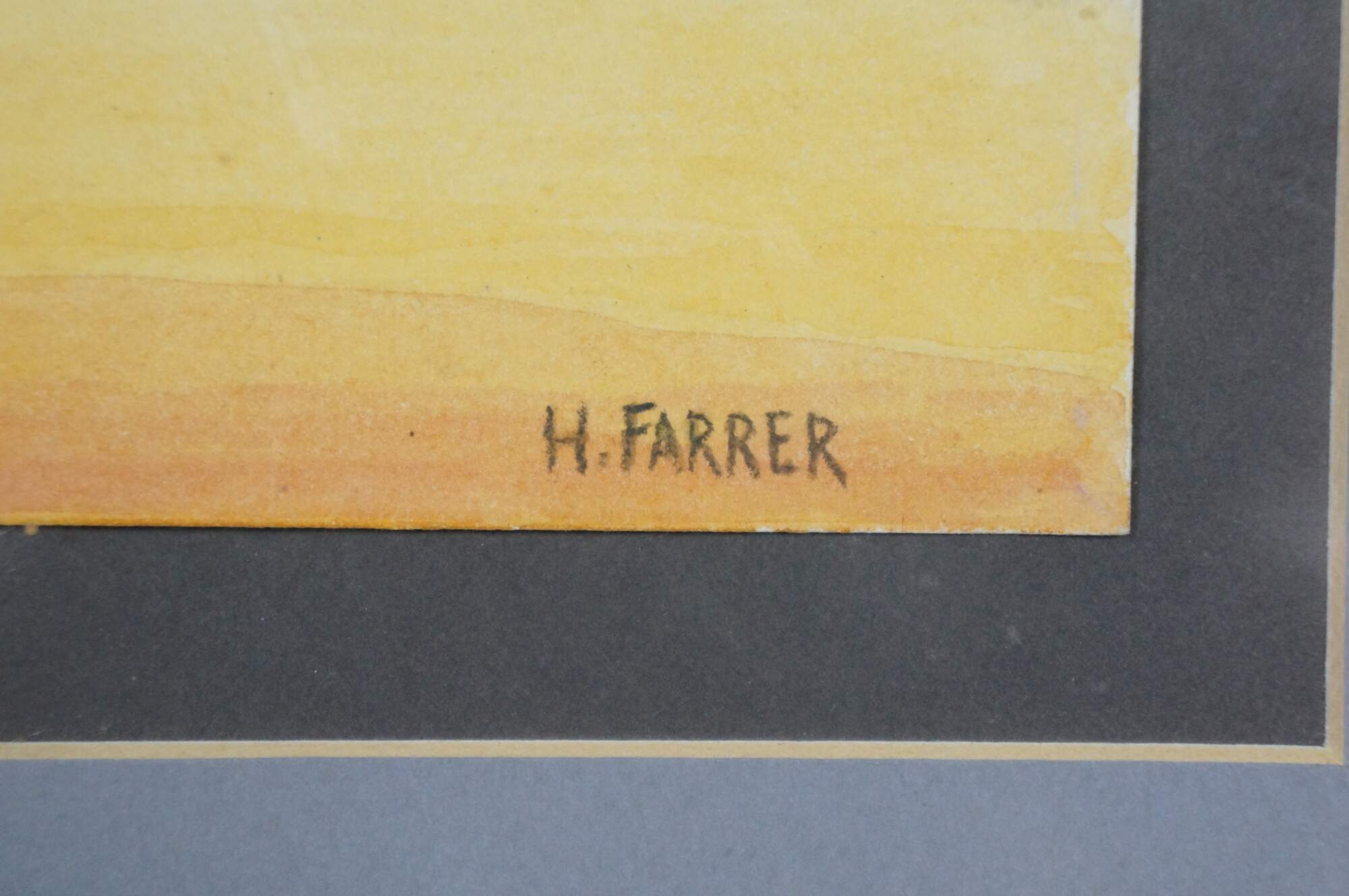 "Henry Farrer (American, 1843-1903) Born in London in 1843, Henry Farrer was the younger brother of Thomas Charles Farrer, who, along with William Trost Richards and a handful of others was a founding member in 1863 of the Association of Advancement of Truth in Art. The organization was based on the principles of Pre-Raphaelite* philosopher and artist John Ruskin, with whom Thomas Farrer had studied drawing at the Working Men's College in London. In fact, the Farrer brothers became leading American 'Ruskinians', as part of the American Pre-Raphaelite movement of the 1860s, 70s and even 80s. Thus, the Farrers are best remembered for their delicate watercolors and etchings, which reveal their Ruskinian attention to detail, close focus, and meticulous brushwork. Little is known about Henry's childhood or early training, but it is said that he was self-taught. At the age of nineteen he immigrated to the United States and opened a studio in New York City where he painted landscapes, predominantly in watercolor. Henry Farrer was a founding member of the American Society of Painters in Water Color* (in 1866) and was secretary of that organization for many years. Farrer was also a founding member of the New York Etching Club* and became its President in 1881. Sometime around 1868 Henry built his own etching press and began his first attempts at etching by making precise topographical* views featuring scenes of New York buildings. Farrer also became a member of the Royal Society of Painter-Etchers and Engravers* in London and an honorary member of the Philadelphia Society of Painter Etchers. He lived in Brooklyn at 51 West 10th from about 1887 until his death in 1903." (askART)
