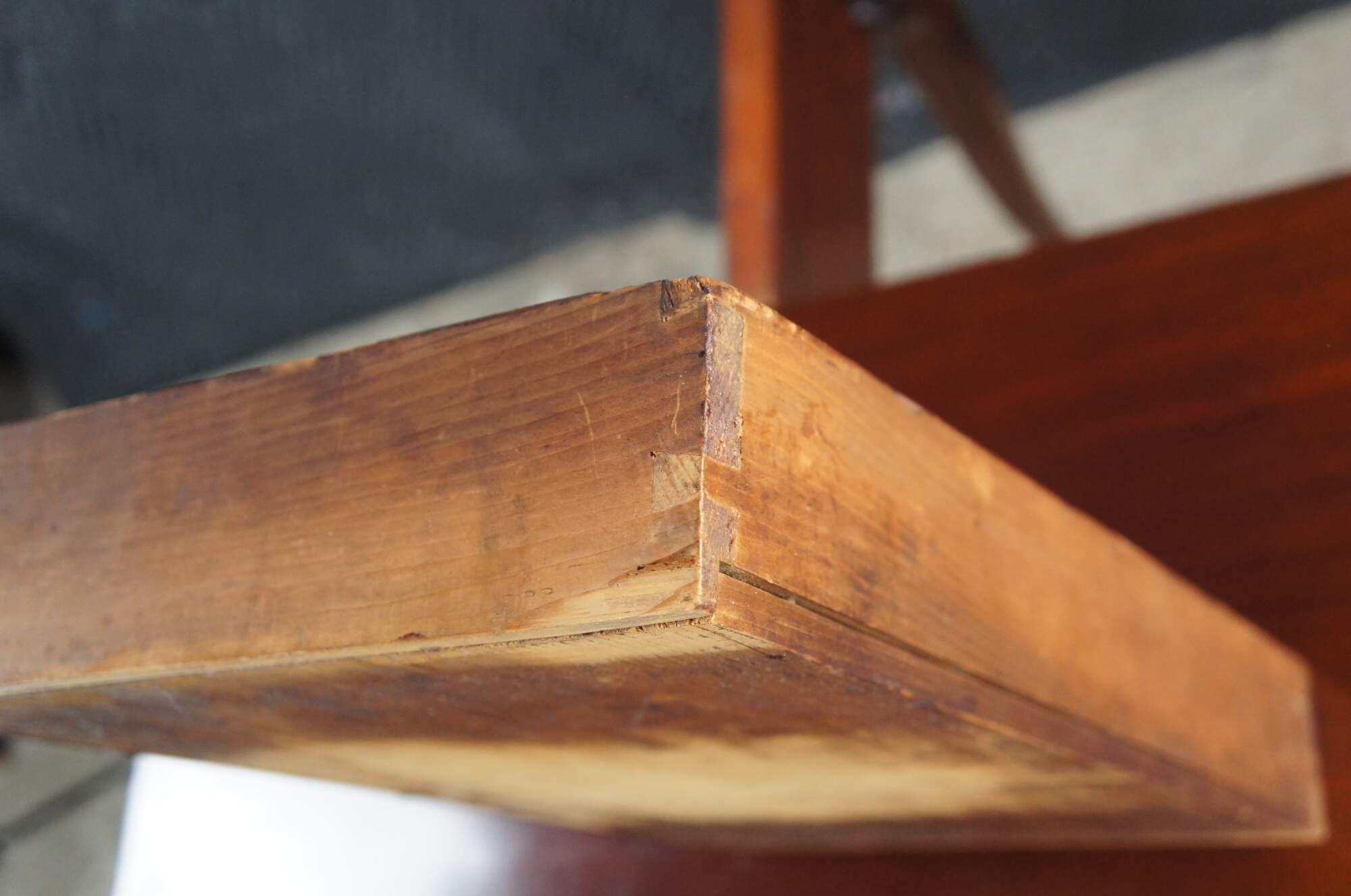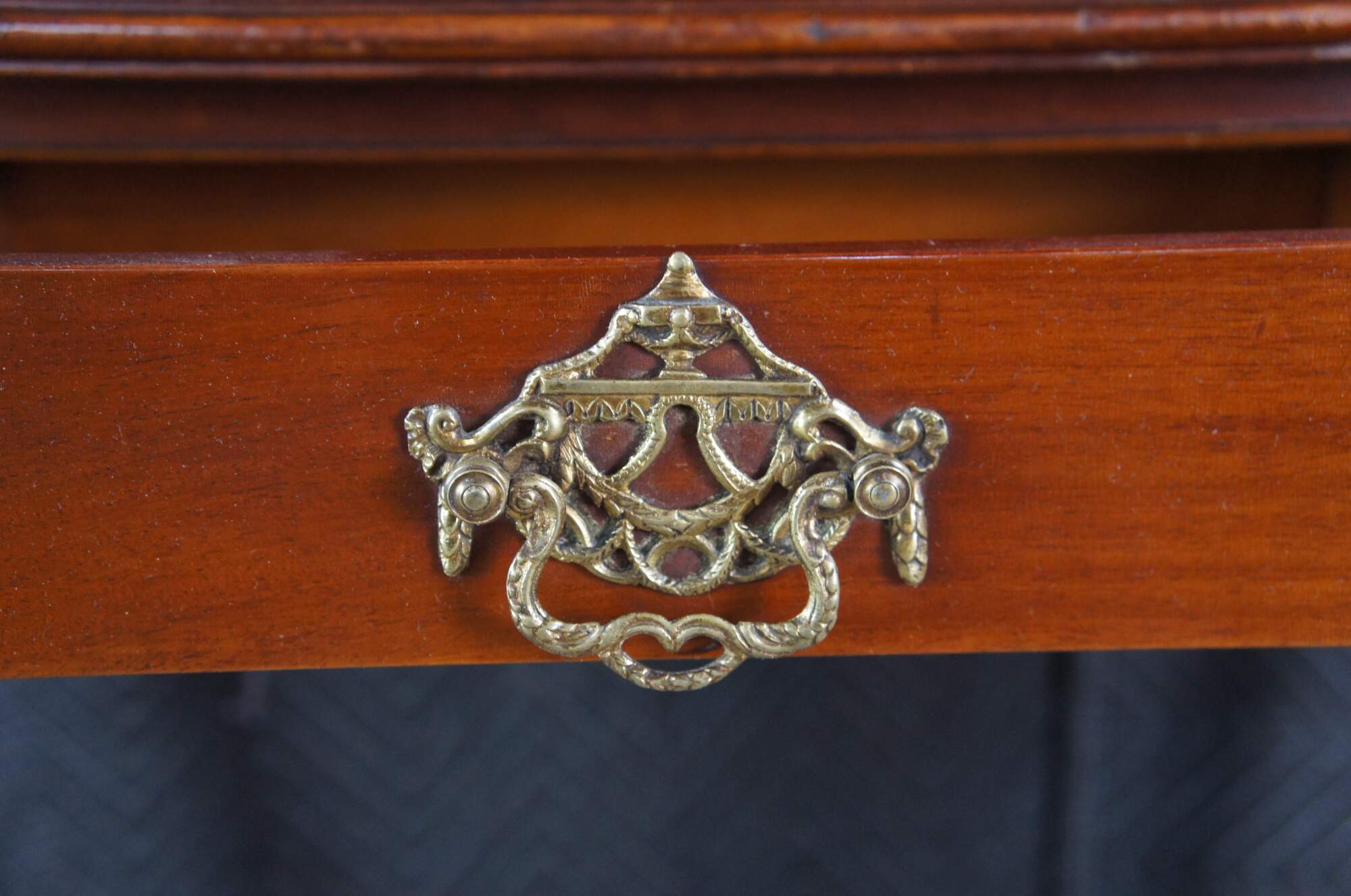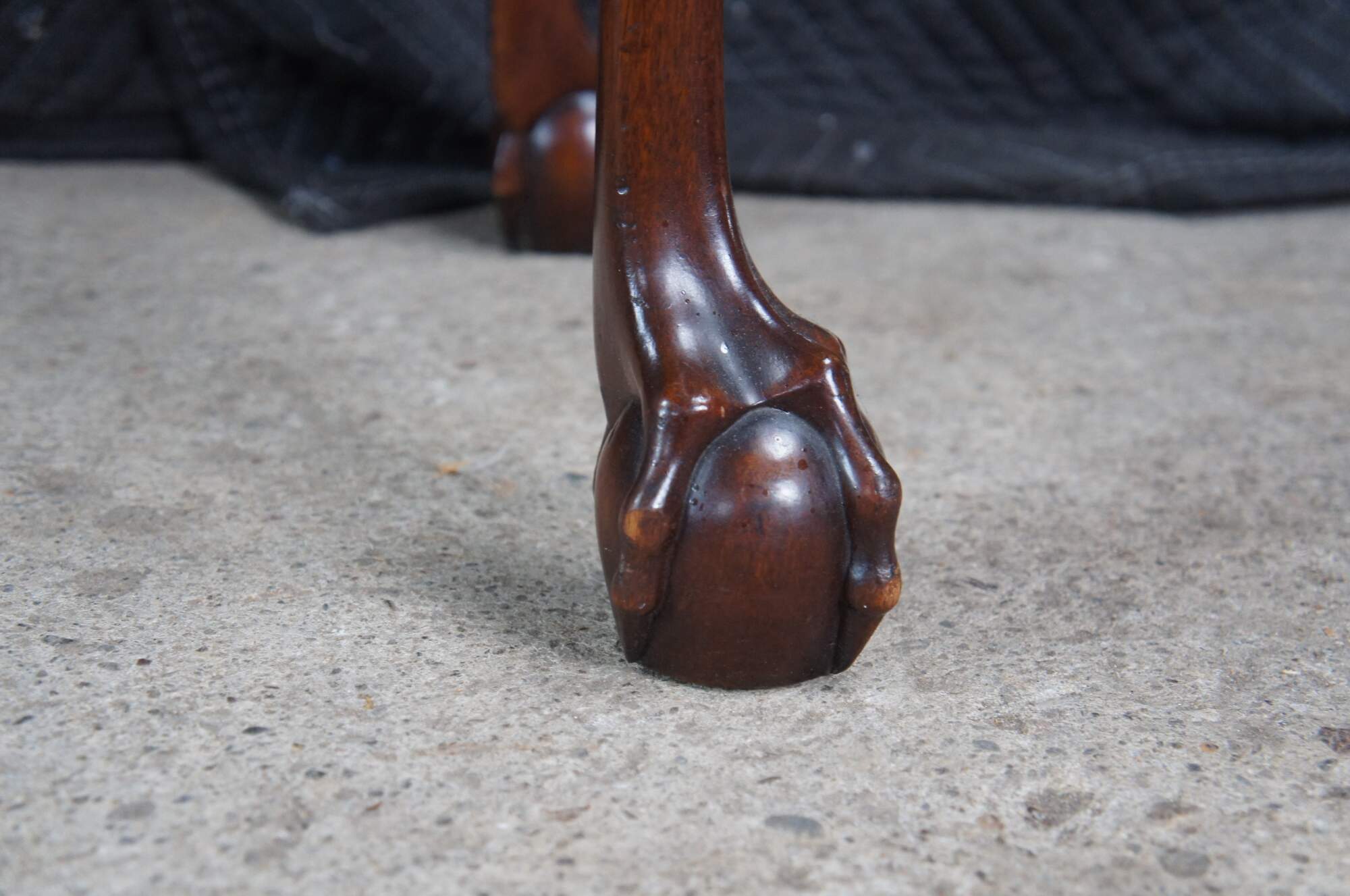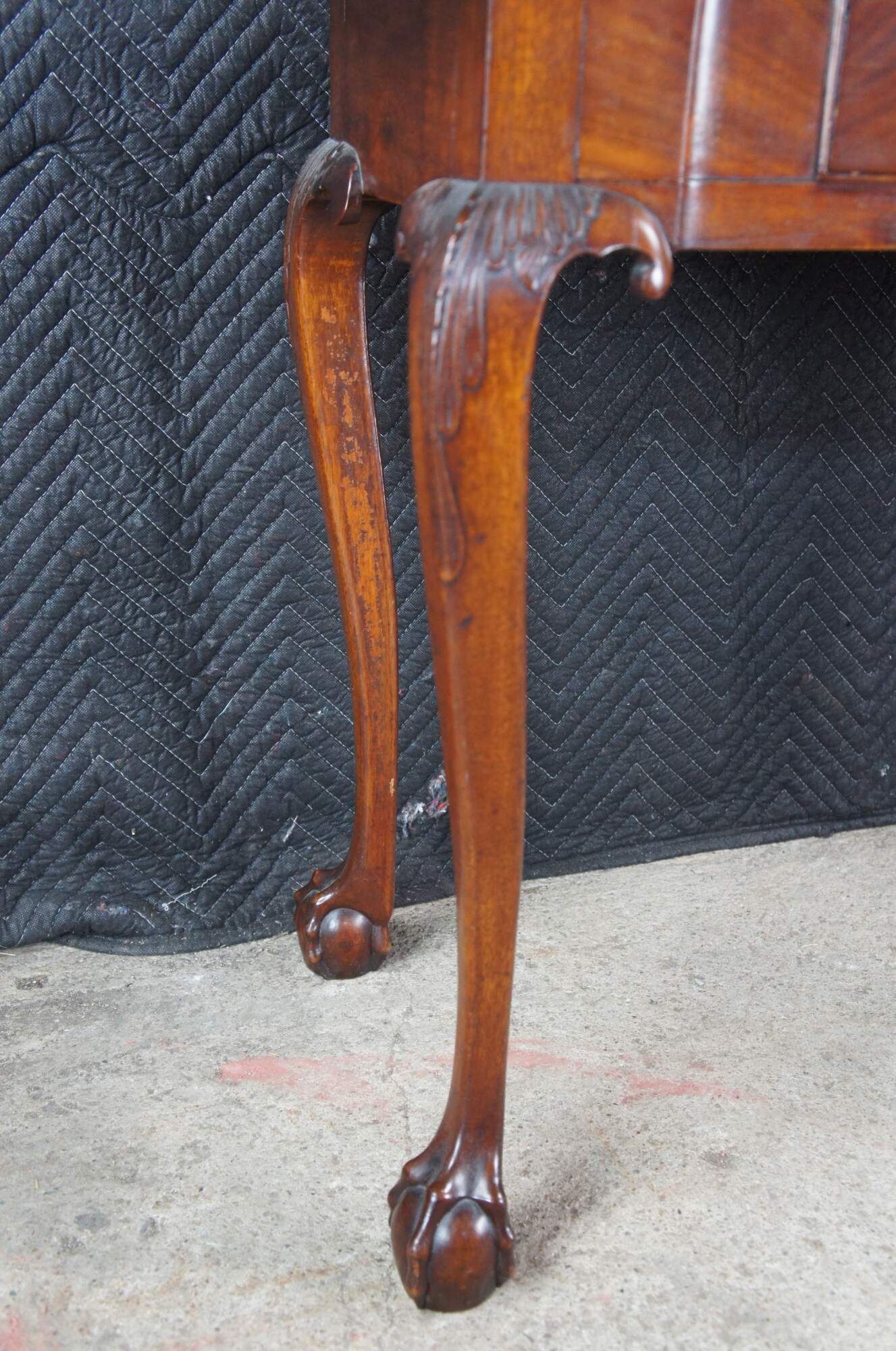 Mid 19th Century English George II Style Card / Game Table. Features a retangular form with recessed centers over a hand dovetailed frieze drawer with ornate scaled brass bale pull. The table is supported by long cabriole legs with carved knees terminating into ball and claw feet. The left rear legs swivels back to support the table when in the extended position. Perfect for use in an entry or library setting.