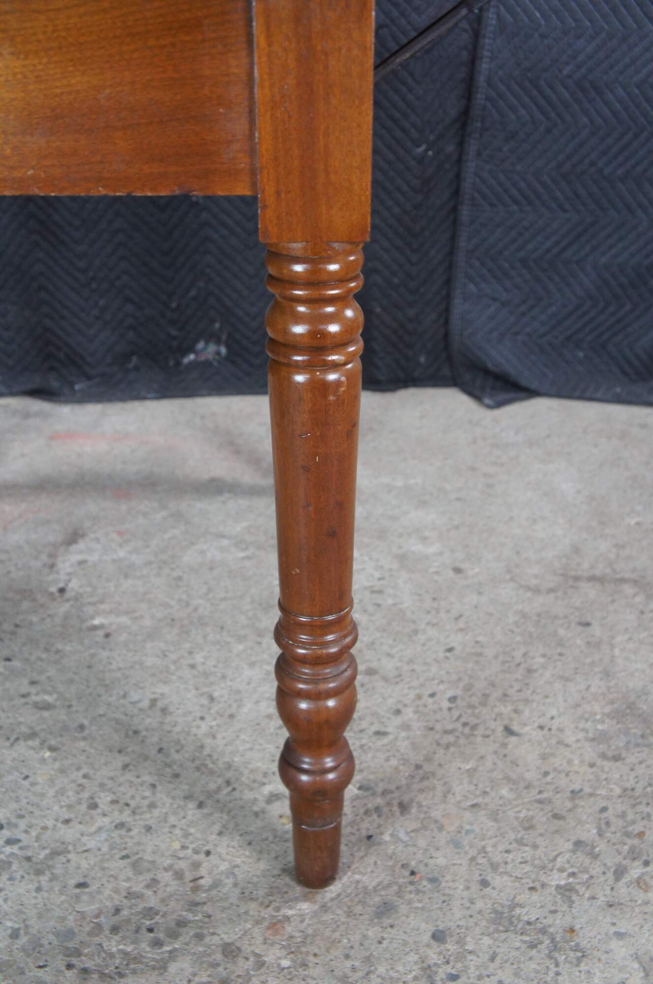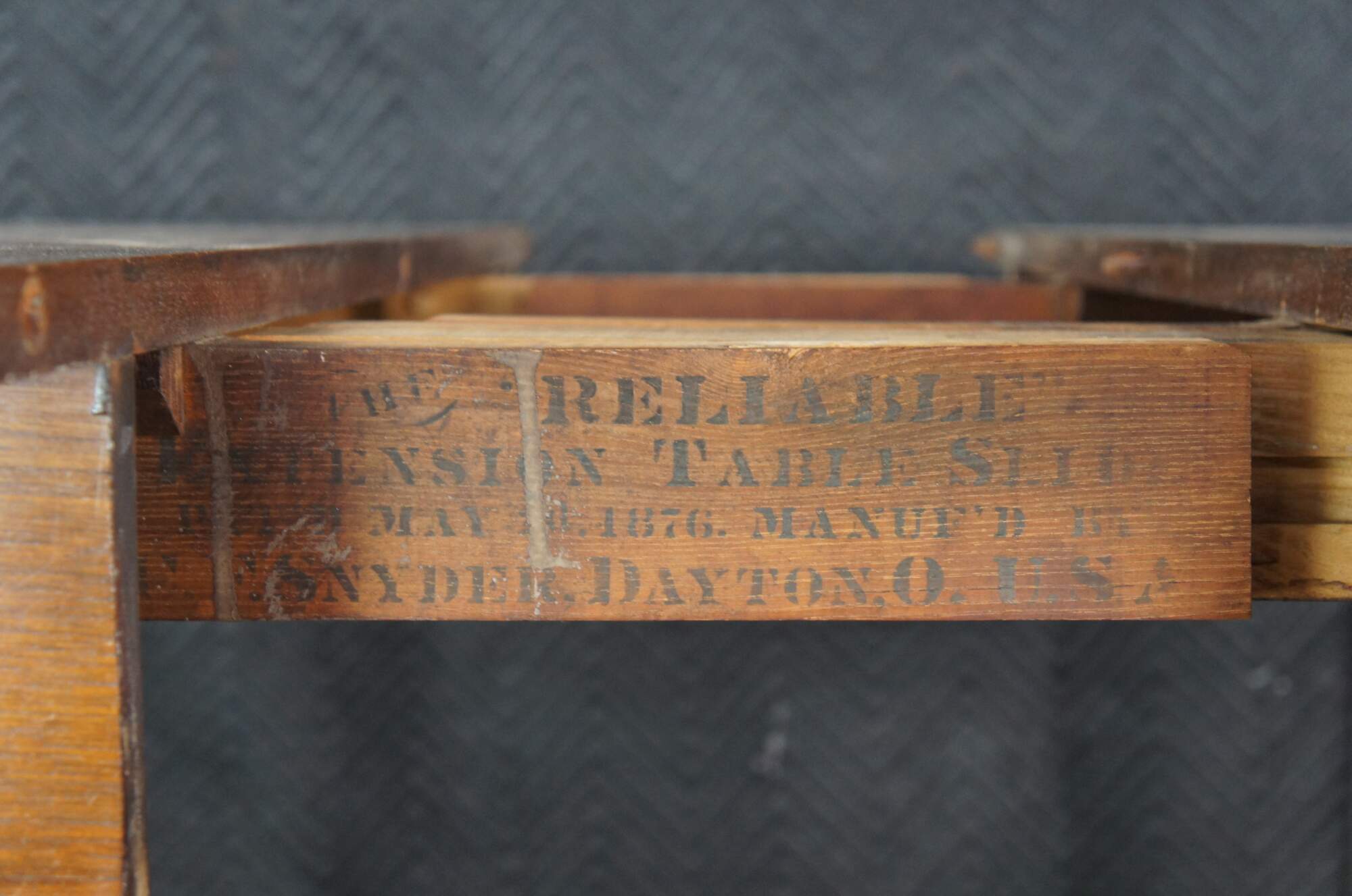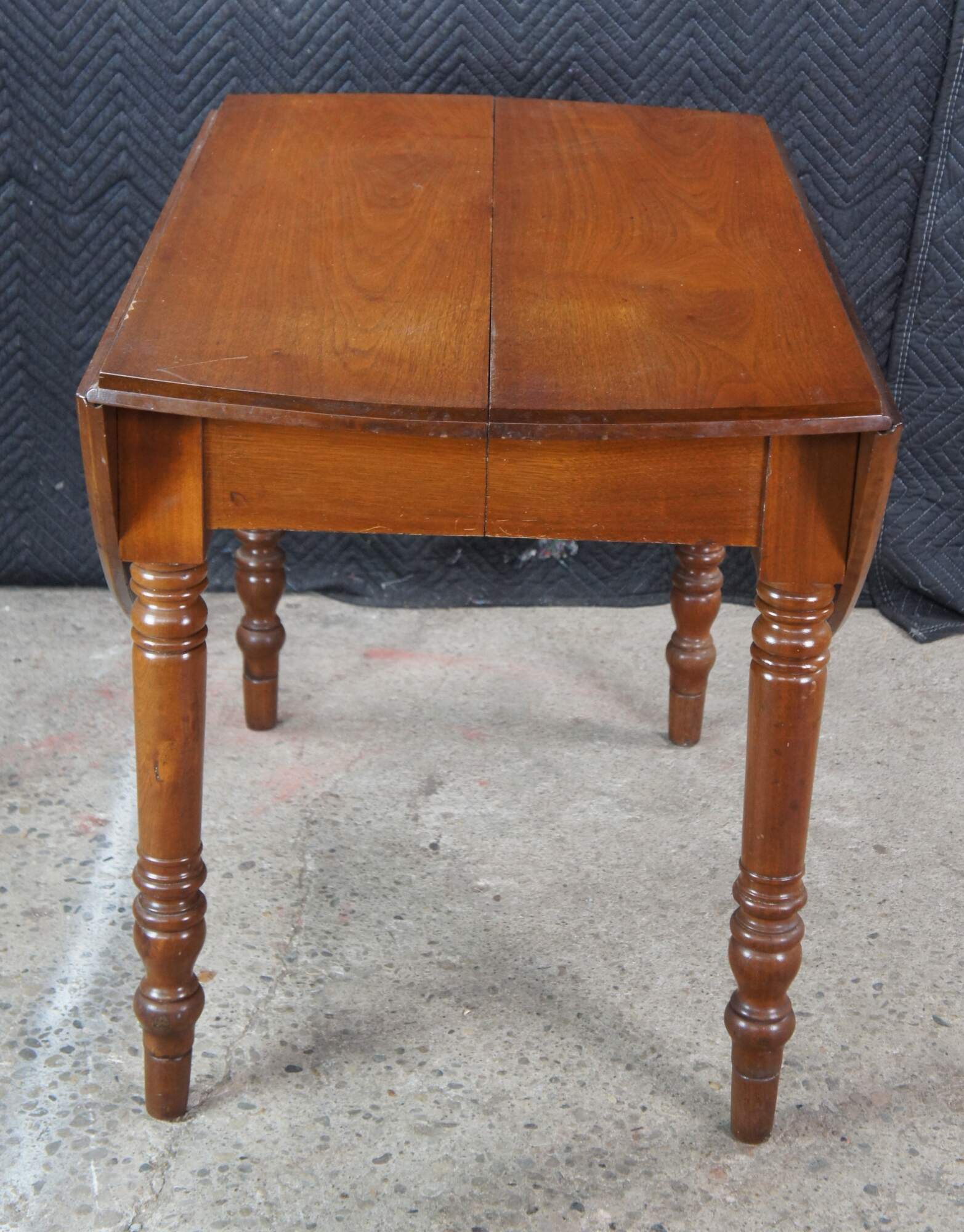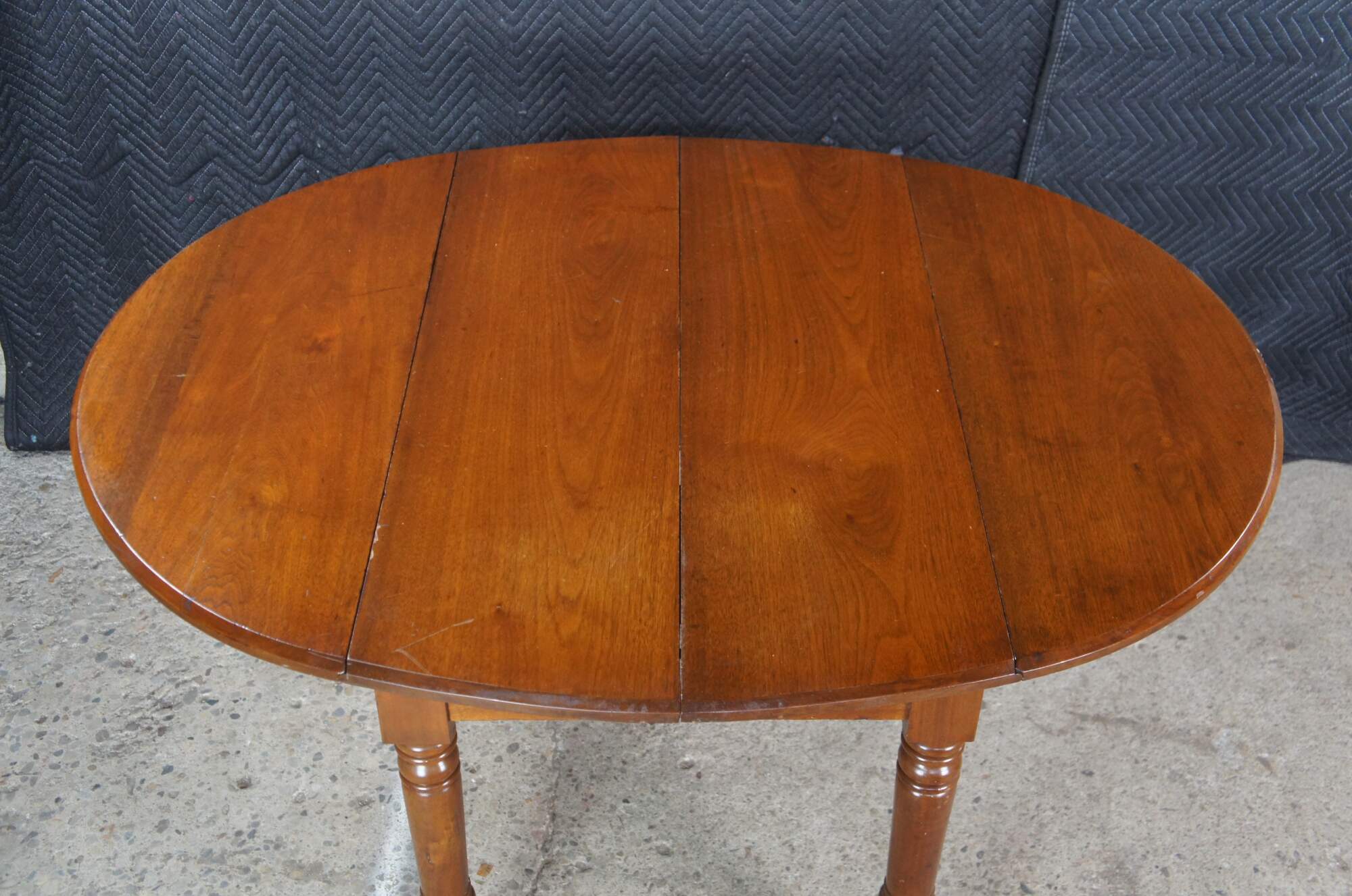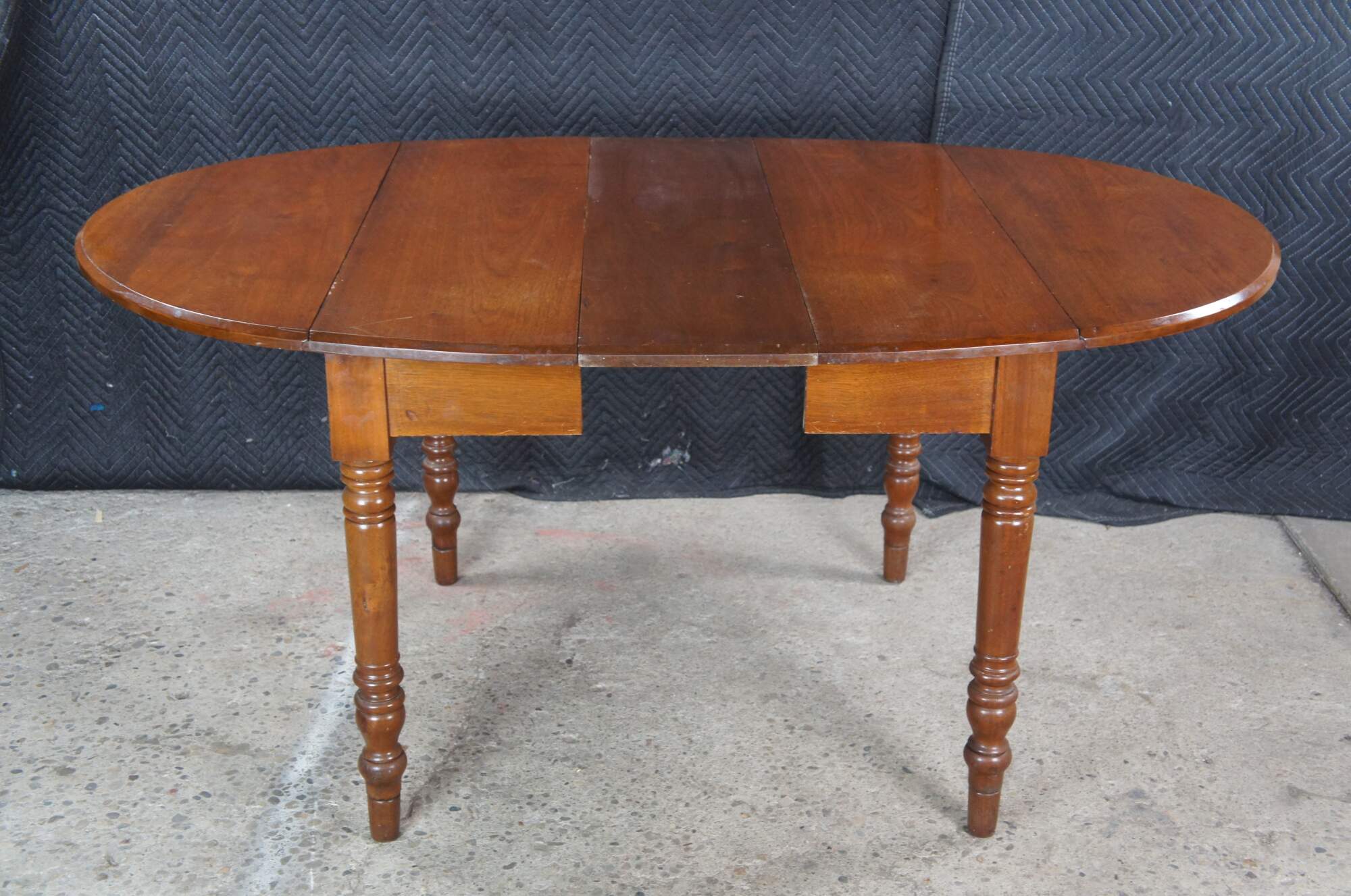 Late 19th Century drop leaf extendable breakfast or dining table. Made from American mahogany with ring turned legs leading to arrow feet. Includes one extendable leaf. The table is oval once the leafs are up.