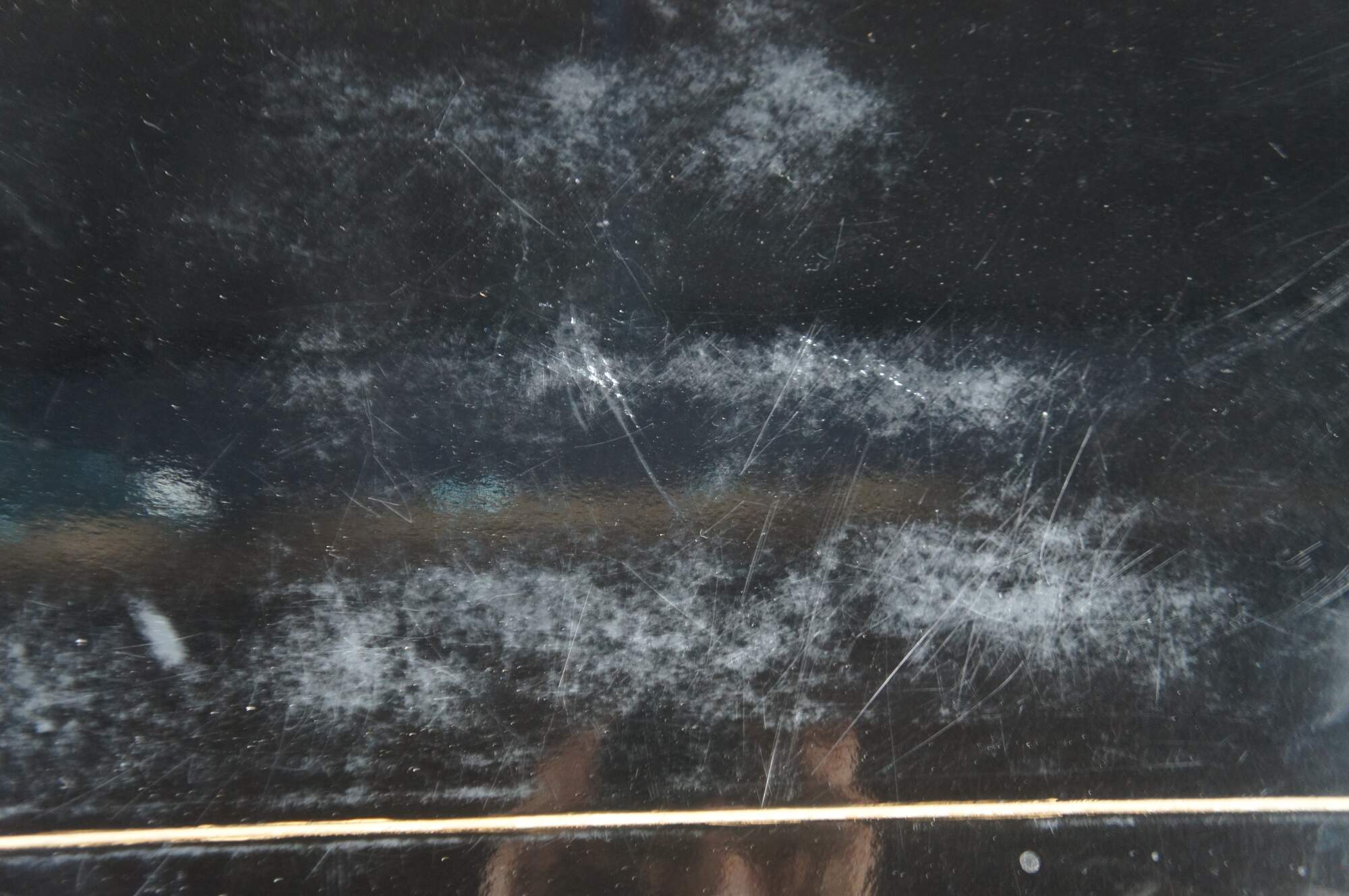 Gentle wear from use and age; hazing and finish wear to the top. Light marking to the case.