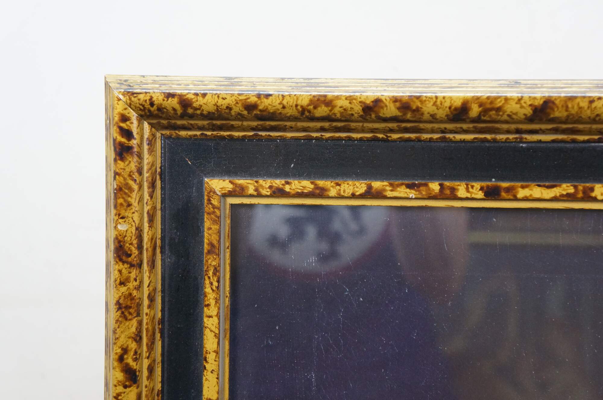 Wear and distressing from age, scuffing to frame, crazing to print.