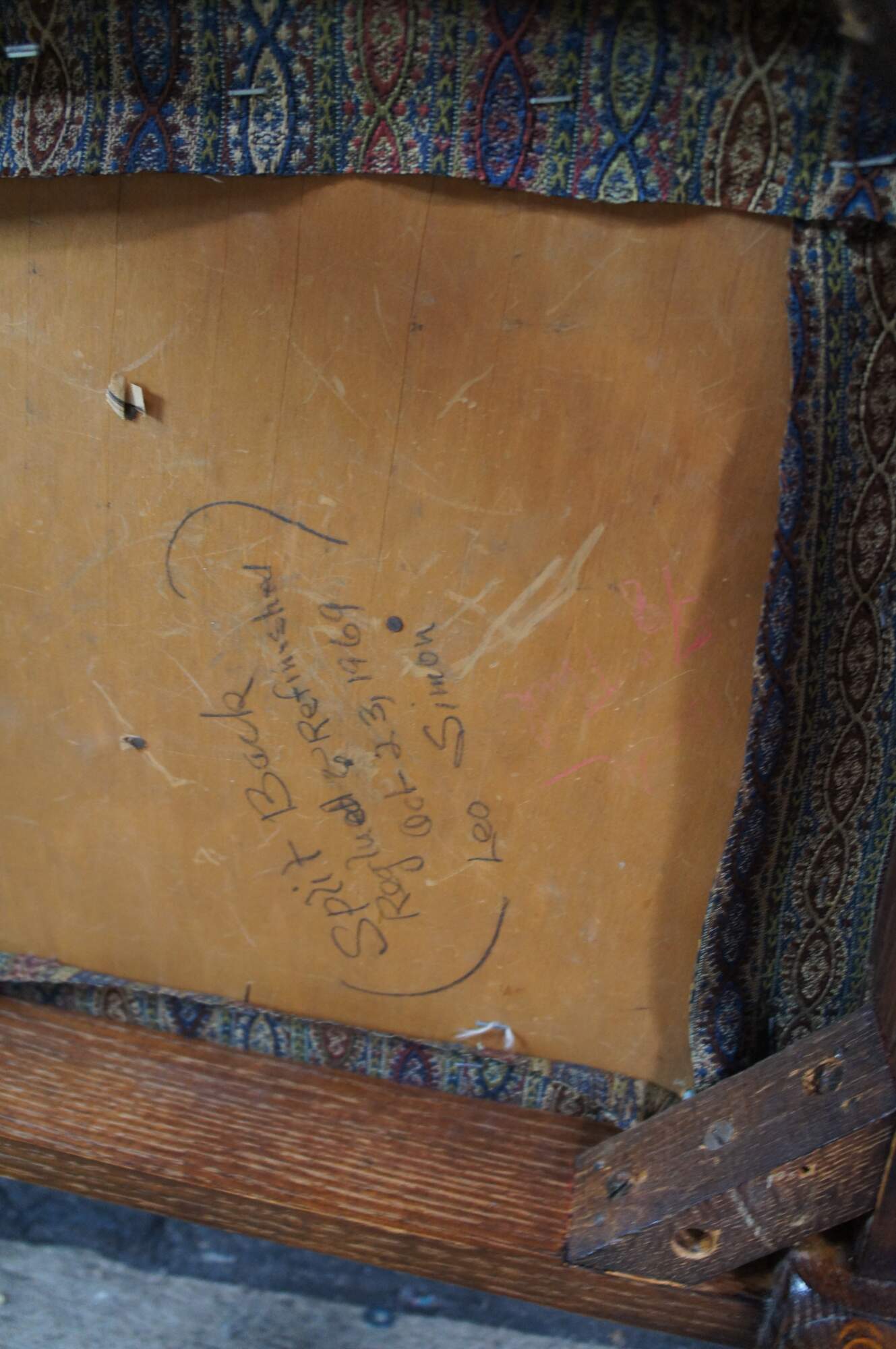 Structurally solid, wear and distressing from age and use, finish loss / scuffing, splitting, edge wear, past repairs.