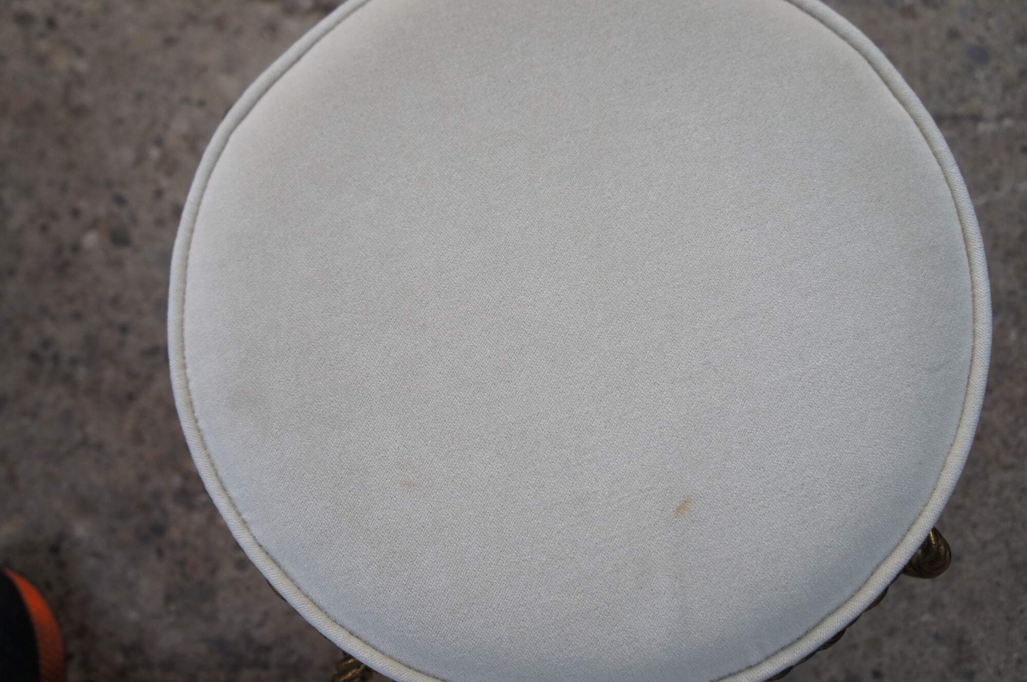 Good condition, wear and distressing from age and use, finish loss / paint loss, scuffing, slight warp to stool foot, stain on cushion.