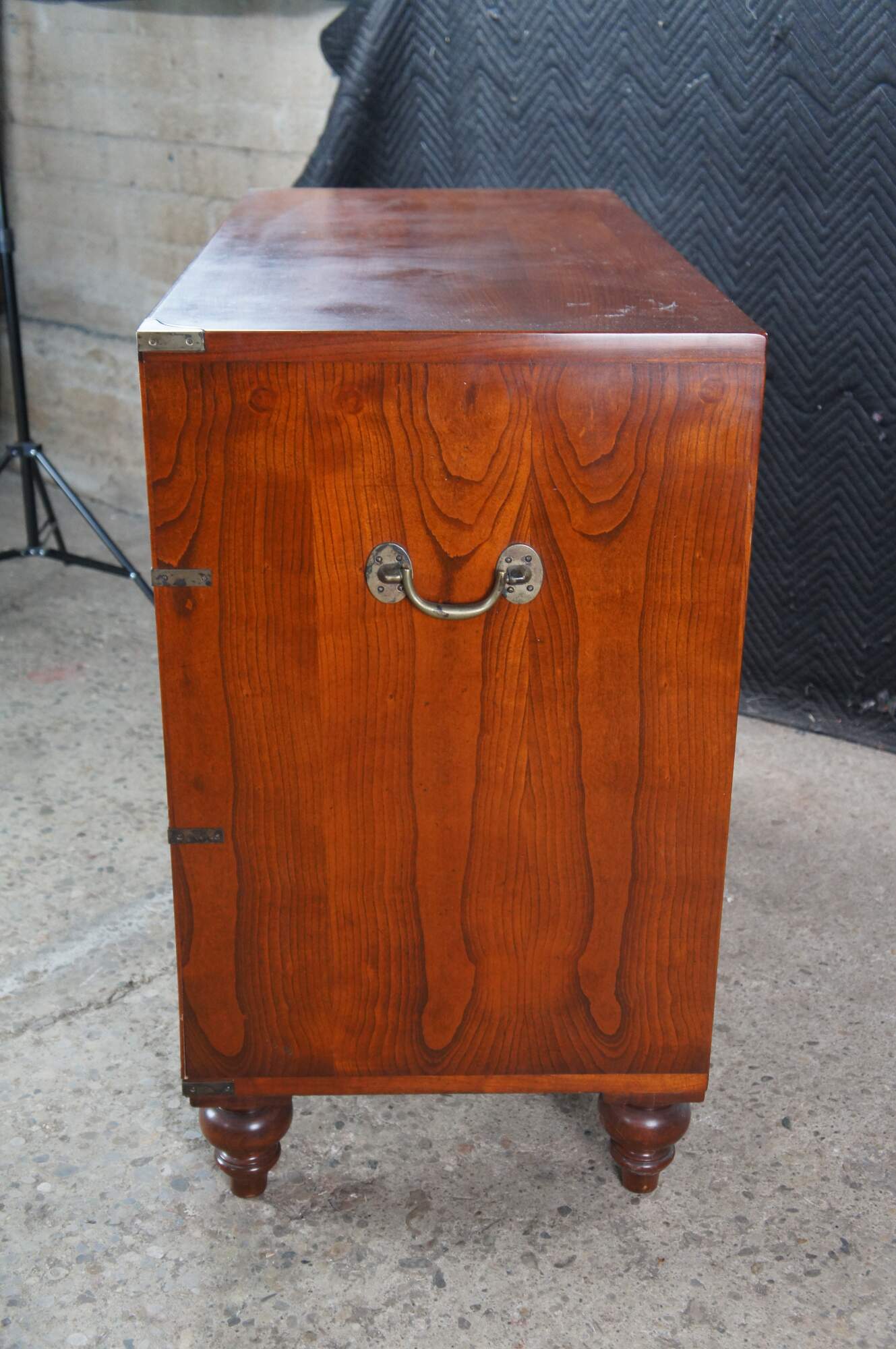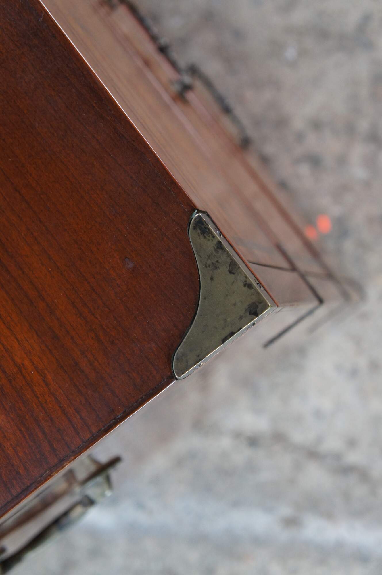 Vintage Italian Fiorini Campaign style chest or dresser. Made of solid cherry featuring four drawers, brass hardware and turned feet. Two upper drawers lock. Made in Italy.